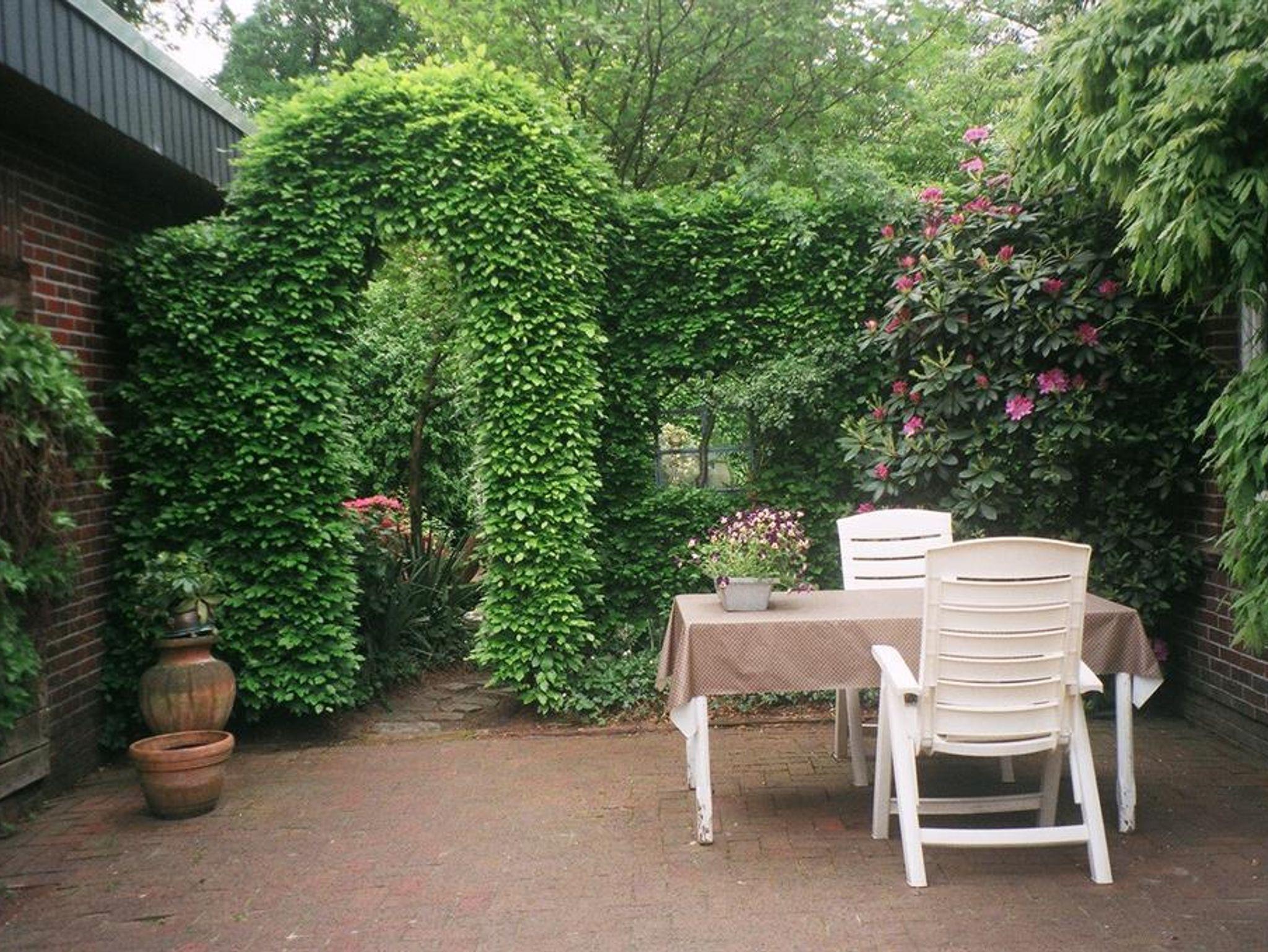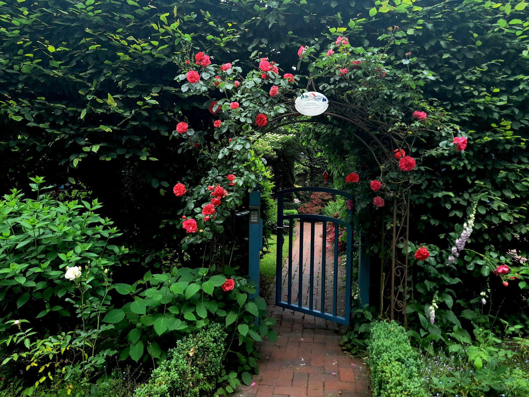 Einfamilienhaus aus Natur-Klinkerstein mit Sprossenfenstern auf 2200 qm großem parkähnlichem Grundstück mit Ferienwohnung. Die Ferienwohnung besteht aus einem Wohn-/Schlafraum mit Kochnische, einem Badezimmer (mit ebenerdiger Dusche), einer Toilette und einem kleinen Flur mit separatem Eingang (Frühjahr 2019 vollkommen renoviert). Sie können eine große Gästeterrasse mit Gartenmöbeln und einem alten Brunnen im Innenhof, direkt vor der Ferienwohnung, zum Entspannen nutzen. Eine weitere Gästeterrasse mit Gartenmöbeln und Liegestühlen befindet sich im gästeeigenen Garten mit Holzhütte (1 Raum) mit Obstbäumen, Buchsbaumhecken und Hainbuchenhecken in sehr ruhiger Lage. Von der Terrasse des Gästegartens können Sie durch einen Rosenbogen auf den bewaldeten Hühnerhof des Nachbarn schauen und bei einer Tasse Tee den Alltag vergessen. Urlaub für die Seele!
