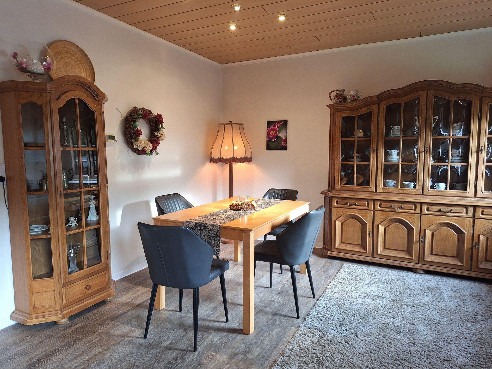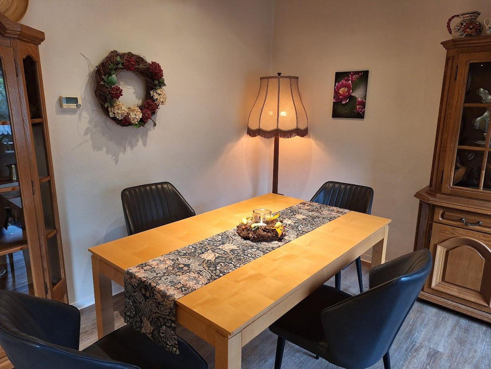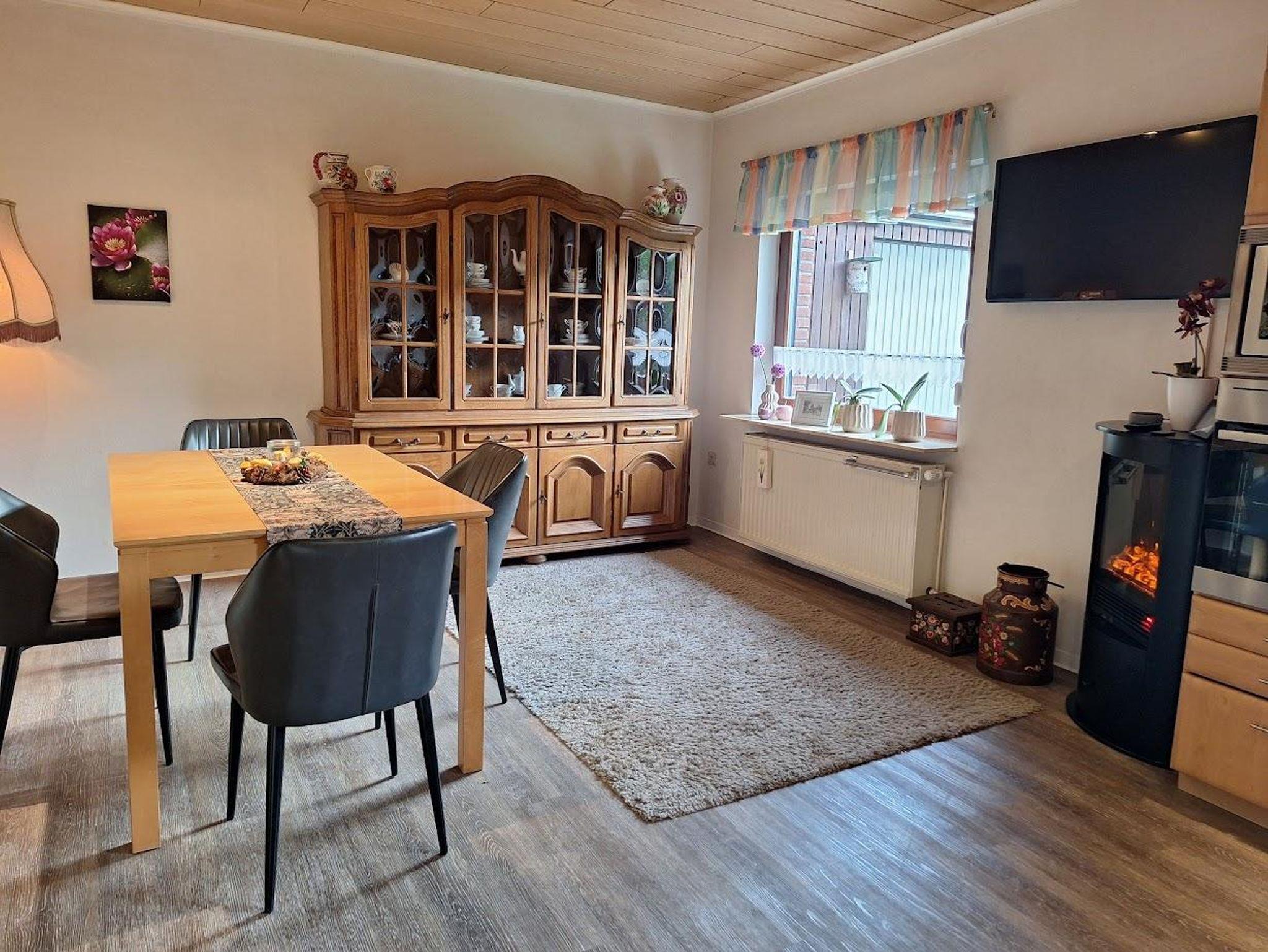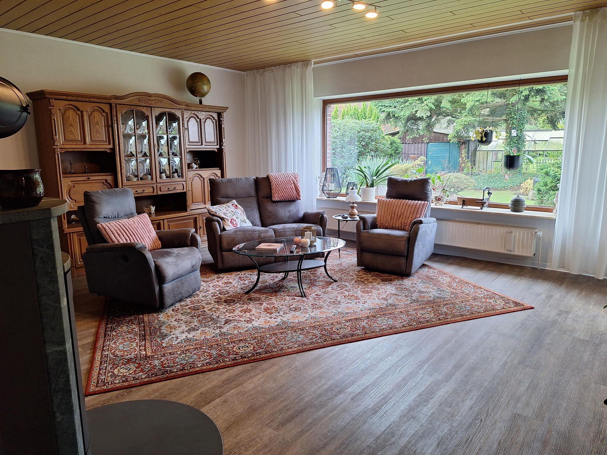 Das Ferienhaus ist ebenerdig, ca. 85m² groß und für 4 Pers. gedacht, zus. Kleinkinder sind möglich. Das Wohnzimmer verfügt über ein XXL- Smart-TV. ein Kaminofen, eine Couch mit elektr. Liegefunktion, 2 Sessel und einem Massagesessel mit Aufstehhilfe. Die Wohnküche hat ein Induktionskochfeld, Backofen, Dunstabzugshaube, Kühlschr., Geschirrsp. Kaffeem., Nesptessom., Wasserk., Toaster, Mikrowelle, Elektrokamin und Eßtisch. Im großen Schlafzimmer finden Sie ein Doppelbett, 1 Schrank sowie eine Kommode. Im kleinen Schlafzimmer befinden sich zwei Einzelbetten die man auch zusammenschieben kann und 1 Schrank. Das Bad hat eine großzügige, barrierefreie Dusche, WC und Waschb.. Zusätzlich ist ein Gäste-WC mit kleinem Handwaschb. vorhanden. Der Gartenbereich hat eine Größe von ca. 300m², davon ca. 30m² Terrasse. Ein PKW-Stellpl. und ein überdachter Bereich für Fahrräder steht zur Verfügung. Das Ammerland ist ein beliebtes Angelparadies.