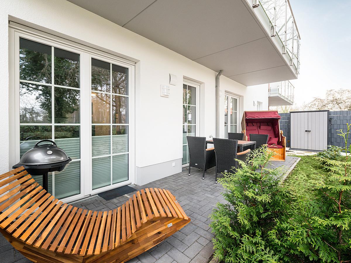 Richtige Urlaubsstimmung kommt auf der schönen Terrasse der Ferienwohnung auf. In der Unterkunft finden Sie neben einem Kühlschrank auch eine Mikrowelle und eine Kaffeemaschine.