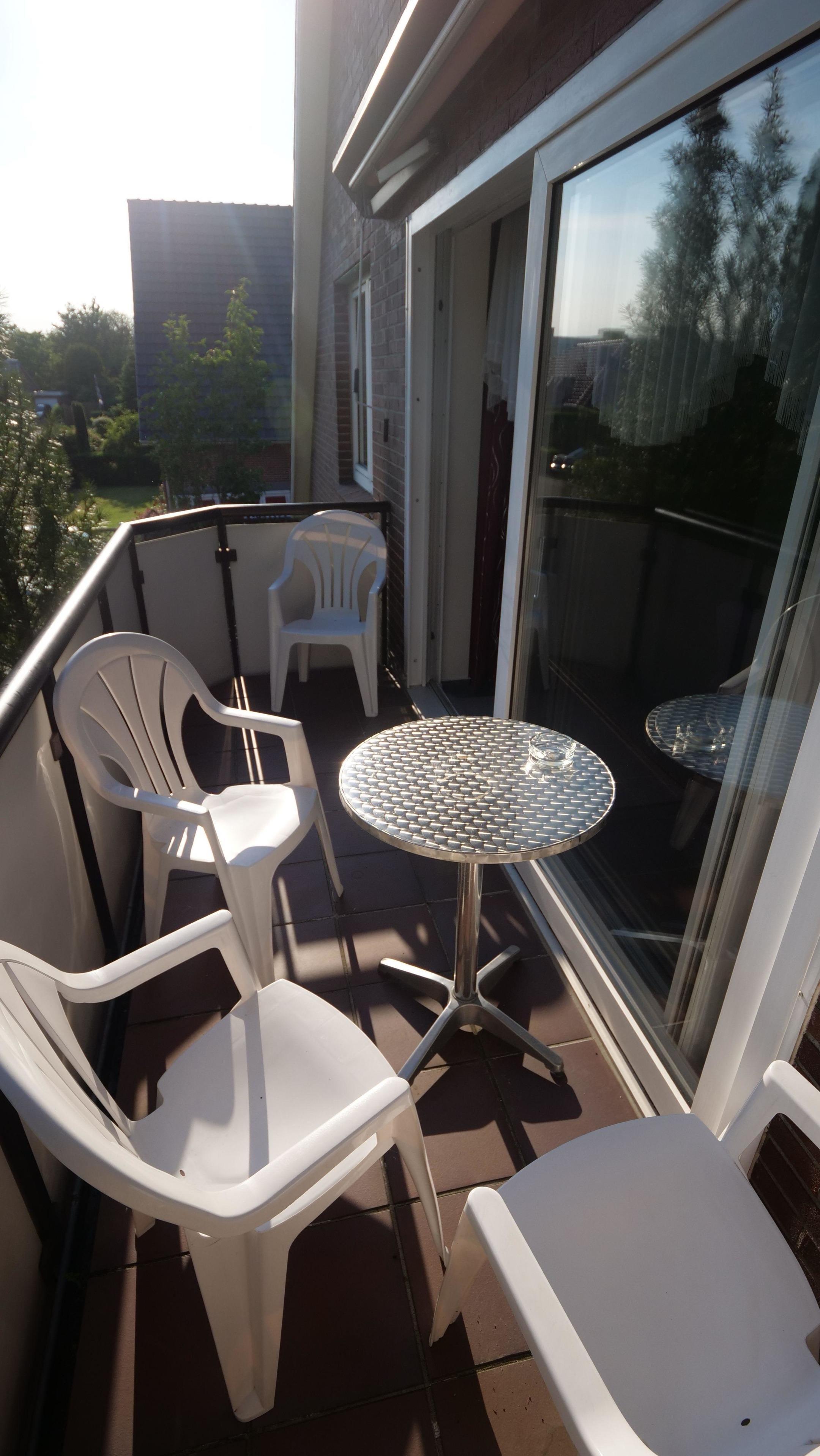 Der gemütliche Balkon ist mit Gartenmöbeln und einer Markise ausgestattet und lädt zum verweilen ein.