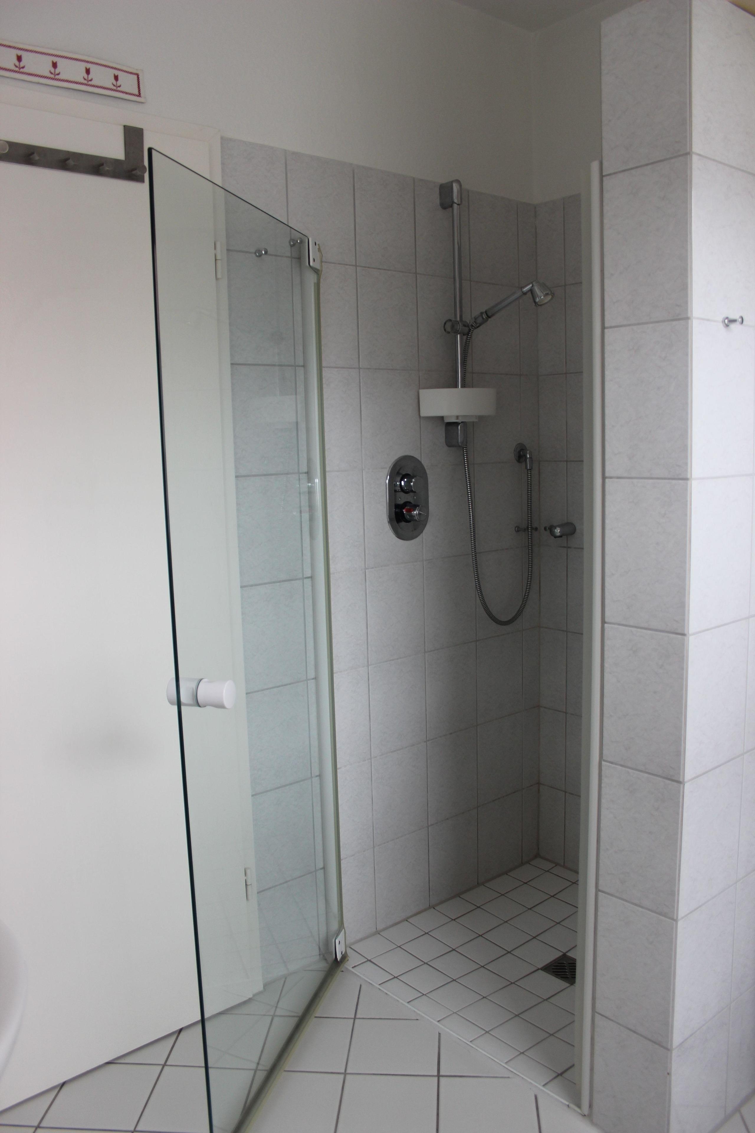 Das Bad weist eine ebenerdige Dusche aus, sowie eine erhöhte Toilette. Zudem ist ein Trockner und eine Waschmaschine vorhanden.