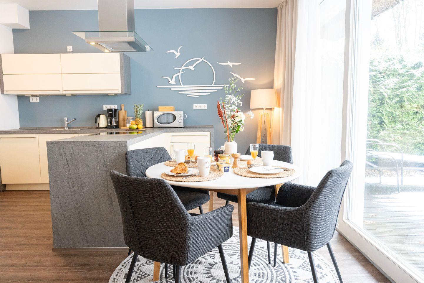 Es setzt sich aus unseren Wohnungen "Segel setzen", "Nebelgruß" und Wellenreiter zusammen. Dementsprechend besitzt das Haus 3 in sich abgeschlossene Wohneinheiten mit separaten Eingängen.