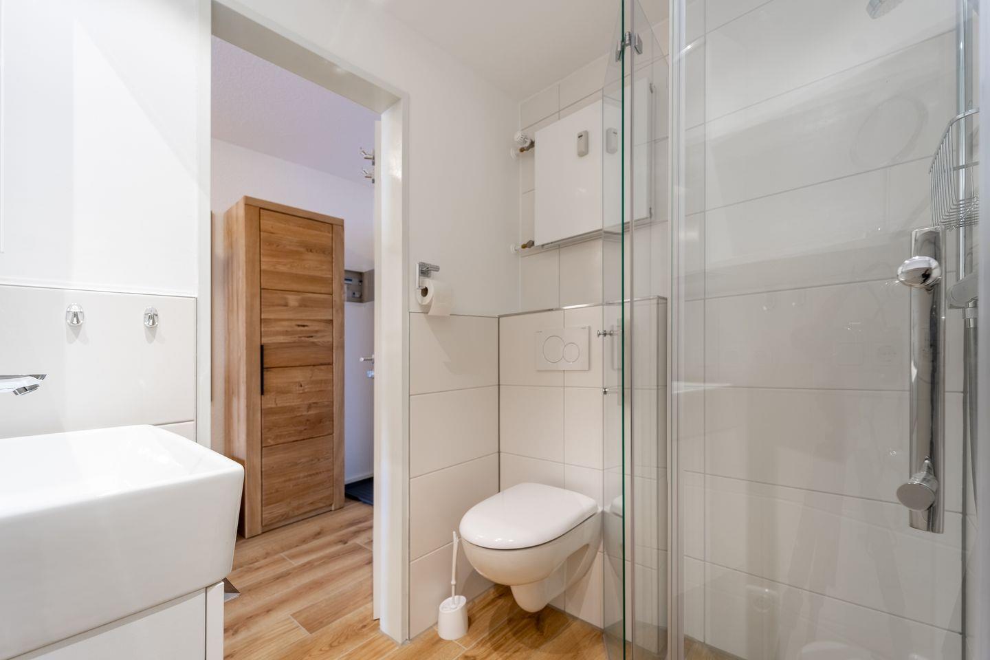 Das Highlight der Wohnung ist zweifellos die große Fensterfront, die Dir einen atemberaubenden Blick auf das Zwischenahner Meer bietet. Genieße dieses einzigartige Panorama vom Wohnzimmer oder direkt von Deiner eigenen Loggia aus, ausgestattet mit einem Essbereich und Liegestühlen. Dein Schlafzimmer ist der ideale Rückzugsort nach einem ereignisreichen Tag. Hier findest Du einen weiteren Fernseher und ein komfortables Bett für erholsame Nächte.