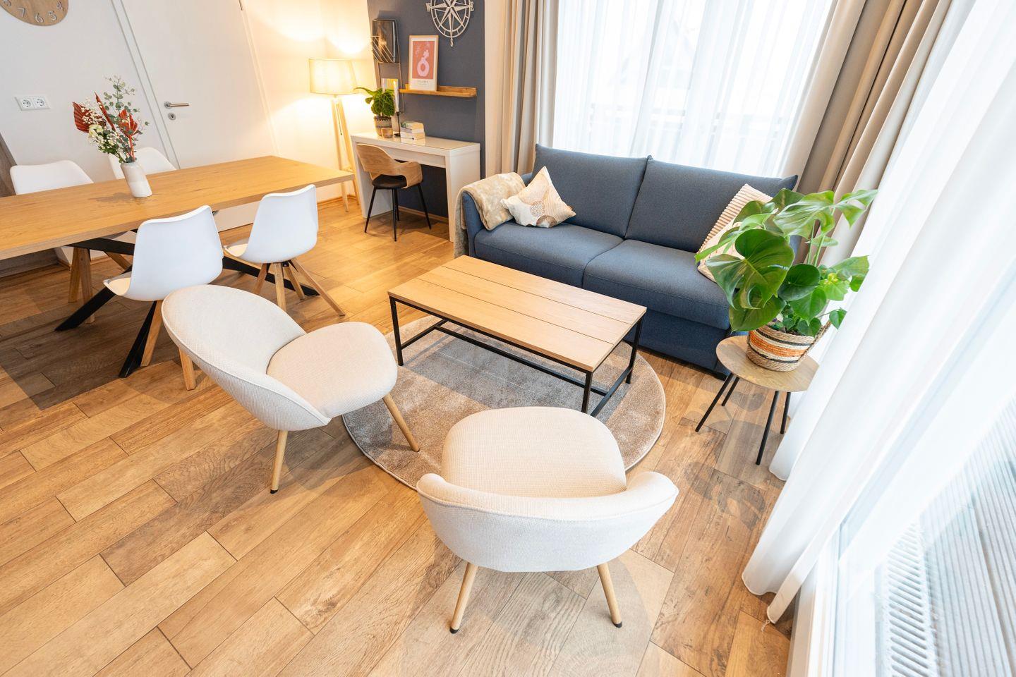 In den Wohnzimmern wartet neben einer gemütlichen Schlafcouch und einer einladenden Sitzecke mit Sofa und TV auch ein Arbeitsplatz mit Schreibtisch und schnellem WLAN auf dich – falls du doch mal ein paar Dinge erledigen musst.
