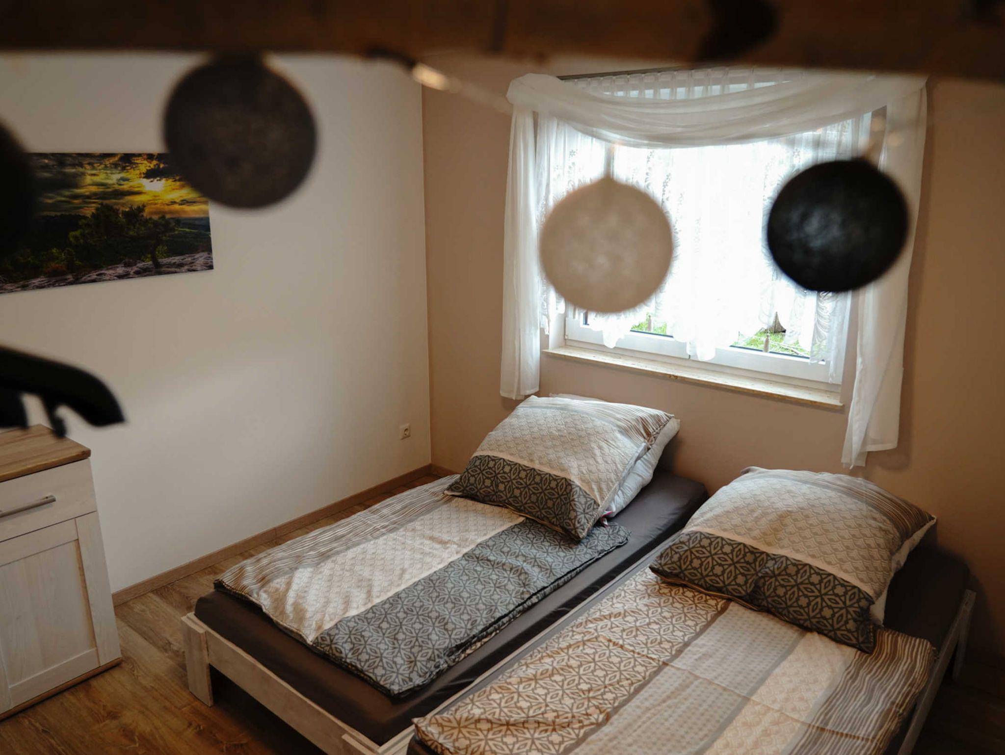 1 Schlafzimmer für 2 Erwachsene, können auch getrennt gestellt werden