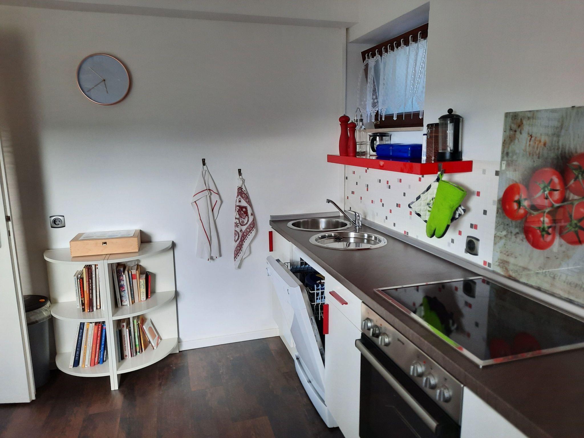 The spacious eat-in kitchen is fully equipped. Complete cooking and eating utensils, glasses and cups, plenty of cutlery, break-proof children's crockery, dishwasher, fridge/freezer combination, microwave oven, oven, 4-ring ceramic hob, 1 coffee machine (Senseo for coffee pods), kettle, egg cooker, rice cooker, toaster and much more leave nothing to be desired. A large collection of cookery books invites you to experiment. Towels, tea towels, dishcloths and cleaning cloths are provided. An initial supply of dishwasher tabs, washing-up liquid, hand soap and cleaning products is available.