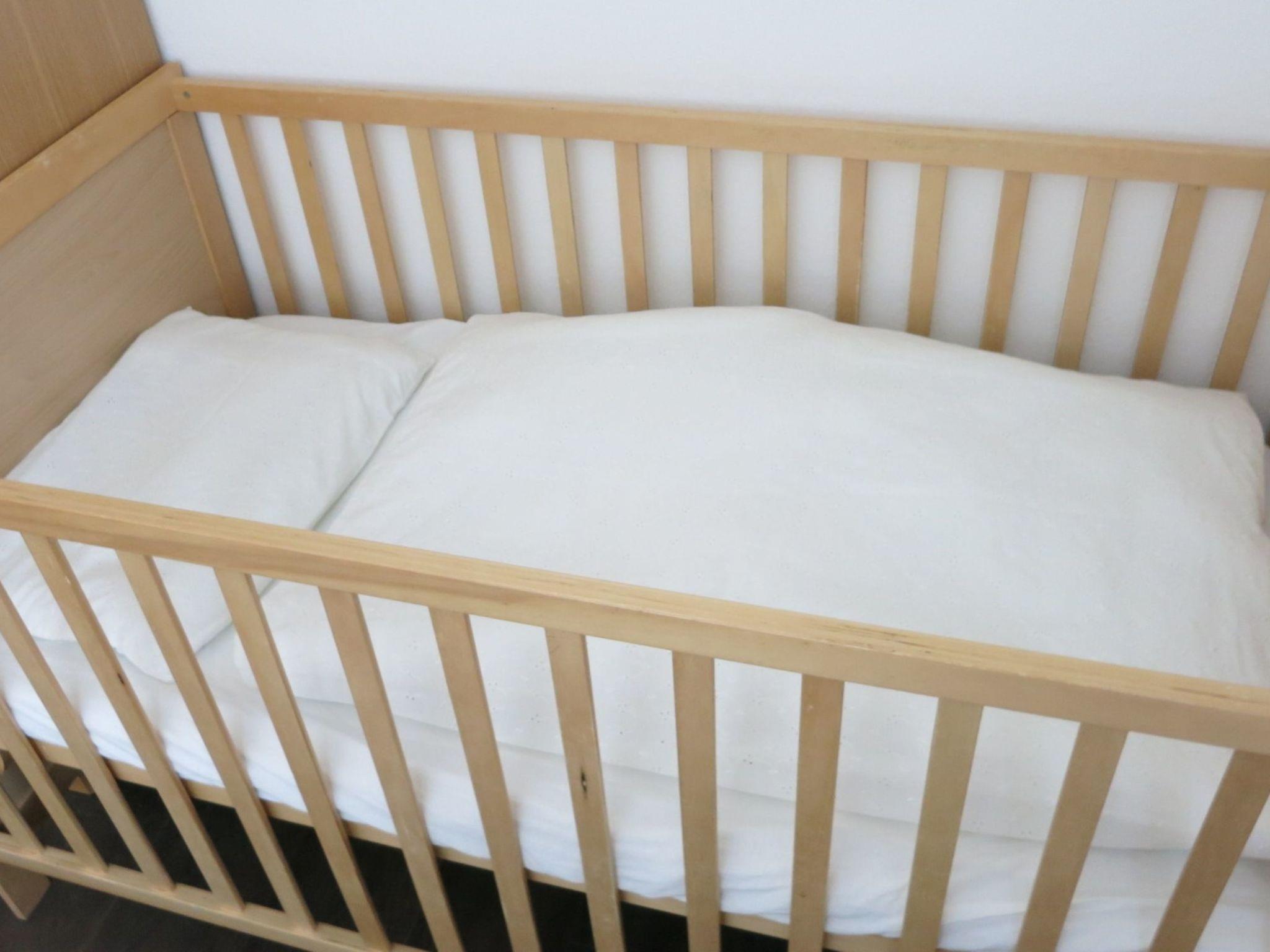 The highlight in the bedroom are two French double beds (queen-size beds), each measuring 140 x 200 cm. Here you can make yourself comfortable and really get a good night's sleep. A toddler/baby bed (140 x 70 cm) and a nappy-changing facility are available, and an additional baby travel cot (120 x 60 cm) is also available if required. The room is bright and cosy. A 5-door wardrobe and a chest of drawers offer plenty of storage space. There is a choice of different pillows. The bed linen, comfort size 150 x 220 cm, is provided.