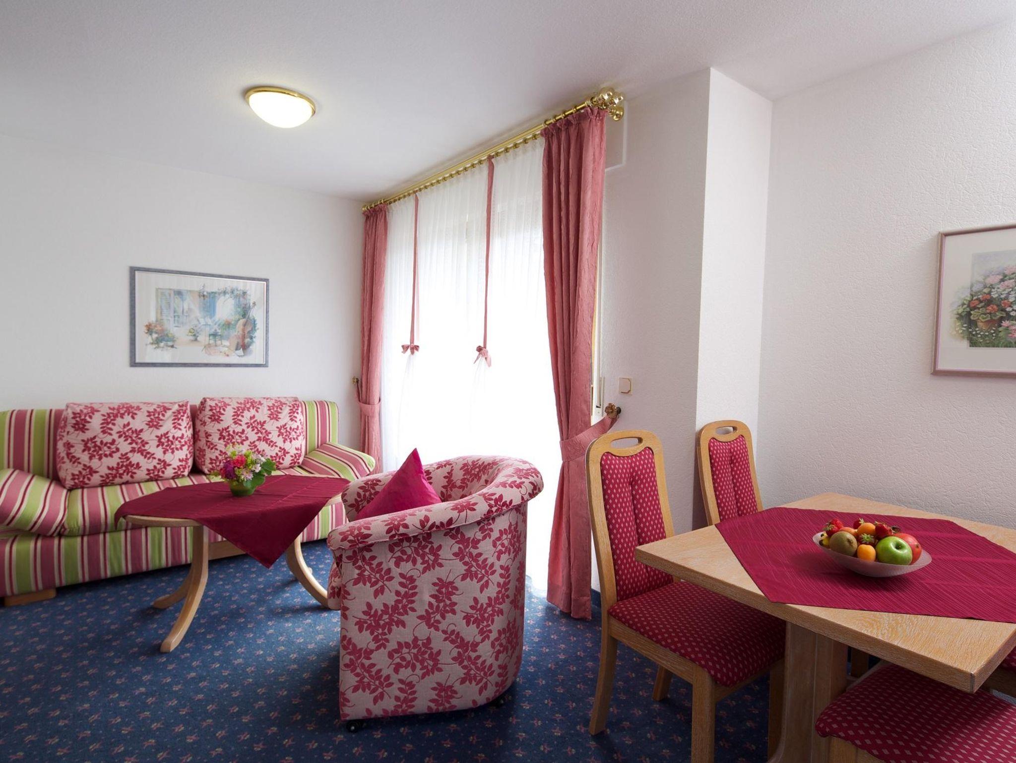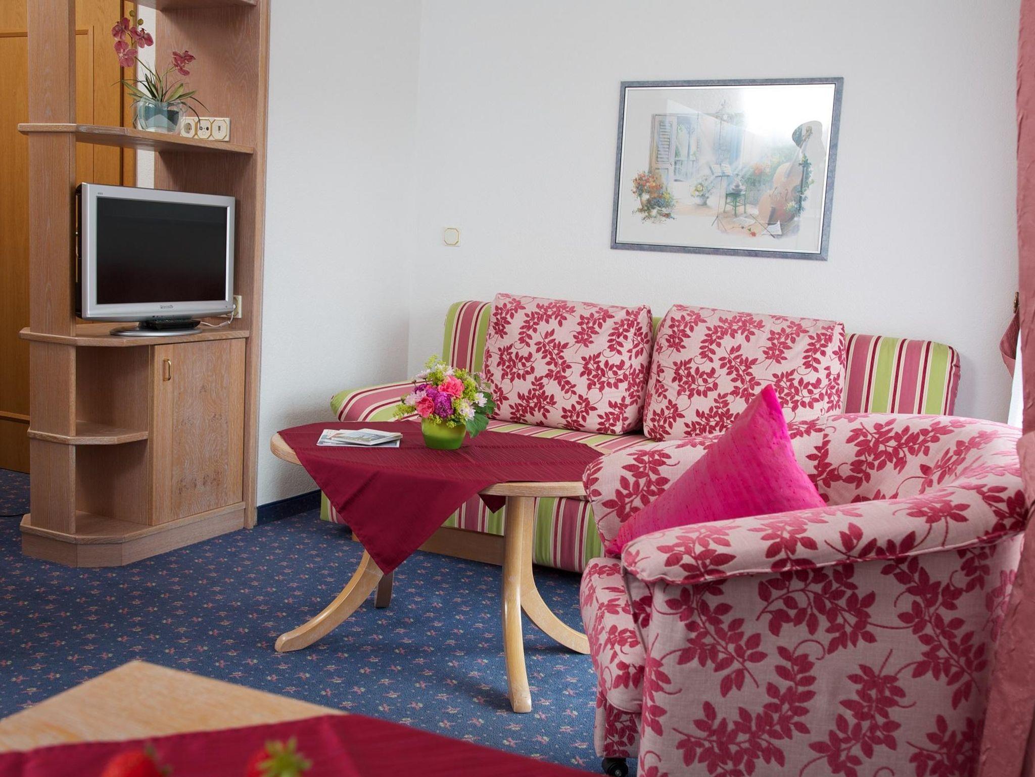 Wohnung Typ B im Landhaus, 40 qm, Ost-oder Nordwestseite, 1-2 Personen mit getrenntem Wohn- und Schlafraum, DU/WC, Föhn, Küchenzeile, Balkon, Kabel-TV, Radio, Safe und Direktwahltelefon