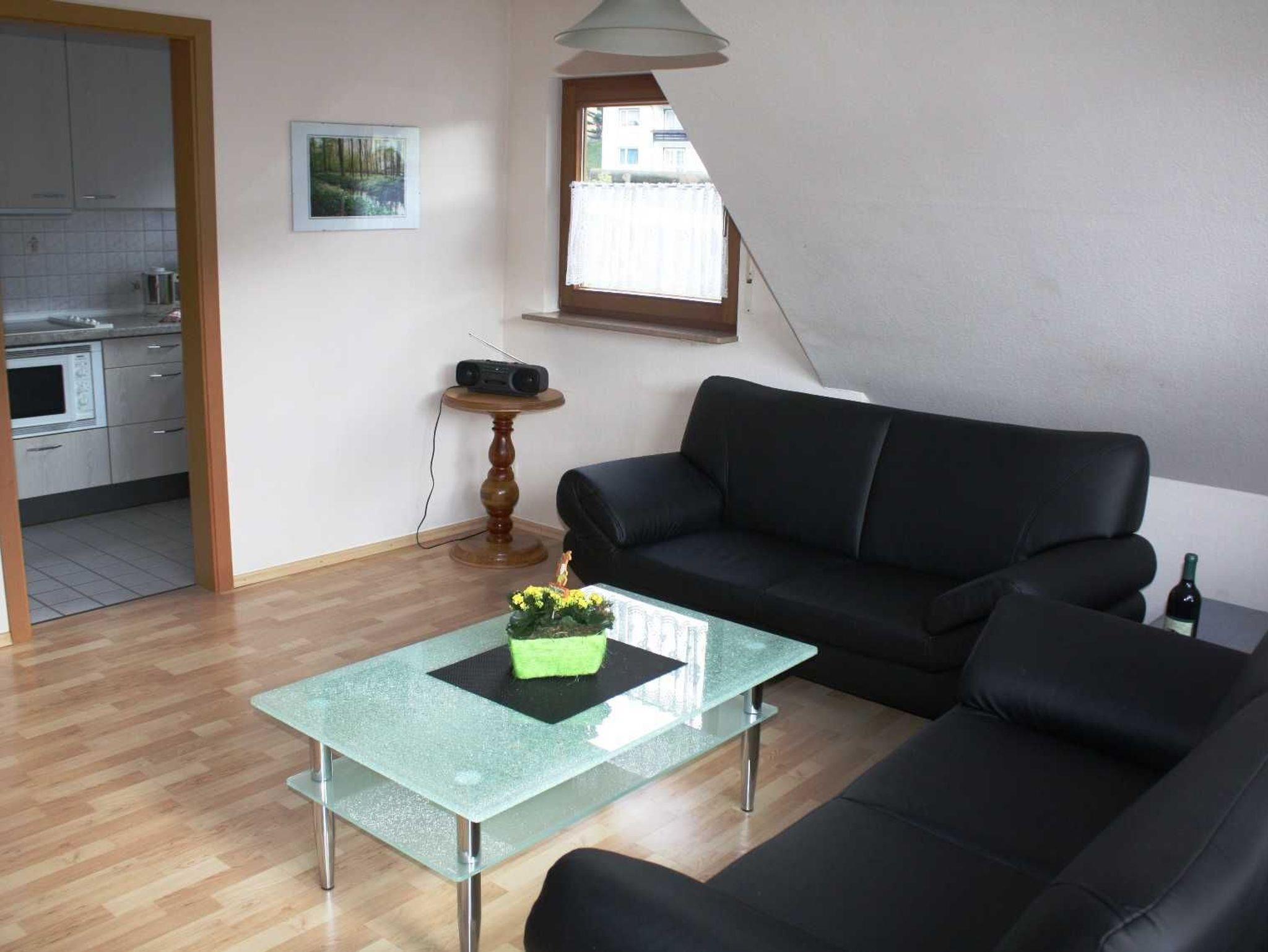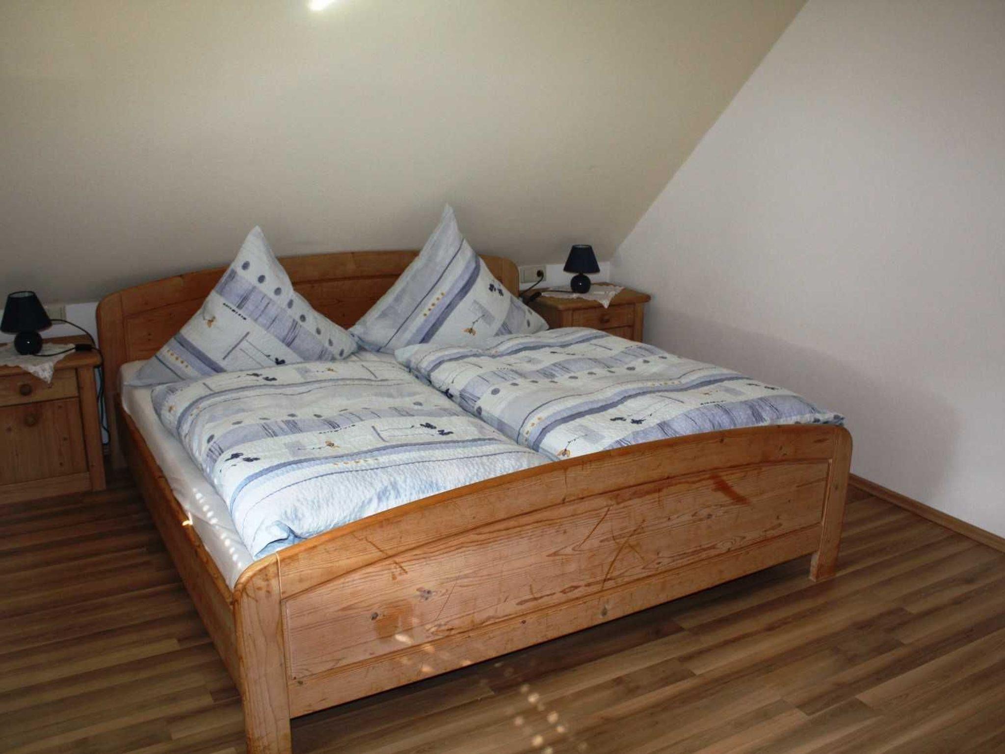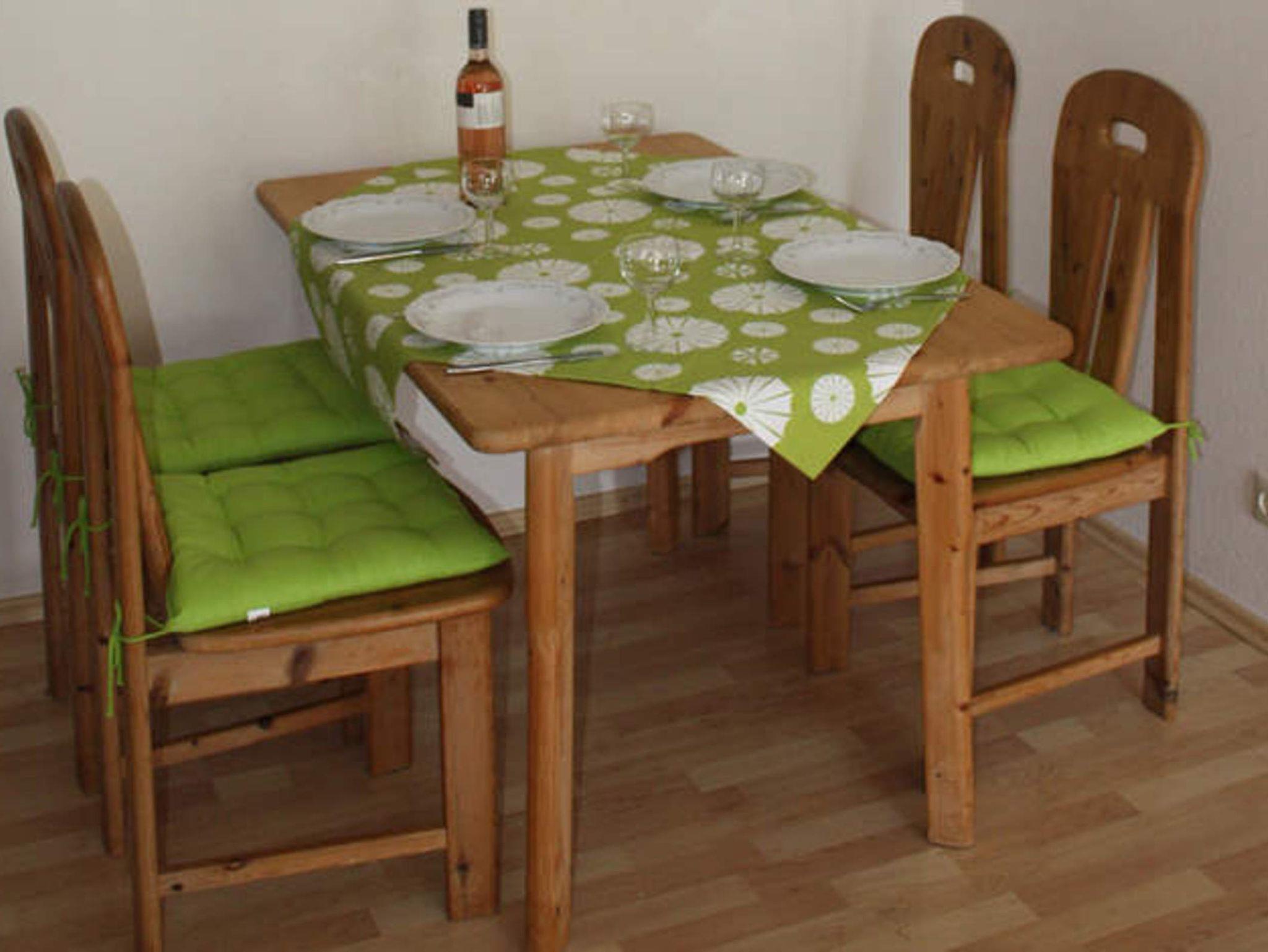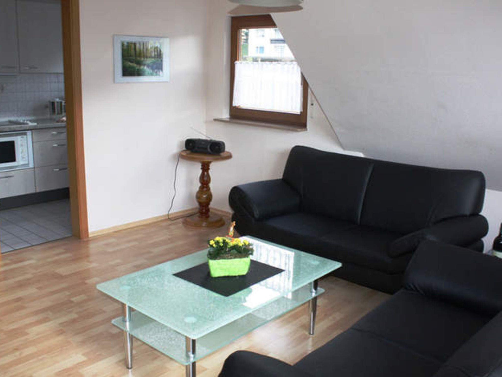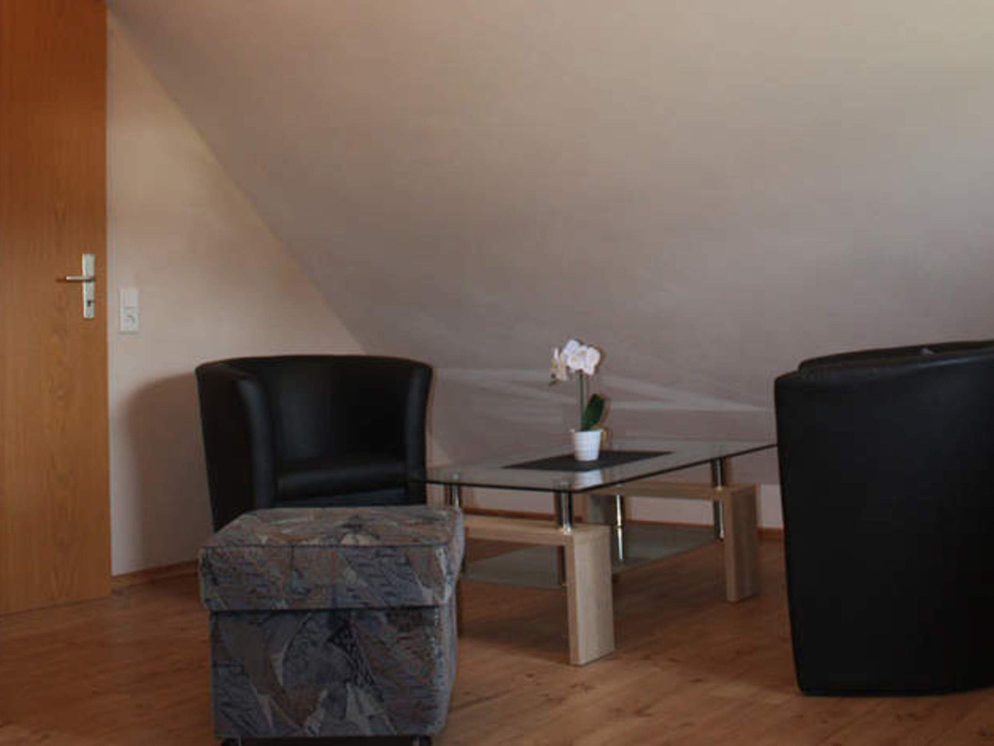 Die Ferienwohnung befindet sich im 1. und 2. OG eines ruhigen Wohnhauses und bietet für 2-5 Personen (4 Erwachsene) ausreichend Platz. Zur Wohnung gehören ein Südbalkon sowie eine Garage. Der Wohnraum ist hell und groß, sodass Sie es sich auch bei schlechtem Wetter gemütlich machen können. Die Essecke gehört zum Wohnbereich, schließt sich aber direkt an die Küche an. Die Küche ist mit Kühlschrank, Mikrowelle, Spülmaschine, Kaffeemaschine und Toaster sehr gut ausgestattet. Das Schlafzimmer mit einem großen Doppelbett ist geräumig und ein großer Schrank bietet viel Stauraum. Ein Kinderbett ist vorhanden. In dem Zimmer im Dachgeschoss stehen zwei Einzelbetten sowie ein zweites TV-Gerät.