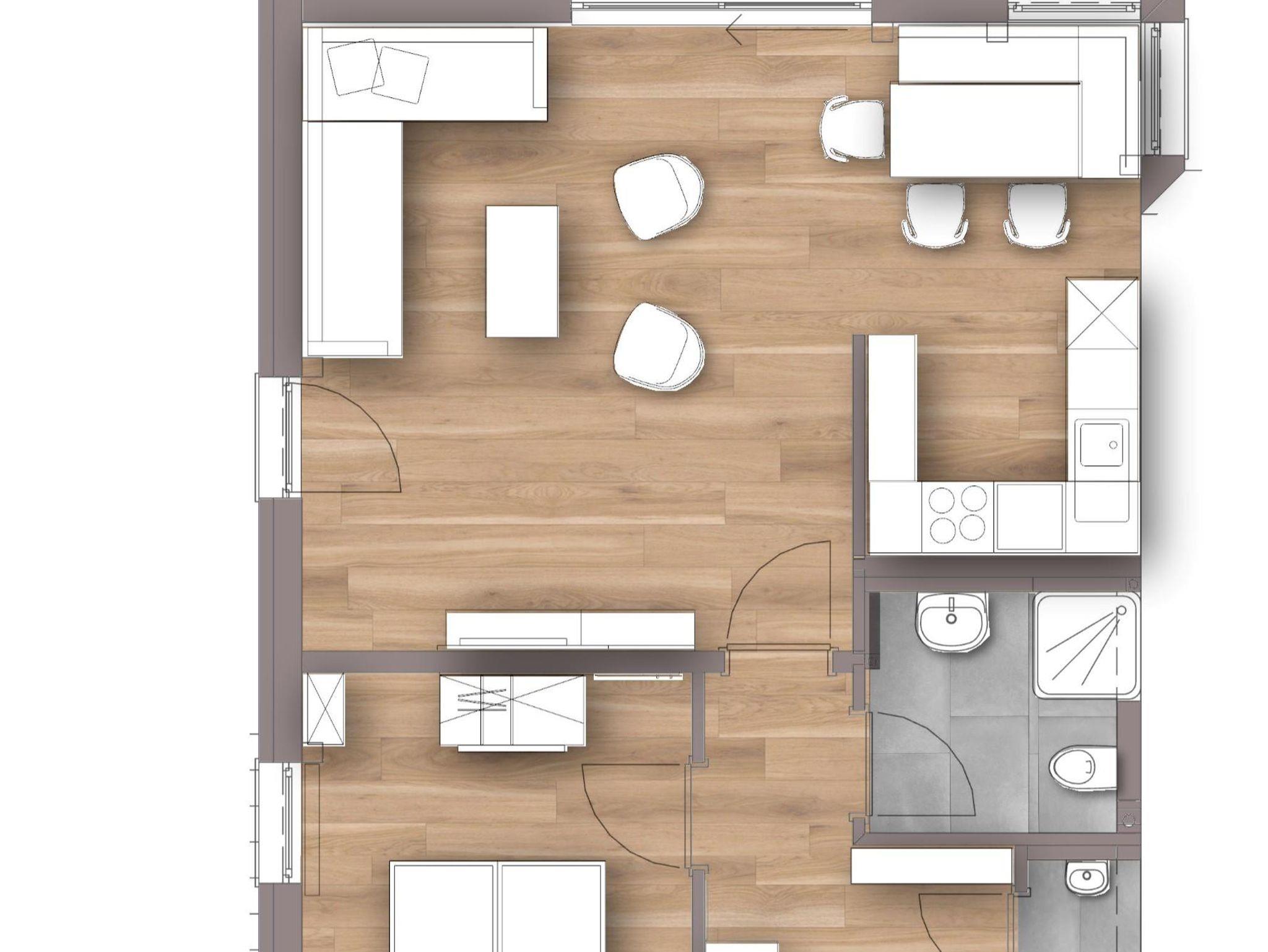 Die 60m² große Wohnung mit Fußbodenheizung ist modern und mit Wohlfühlcharakter eingerichtet. Sie besteht aus einem großen Wohn-Esszimmer, einer komplett ausgestatteten Küche, einem Schlafzimmer sowie einem Badezimmer und einem separaten WC. Im Wohnzimmer kann das Sofa zu einem Schlafsofa umgebaut werden. Das Schlafzimmer verfügt über ein 180x200 cm Doppelbett und einen zusätzlichen TV.
