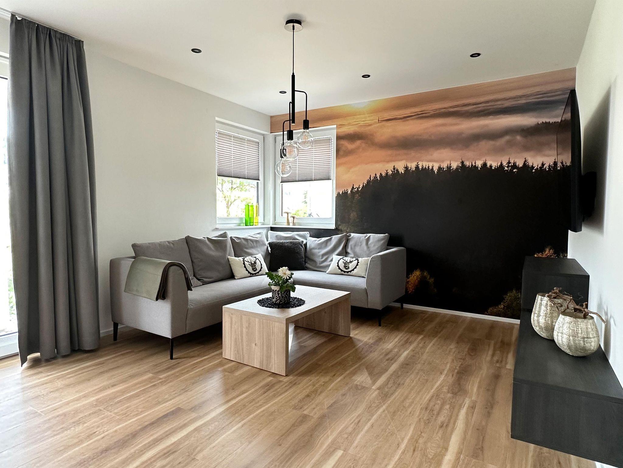 Die 60m² große Wohnung mit Fußbodenheizung ist modern und mit Wohlfühlcharakter eingerichtet. Sie besteht aus einem großen Wohn-Esszimmer, einer komplett ausgestatteten Küche, einem Schlafzimmer sowie einem Badezimmer und einem separaten WC. Das Schlafzimmer verfügt über ein 180x200 cm Doppelbett und einen zusätzlichen TV.