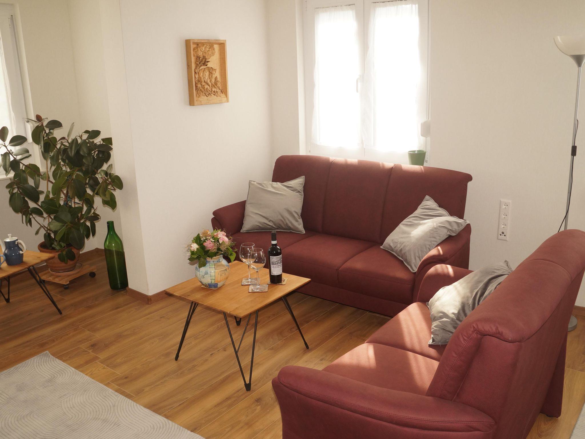 Die Wohnung verfügt über ein großes Wohnzimmer mit 2 Betten für Kinder oder Jugendliche, ein Schlafzimmer, eine voll ausgestatte Küche und ein Badezimmer mit begehbarer Dusche und WC. Sie hat einen eigenen Eingang und liegt fast ebenerdig.