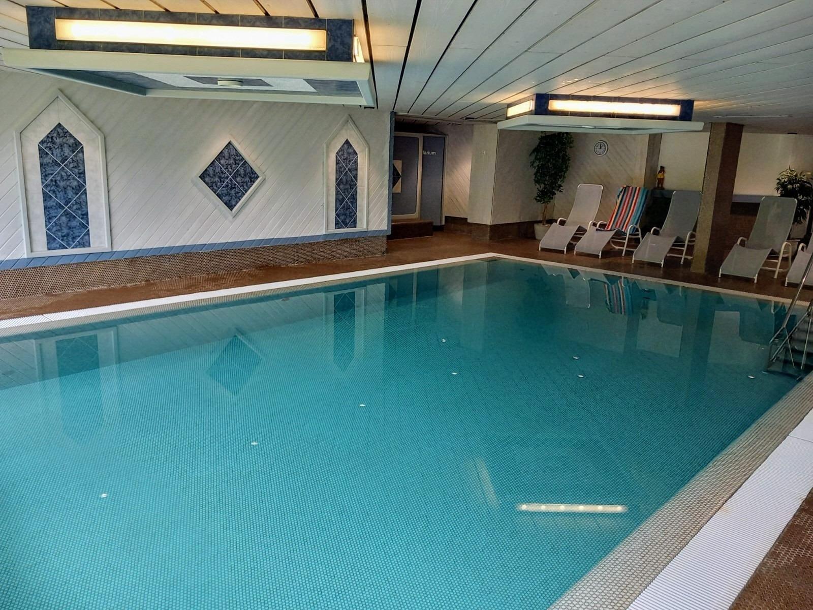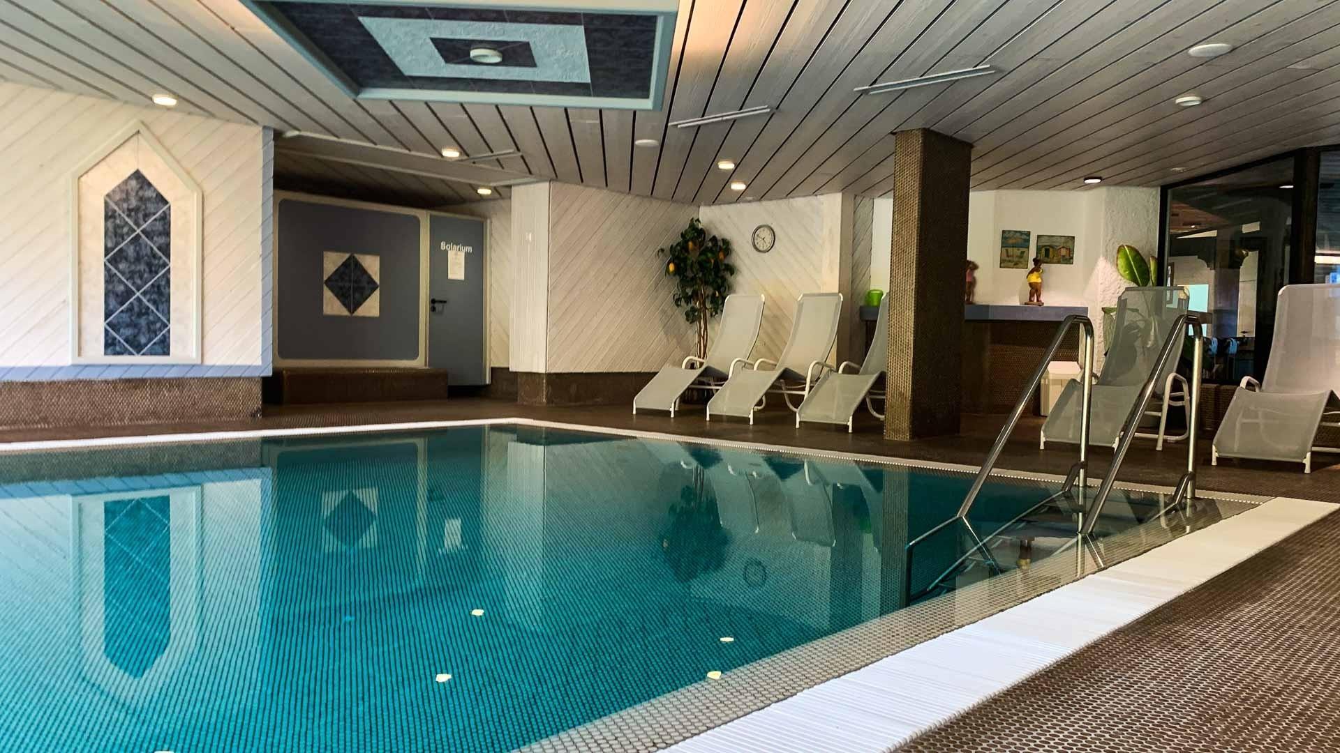 Ein besonderes Highlight ist das Schwimmbad mit moderner Sauna und einem Solarium.