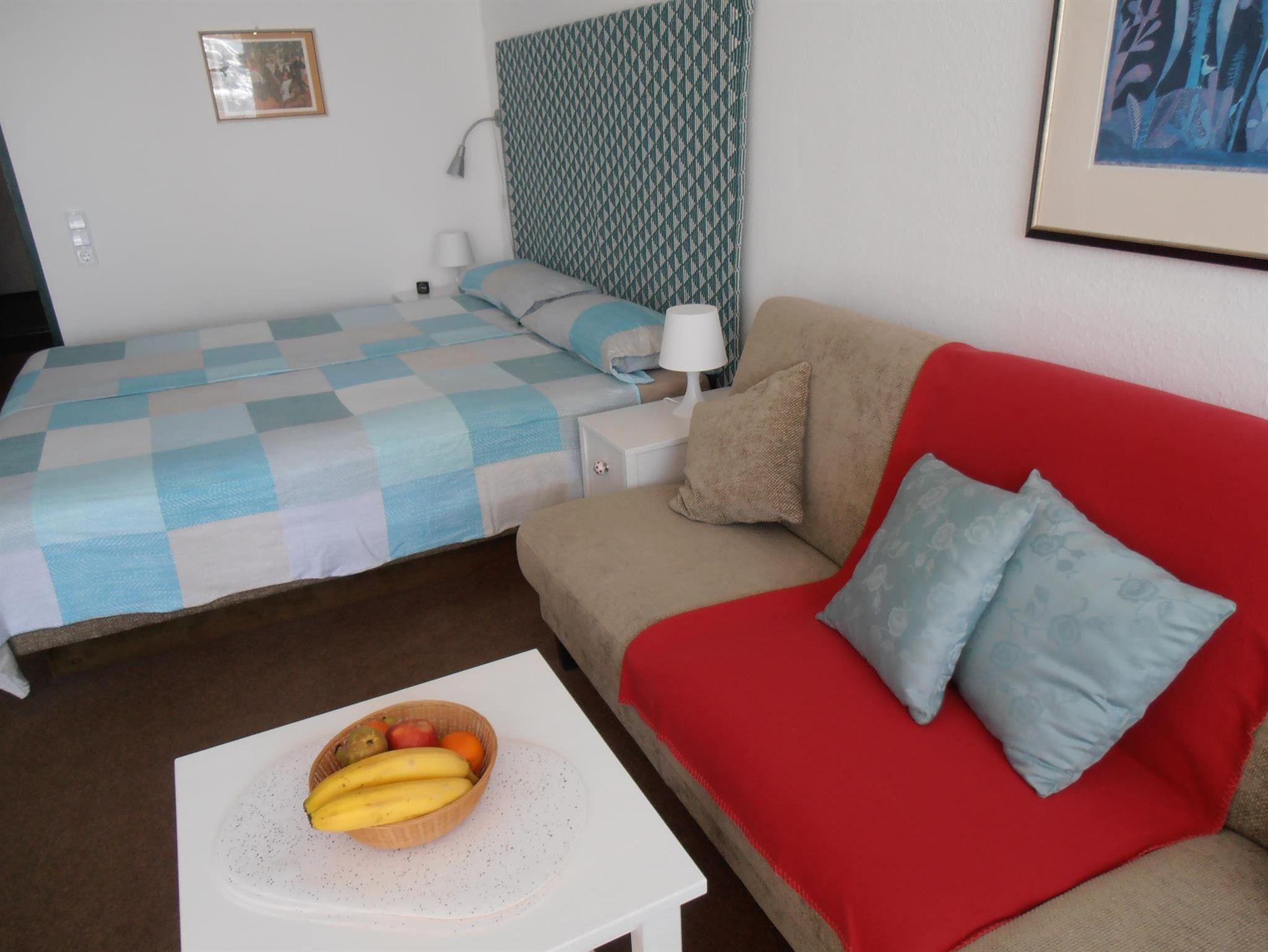 Ausstattung: Alles Notwendige im Appartement vorhanden: TV, Föhn, Kaffeemaschine, Wasserkocher, kleiner Backofen, Toaster, Kühlschrank, Tiefkühlschrank, Küchenzeile mit zwei Kochplatten.