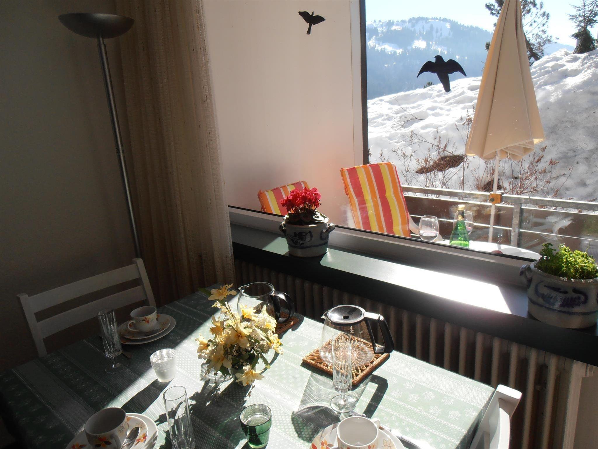 Unser großzügiges Appartement liegt in West-Lage mit herrlichem Blick auf den Feuerstätter Kopf und umliegenden Bergen.