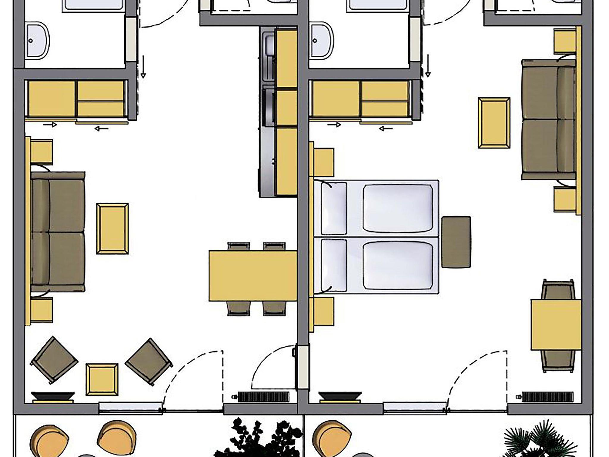 Große, sonnige Ferienwohnung, 60 m² bestehend aus zwei sonnendurfluteten, hellen Zimmern, neu renoviert, 1 Zimmer mit Küchenzeile und Doppelbett, 1 Zimmer mit Doppelbett und Sitzecke, TV, Telefon, 2 x Südbalkon, 2 x Bad, 2 x WC, Küche mit Backofen, Mikrowelle, Kaffeemaschine, Gästewaschmaschine und -Trockner vorhanden