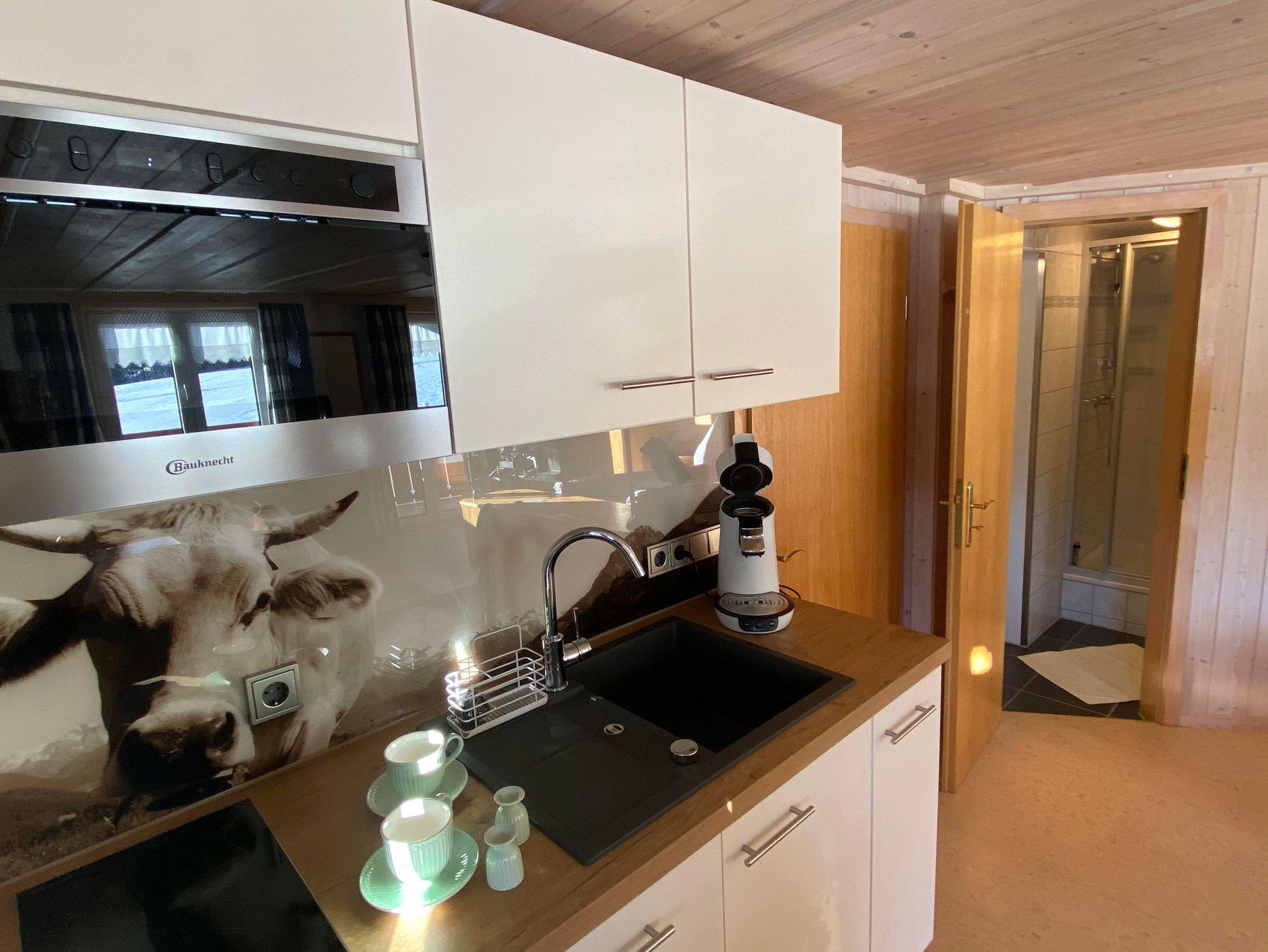 Großzügiges, lichtdurchflutetes 1-Zimmer-Appartement mit großem, möbliertem Balkon, Sonnenschirm, hell und freundlich eingerichtet im Landhausstil. Küche mit Zweiplatten Creranfeld, Spülmaschine, Mikrowelle mit Grillfunktion, Kühlschrank mit ***Gefrierfach, Wasserkocher, Toaster, Senseo Kaffeepadmaschine, Doppelbett, Couch, Esstisch, Kleiderschrank, Bad mit Dusche/WC,SAT-TV, Radio/CD, kostenloses WLAN,