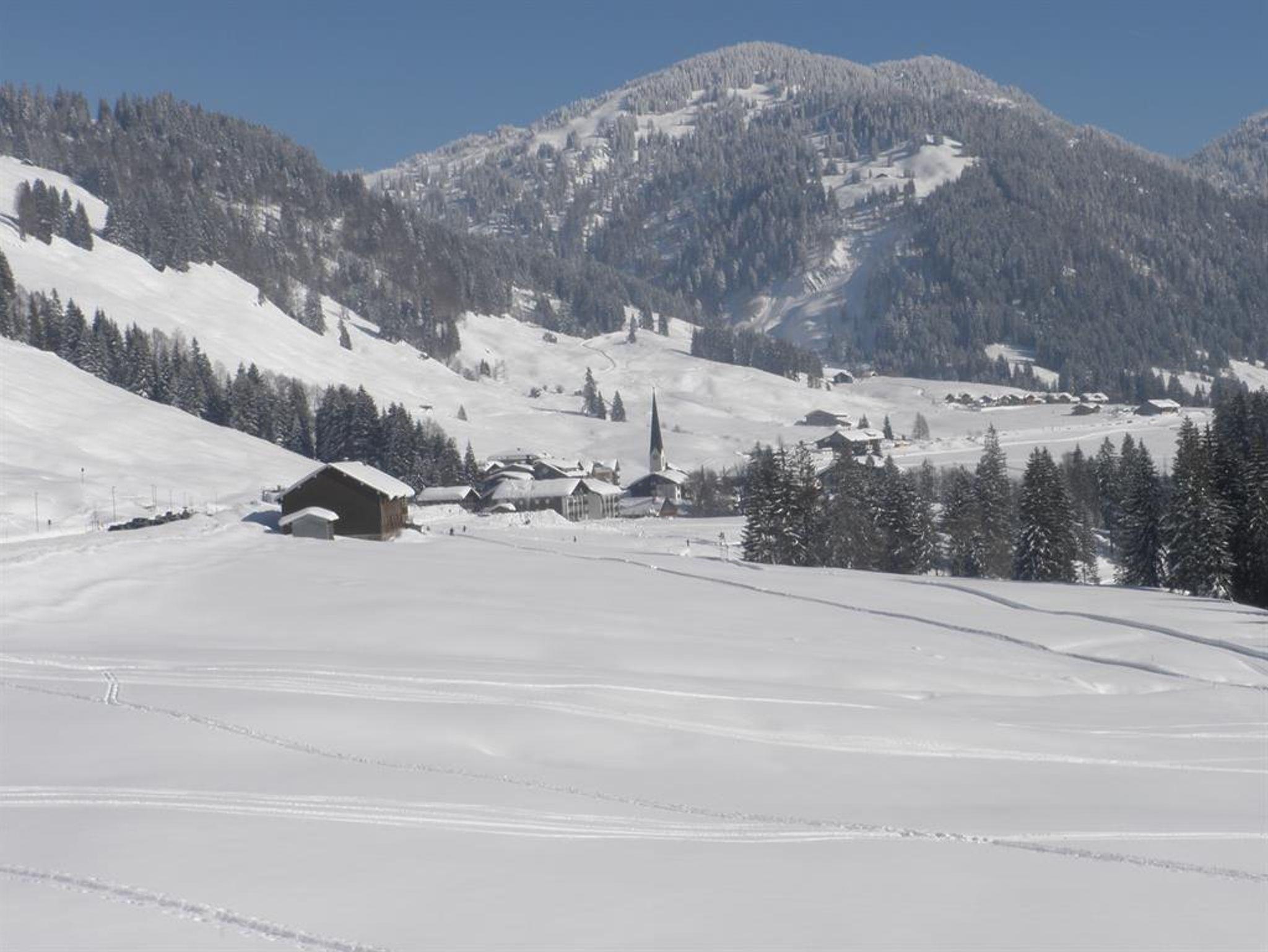 Lage: ca. 600 m westlich der Ortsmitte, Bushaltestelle am Haus (Linienbus kostenfrei). Unser Appartement für max. 3 Pers. liegt in herrlicher SO-Aussichtslage im EG (barrierefrei ab PKW-Stellplatz), wegen der Hanglage des Hauses jedoch eigentlich im 4 Stockwerk (vgl. Foto mit gelbem Sonnenschirm auf dem Balkon). Da nur ein kleiner Teil der Wohnungen vermietet wird, herrscht wirklich Ruhe im ganzen Haus; TT-Raum, Waschmaschine + Trockner im Trockenraum; Biohotel Ifenblick gegenüber bietet leckere Frühstücksbrötchen etc. gegen Vorbestellung; Sauna gegen kleine Gebühr beim Hausmeister. Im Winter: Aus dem Skikeller direkt auf Loipe + Piste; Zubringerlift Gschwend II aus dem Hochschelpen-Skigebiet bis zum Haus; Ski-Service ist gegenüber. Im Sommer: Vom überdachten Balkon herrlicher Blick ins Grüne, zum Dorf und auf die Berge. Ausstattung: Alles Notwendige im Appartement vorhanden incl. TV, DVD, Kaffeemaschine, Toaster, Teekocher, 1 Matratzen-Topper. Kostenloses WLAN im App.