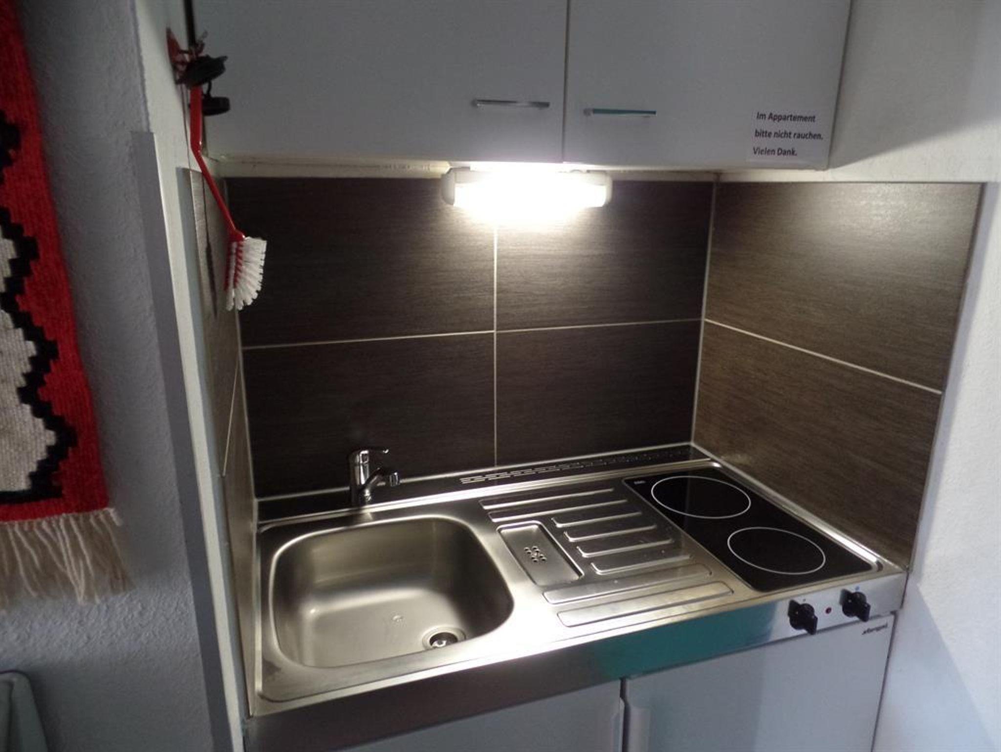 Appartement mit ca. 30 qm. Kleinküchenzeile mit Kühlschrank, Kaffeemaschine, Toaster, Teekocher. Wohn-/Schlafraum mit hochwertigem Doppel-Schrankbett, modernes ausziehbares Schlafsofa, Baby-Bett und SAT-TV. Separates Bad mit Dusche/WC. Überdachter Balkon mit herrlichem Ausblick, Balkonmöbel und Sonnenschirm. Bettwäsche bitte mitbringen; Vierbeiner sind uns leider nicht willkommen.