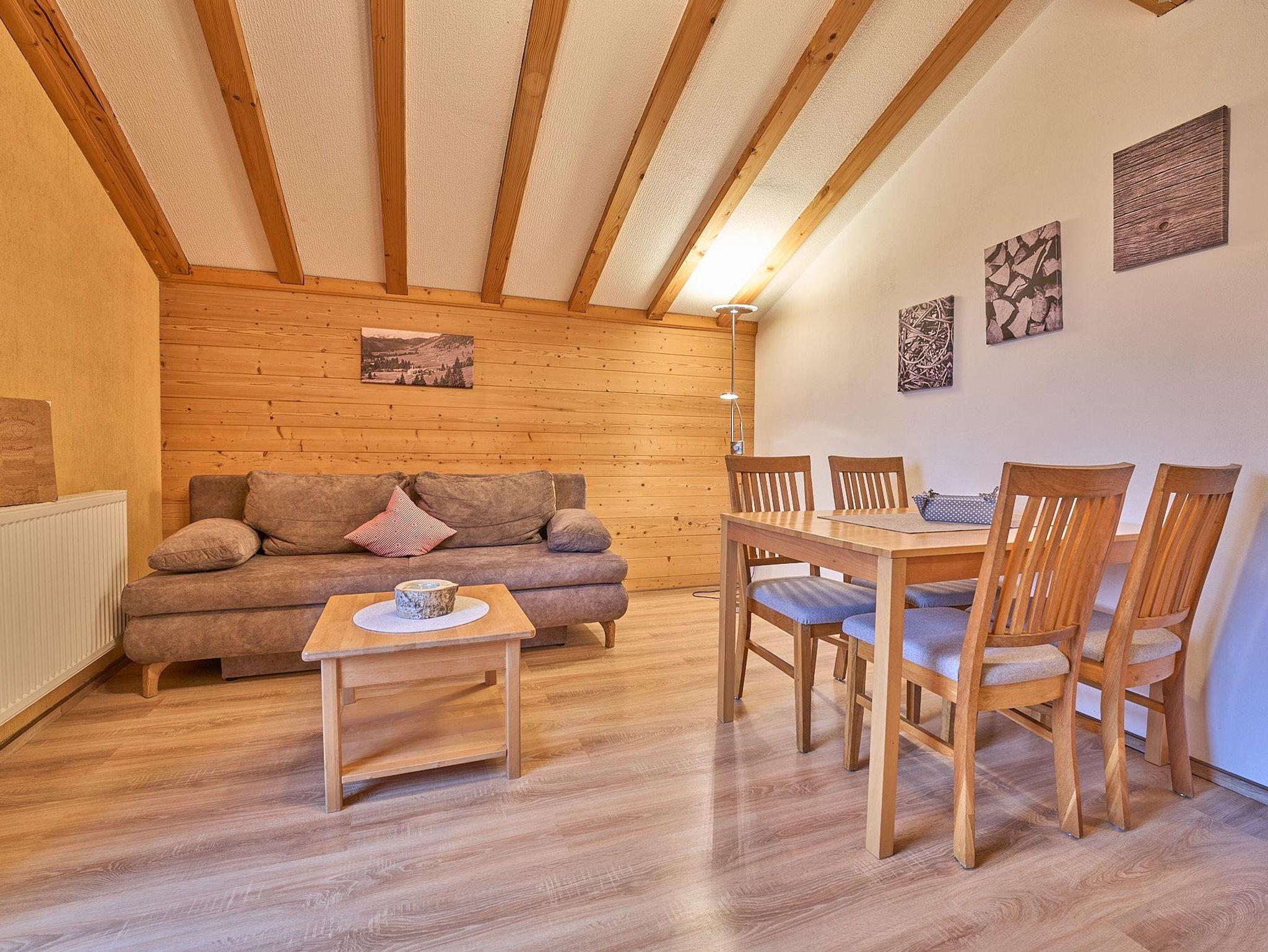 2-Raum-Ferienwohnung für max. 4 Personen (1. OG - 45 qm) Wohnraum mit Couchgarnitur (Doppelbettcouch), TV und Essbereich;