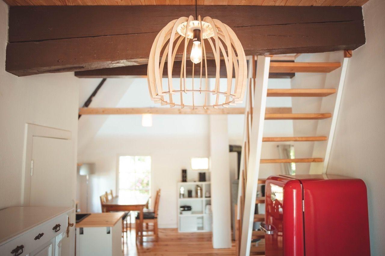 Das Haus verfügt über eine große offene Diele, die in direkt in den offenen Wohnbereich geht. Ebenso integriert ist die Küche. Es gibt zwei Schlafzimmer im Erdgeschoss - ein Schlafzimmer mit Doppelbett (180/200) und ein kleines Schlafzimmer mit einem Bett (140/200). Über eine steile Treppe geht es hoch auf die Galerie - hier steht ein breites und bequemes Schlafsofa zur Verfügung.