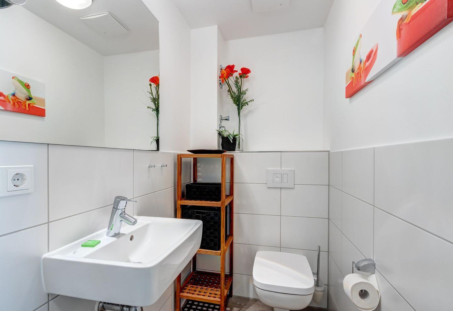 Die obere Etage dieser bezaubernden Maisonettewohnung wartet mit einem lichtdurchfluteten Badezimmer auf, das mit einer modernen, ebenerdigen Dusche ausgestattet ist. In einem der Schlafzimmer finden Sie einen Fernseher und einen Arbeitsplatz, der perfekt für gemütliches Arbeiten am Laptop ist – für zusätzlichen Komfort während Ihres Aufenthalts.