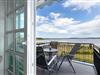 Der untere Bereich beeindruckt mit einem großzügigen Wohnzimmer, das nahtlos in eine offene Küche mit einem komfortablen Esstisch übergeht. Von hier aus öffnen sich die Türen zu einem malerischen Ausblick auf das Achterwasser. Der mit einer Markise ausgestattete Balkon lädt dazu ein, entspannte Urlaubsmomente im Freien zu genießen.