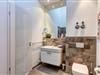 Über die elegante Treppe in dunklem Schoko-Holz mit einem Geländer aus Edelstahl gelangen Sie zur Galerie im oberen Stockwerk. Dort erwartet Sie ein hochwertiges Bad mit einem großzügigen bodengleichen Duschbereich und einer Designer Wellness, die den Tagesanfang zu einem besonderen Erlebnis macht. Angrenzend an die Galerie befindet sich das großzügige Schlafzimmer mit einem Doppelbett, Verdunklungsmöglichkeit und eigenem TV. Das Schlafzimmer ist in den Farben weiß-sand gehalten, und sowohl die Galerie als auch das Schlafzimmer sind mit Vinyl-Planken in heller Holzoptik ausgelegt.
