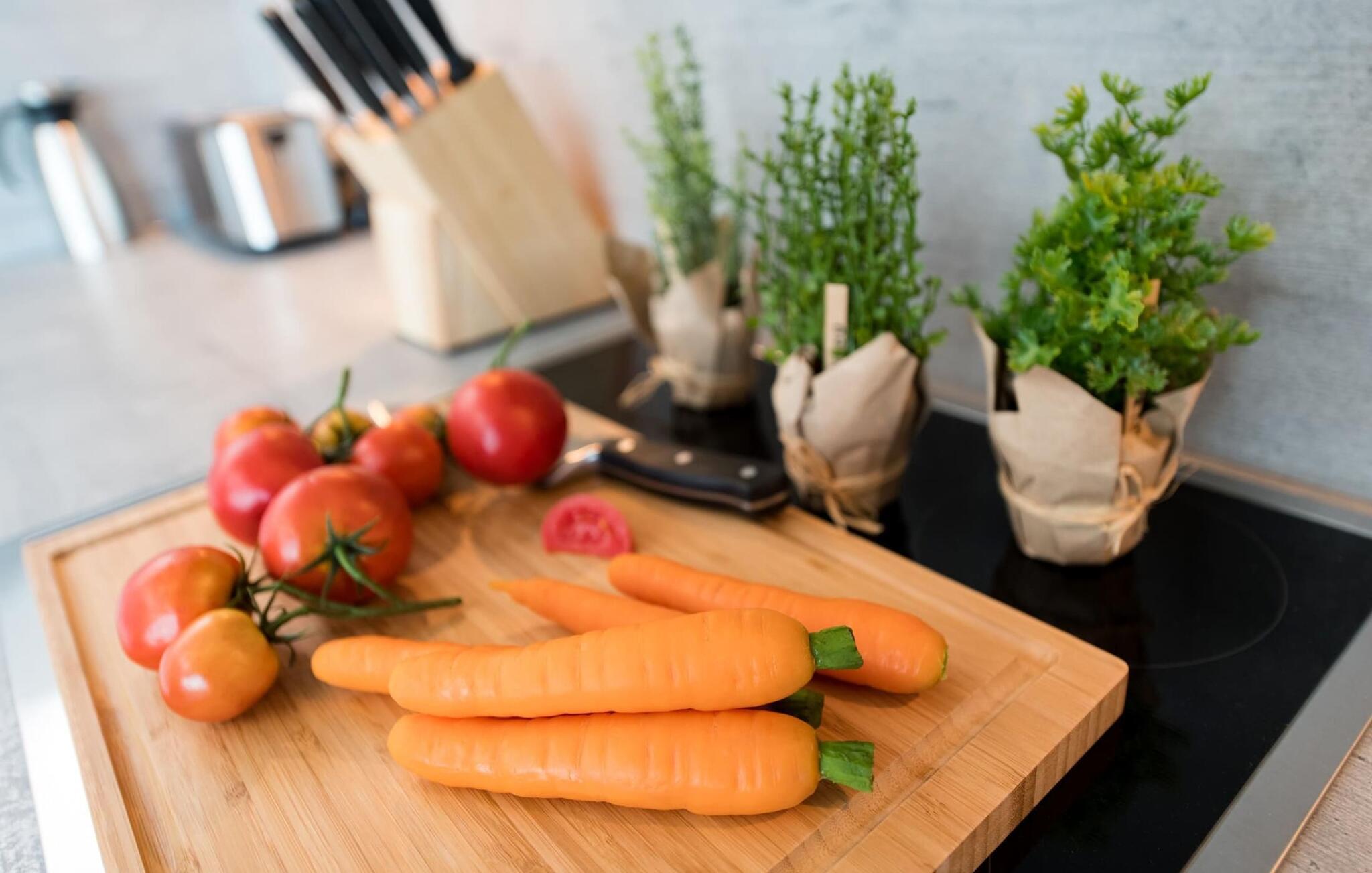 På ferien er der tid til kreativ madlavning, det fuldt udstyrede køkken-alrum lader intet tilbage at ønske. Morgenmad i morgensolen på østterrassen, ren feriefølelse.
