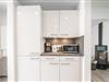 Det ene soveværelse er indrettet med dobbeltseng, og det andet med en sovesofa. I stuen såvel som i soveværelserne er der et Samsung Frame TV. Det åbne køkken er udstyret med køkkenmaskiner af høj kvalitet, så I kommer bestemt ikke til at mangle noget. Der er desuden en brændeovn i opholdsrummet, som spreder ekstra hygge i årets kolde måneder. Boligen rundes af med et dejligt udeområde, som består af en velholdt have med møbleret terrasse.