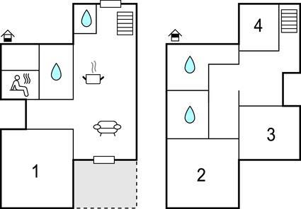 Badeværelse (nr. 2) - WC. Varmt og koldt vand. Bruser
