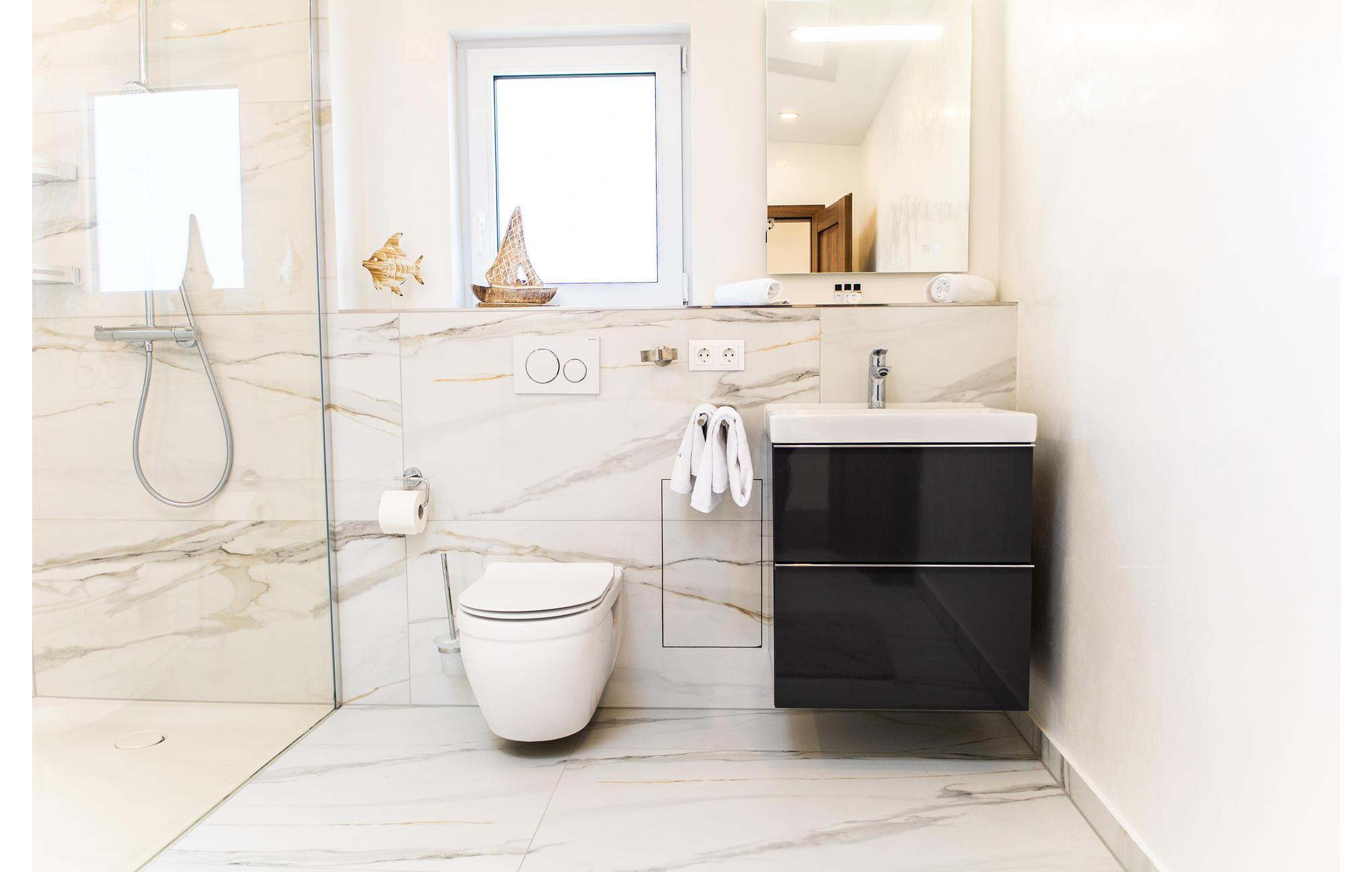 "Ostsee-Villaen" tilbyder jer en eksklusiv boligoplevelse på to rummelige etager. Udover en hyggelig opholds- og spisestue med køkken har I fire soveværelser, tre bruserum og et gæstetoilet. Badeværelset nedenunder har en sauna.