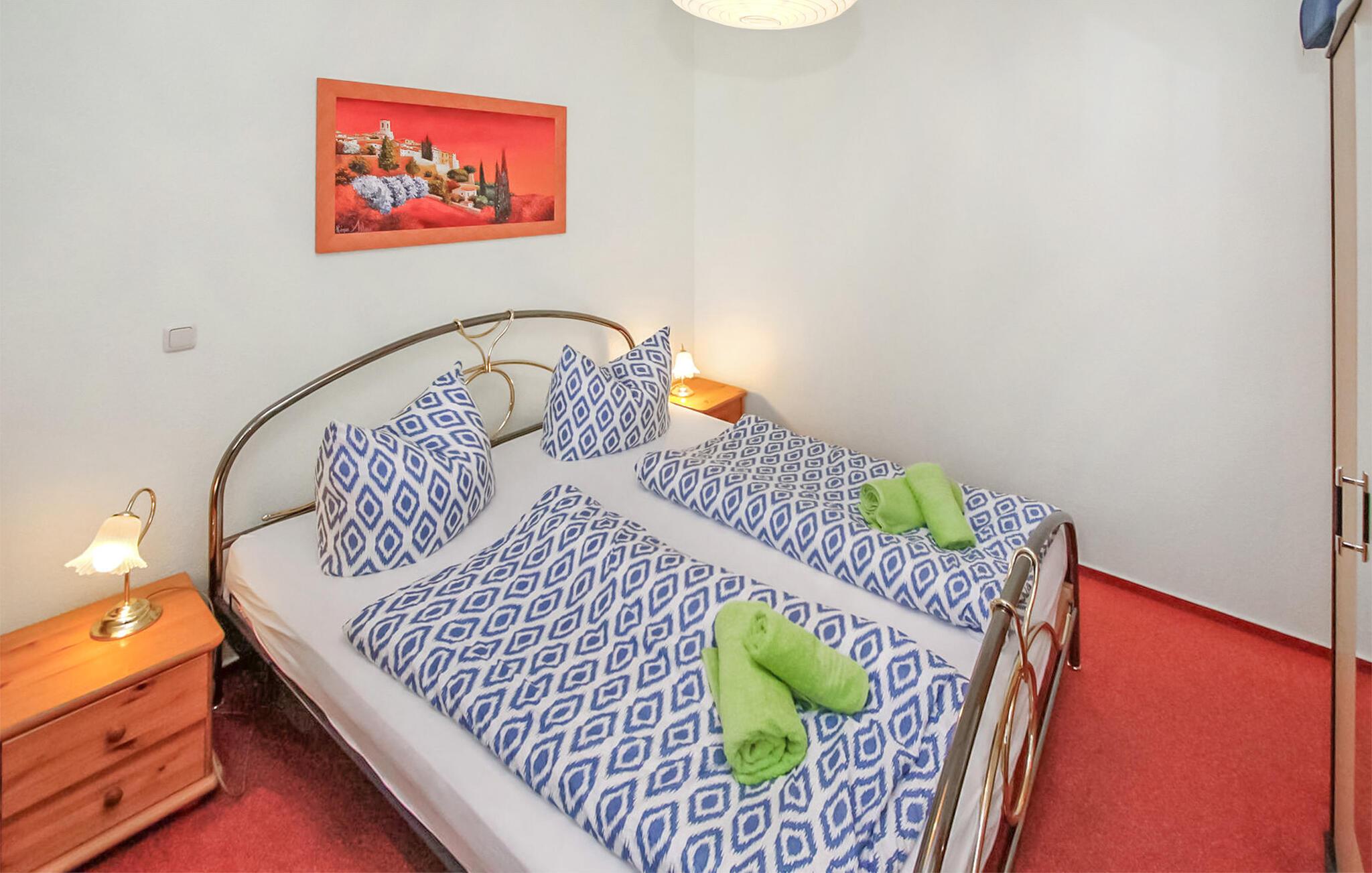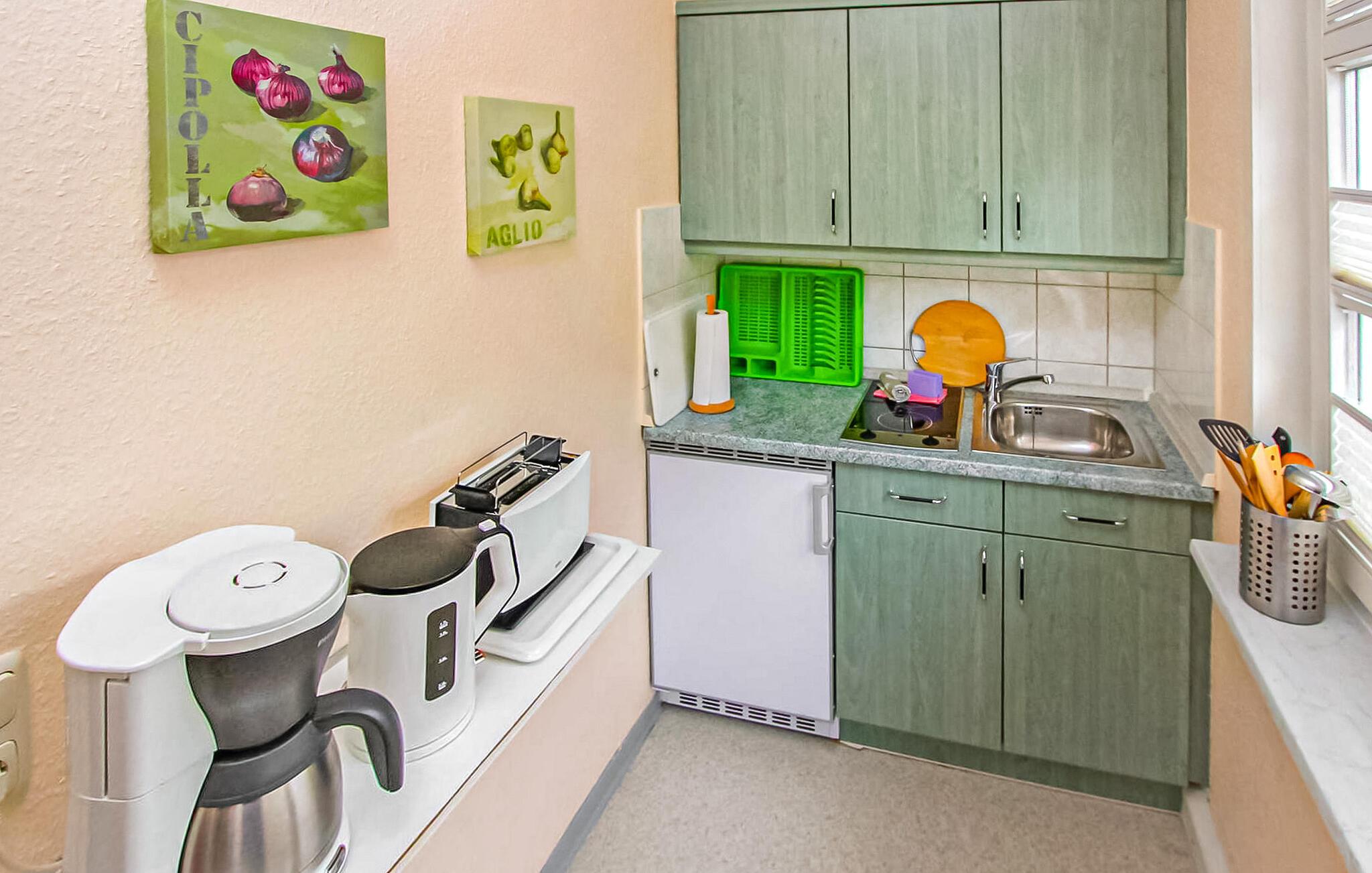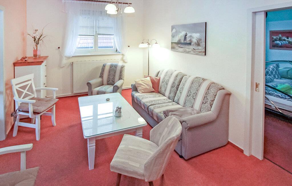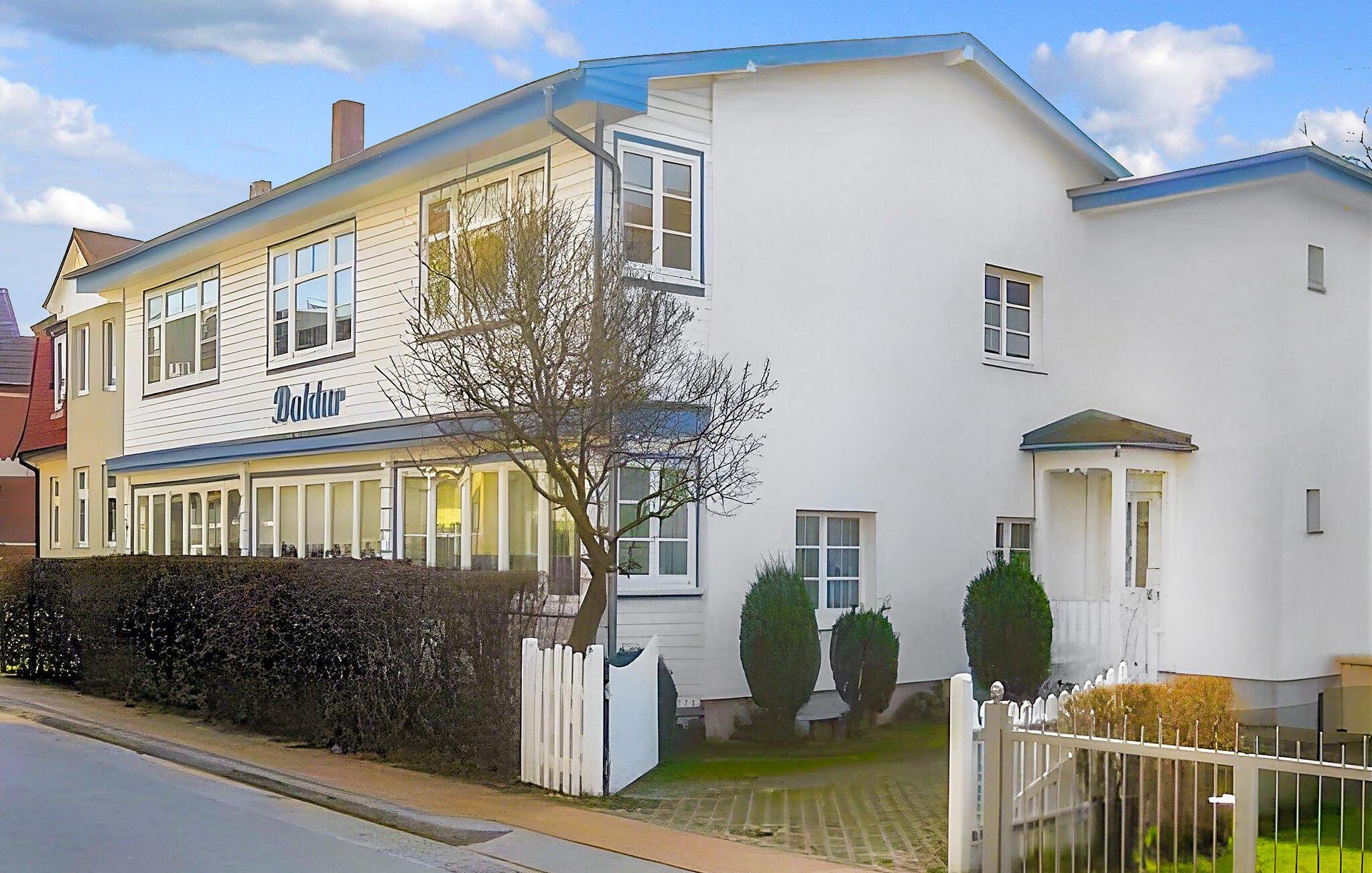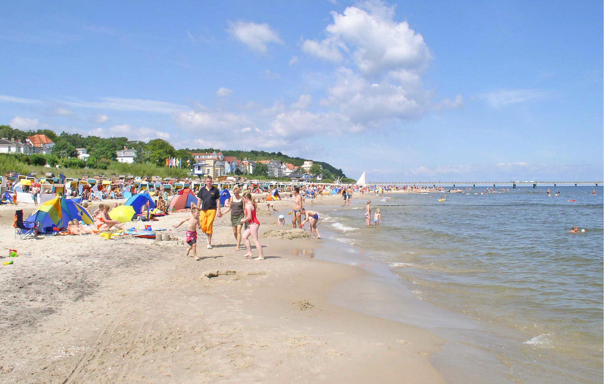 En af fire ferielejligheder i en villa bygget i typisk feriestedsarkitektur mellem Østersøstranden (ca. 100 m) og Schloonsee. Der er separat adgang til lejlighederne. Der er en gratis parkeringsplads (trang) til rådighed for hver boligenhed. Når de er fyldte og af pladshensyn, parkeres gæstebilerne efter hinanden, hvilket kræver koordinering mellem hinanden. En babyseng er tilgængelig efter aftale. Den samlede pris inkluderer vand- og energiforbrug samt slutrengøring. Du skal selv medbringe sengelinned og håndklæder. Cykler kan parkeres på ejendommen. Denne ferielejlighed har en størrelse på 35 kvm. En rejseseng kan efter aftale leveres gratis. Udstyret er behageligt. Stue (sovesofa, satellit-tv, radio), soveværelse (dobbeltseng), veranda med tekøkken og spiseplads, bad/toilet, centralvarme. Badebyerne Bansin, Heringsdorf og Ahlbeck er de såkaldte kejserlige feriesteder på øen Usedom. De har brede sandstrande, moler med moler og er forbundet med hinanden af en promenade, der fører til Swinoujscie i Polen. I byerne er der leje af cykler, båd og strandstole, tennisbaner og et netværk af godt afmærkede vandrestier. Et moderne vandland, Ostseetherme, ligger centralt mellem Heringsdorf og Ahlbeck. Grænseovergangen til Polen kan nås fra Ahlbeck på få minutter.