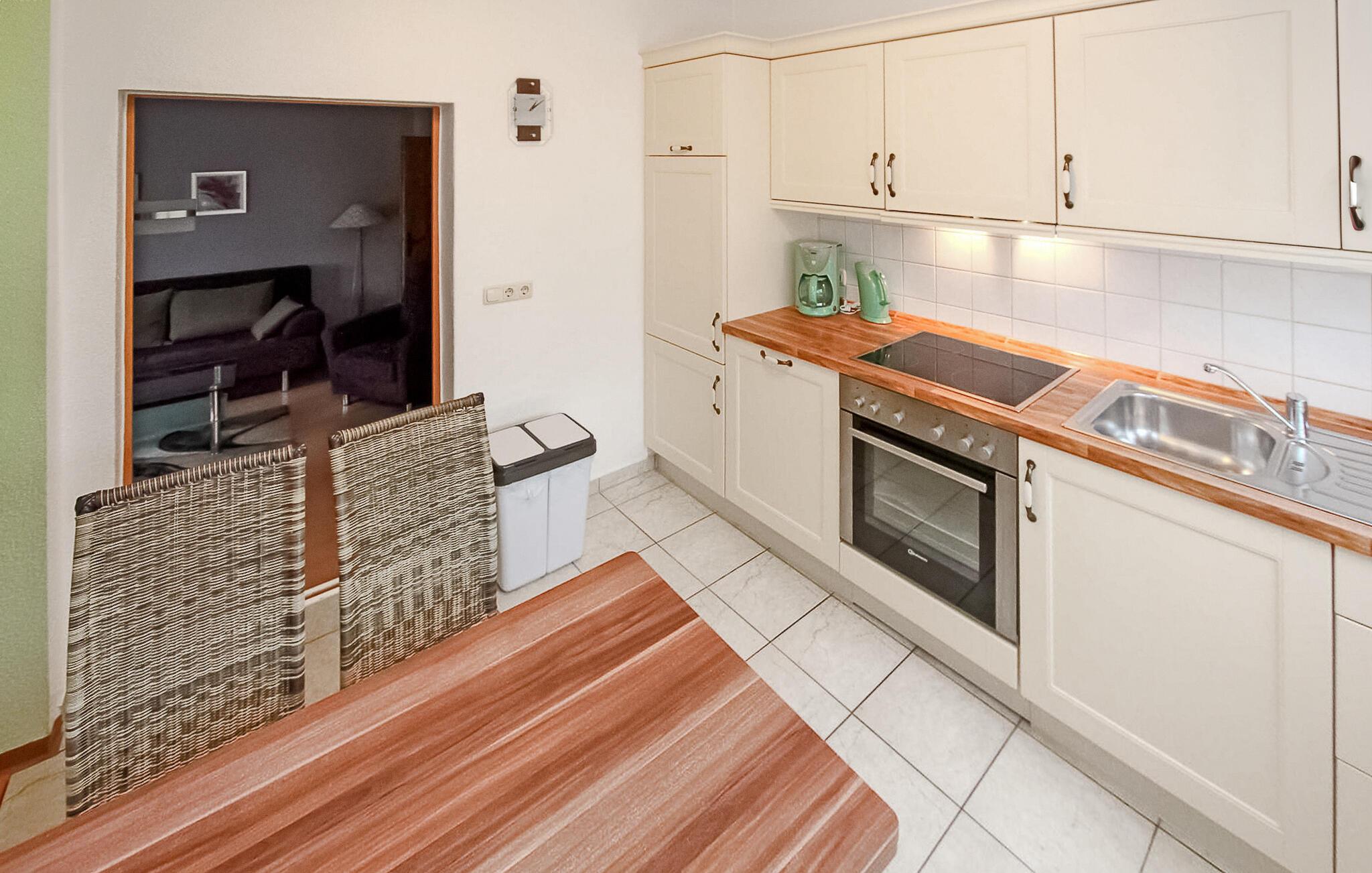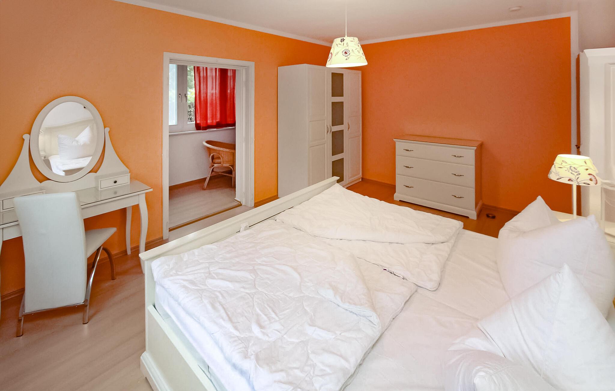 En af fire ferielejligheder i en villa bygget i typisk feriestedsarkitektur mellem Østersøstranden (ca. 100 m) og Schloonsee. Der er separat adgang til lejlighederne. Der er en gratis parkeringsplads (trang) til rådighed for hver boligenhed. Når de er fyldte og af pladshensyn, parkeres gæstebilerne efter hinanden, hvilket kræver koordinering mellem hinanden. En babyseng er tilgængelig efter aftale. Den samlede pris inkluderer vand- og energiforbrug samt slutrengøring. Du skal selv medbringe sengelinned og håndklæder. Cykler kan parkeres på ejendommen. Denne ferielejlighed har en størrelse på cirka 75 kvadratmeter og er særdeles velegnet til 4 personer. Det er muligt at tilføje en rejseseng gratis. Lejligheden i stueetagen blev fuldstændig moderniseret og nyindrettet i 2012. Det opfylder høje standarder og har separat adgang. Faciliteter med stue (polstret siddeområde, TV, radio), veranda med opholdsområde, 2 soveværelser (hver med 1 dobbeltseng, 1 x 1,60 m bred), køkken (spiseplads, tekøkken med el-komfur og opvaskemaskine), badeværelse med bruser og badekar, separat toilet, centralvarme. Badebyerne Bansin, Heringsdorf og Ahlbeck er de såkaldte kejserlige feriesteder på øen Usedom. De har brede sandstrande, moler med moler og er forbundet med hinanden af en promenade, der fører til Swinoujscie i Polen. I byerne er der leje af cykler, båd og strandstole, tennisbaner og et netværk af godt afmærkede vandrestier. Et moderne vandland, Ostseetherme, ligger centralt mellem Heringsdorf og Ahlbeck. Grænseovergangen til Polen kan nås fra Ahlbeck på få minutter.