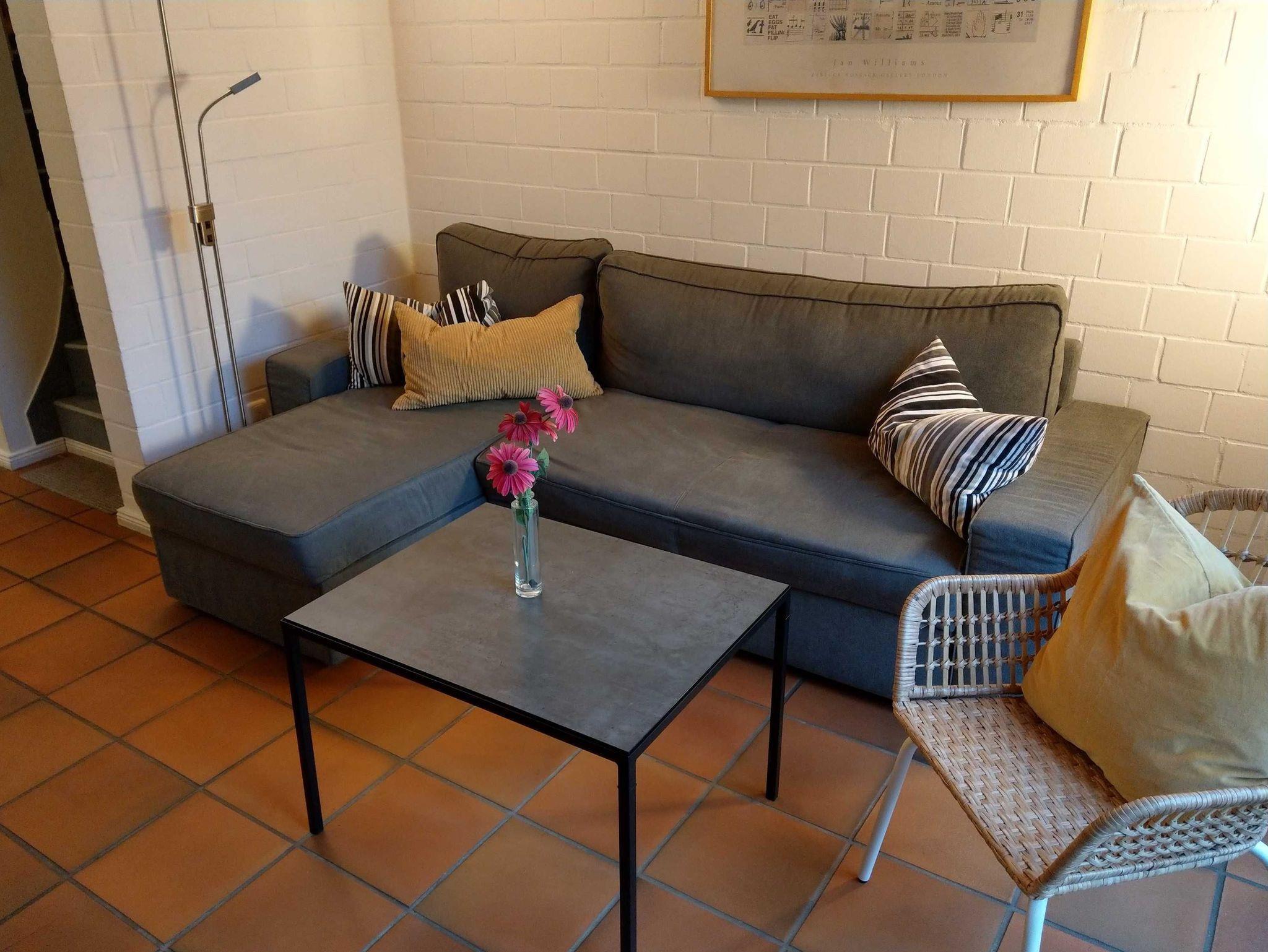 Haus Wiebke ist das fünfte Reihenhaus und liegt damit fast ganz hinten auf dem Grundstück. Im Erdgeschoss befindet sich das Wohnzimmer mit Kaminofen und Zugang zur Terrasse, die vollausgestatte Küchenzeile mit Geschirrspüler, Backofen und Mikrowelle. Der Essplatz bietet Platz für 6 Personen. Auf der Terrasse - Süd-West - darf geraucht und gegrillt werden.
