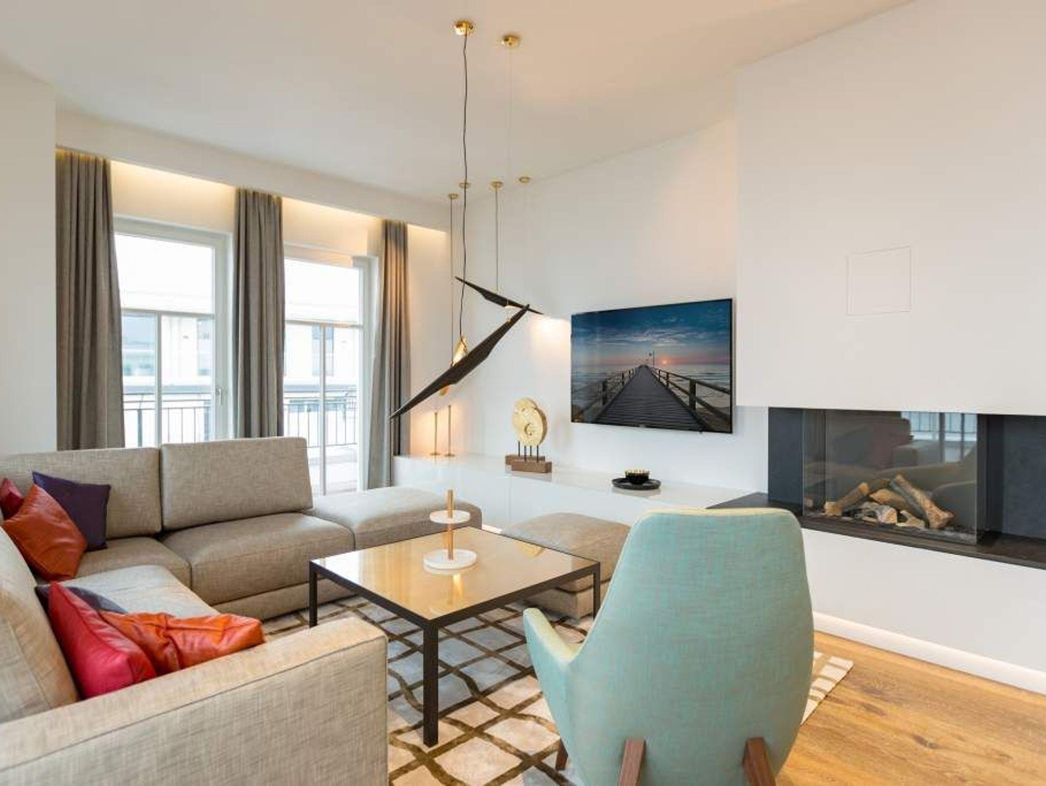 Drei Schlafzimmer, ein riesiger Wohnbereich und eine Terrasse, die den Blick grenzenlos über das Ostseeblau schweifen lässt ? näher dran am Paradies geht nicht als hier im Penthouse Waterfront in der 4. Etage. Auf den 170 Quadratmetern wird der Ostsee-Besuch für bis zu acht Personen (6 Erwachsene [&] 2 Kleinkinder im Kinderreisebett) zu einer luxuriösen Entspannungsauszeit. Großzügigkeit, designte Eleganz und moderner Wohn-Komfort zeichnen dieses Appartement der Sonderklasse aus. Hier ist alles ein wenig weitläufiger, größer, schöner als an anderen Orten. Der Blick von der 171 Quadratmeter großen Dachterrasse über die Ostsee ist gigantisch. Fühlen Sie sich wie eine Möwe, die aus luftiger Höhe auf das Glitzern des Morgenmeeres hinunter schaut. Fühlen Sie Freiheit. Und atmen Sie tief durch. Romantischer kann man einen Morgen nicht beginnen, als mit einem Kaffee in der Hand dem Sonnenaufgang zuzuschauen. Glutrot taucht die Sonne im Sommer aus der Ostsee auf und wirft dabei tausende Diamanten auf die Wellen. Exklusives Wohndesign erwartet Sie im Wohn-Esszimmer sowie in allen anderen Räumen. Bis ins Detail hinein ist das Raumkonzept stimmig und harmonisch. Edles Parkett, natürliche Materialien, hochwertige Möbel ? dieses Penthouse ist etwas für diejenigen, die sich einmal wieder etwas richtig Gutes gönnen wollen. Entspannen auf der riesigen Sofalandschaft oder in einem der urig bequemen Nordic Design-Sessel vor dem gläsernen Gas-Kamin, der auf Knopfdruck eine kuschelig warme Atmosphäre zaubern kann, oder vor dem großen Flat-TV: Was will man mehr! Die Bose-Anlage hat eine Bluetooth-Funktion. Das WLAN ist im Beachhouse kostenfrei. Ein wunderschöner, großer Essplatz mit einem Holztisch lädt zum ausgiebigen Schlemmen ein. Die zum Wohnzimmer hin offene Küche ist eine stylische Wohlfühlzone für alle, die gerne kochen. Hochwertige Markengeräte, edles Geschirr ? alles ist vom Feinsten und hilft dabei, das Zubereiten sämtlicher Speisen zu erleichtern. Und immer im Blick: Die Ostsee. Durch die bodentiefen Fenster, ist sie fast aus jeder Winkel des Appartements heraus zu sehen. Jedes der drei Schlafzimmer hat sein eigenes Bad mit Regendusche, Waschtisch und WC. Und dabei ist jedes Schlafzimmer anders gestaltet. Eine moderne Wandgestaltung[nbsp][nbsp]macht das Wohnen luxuriös. In den Boxspringdoppelbetten (1,80 m 2,00 m) wird die Nacht zum Vergnügen. Von jedem Schlafzimmer aus haben Sie einen Zugang zur Sonnenterrasse. Gleich nach dem Aufwachen die frische Ostseeluft zu genießen, das ist wahrer Luxus. Alle drei Räume sind zudem mit jeweils einem Flat-TV und einem geräumigen Schrank ausgestattet. In der Finnischen Sauna lässt es sich herrlich entspannen. In einem kleinen Hauswirtschaftsraum können Sie im Wasch-Trockner Ihre Wäsche waschen. Entspannung pur heißt für uns auch, dass bei Ihrer Anreise die Betten bezogen sind und ausreichend Handtücher für Sie bereitliegen. Das Penthouse verfügt über zwei Stellplätze, Nr. 28 in der Tiefgarage.