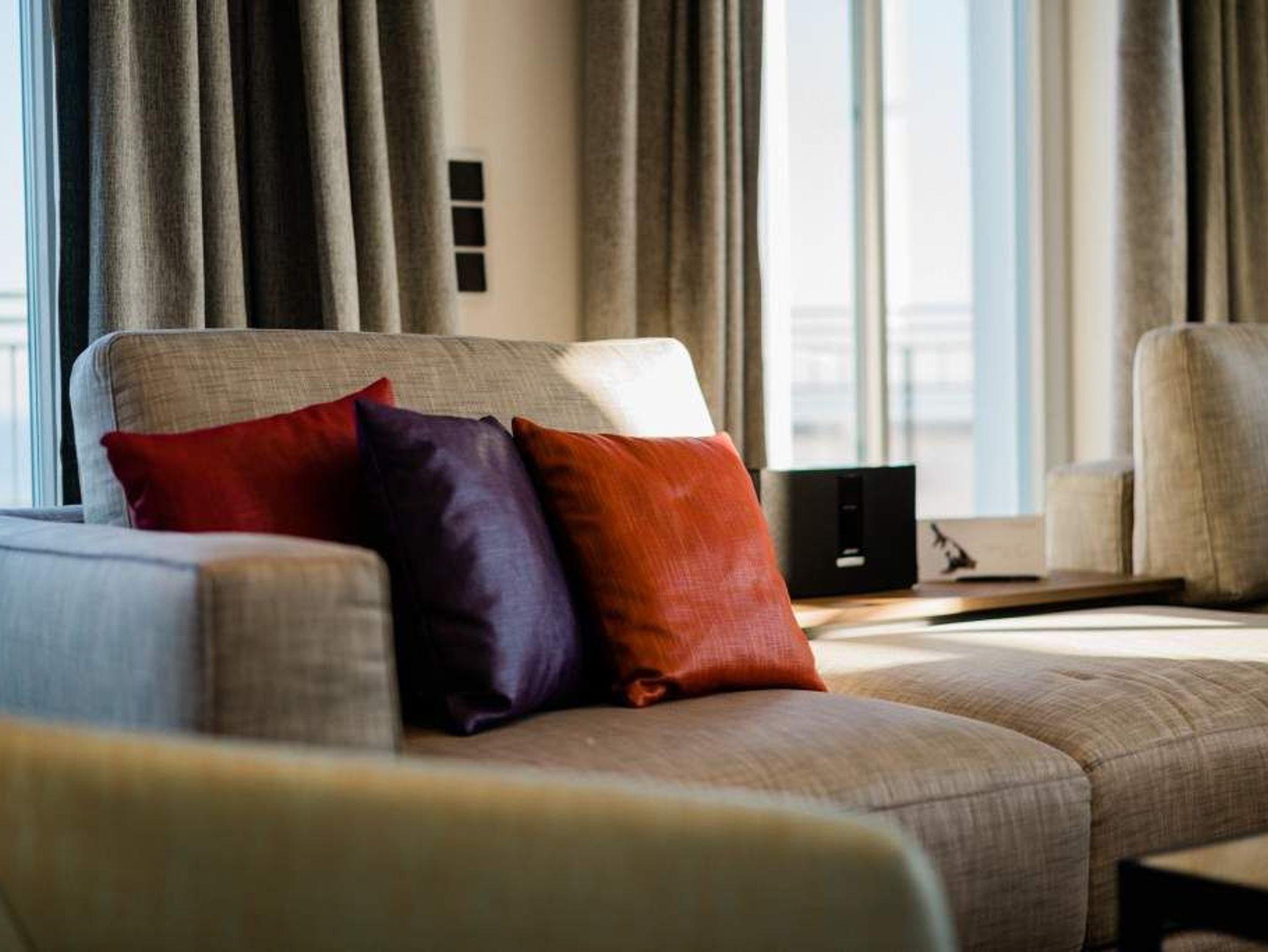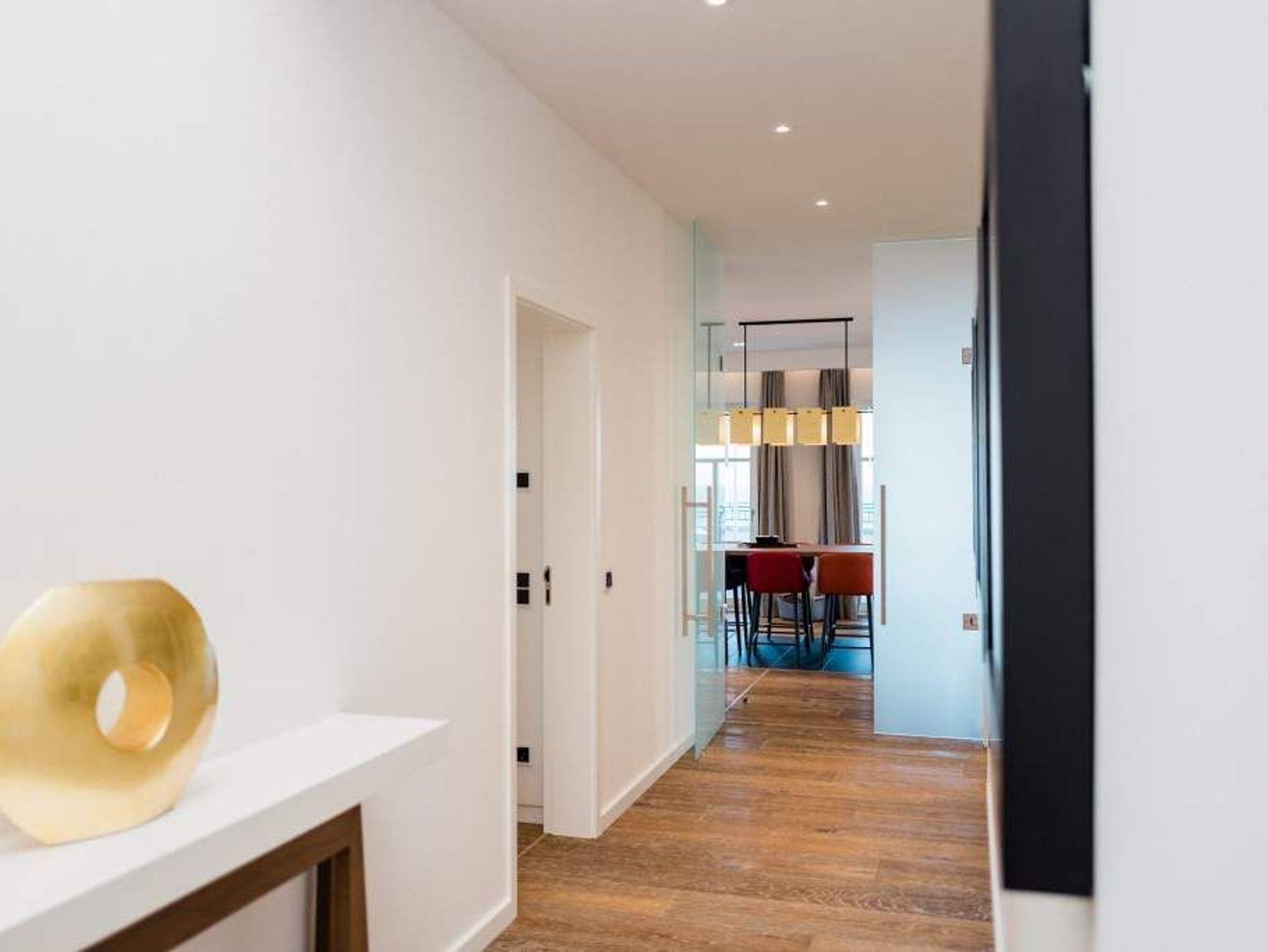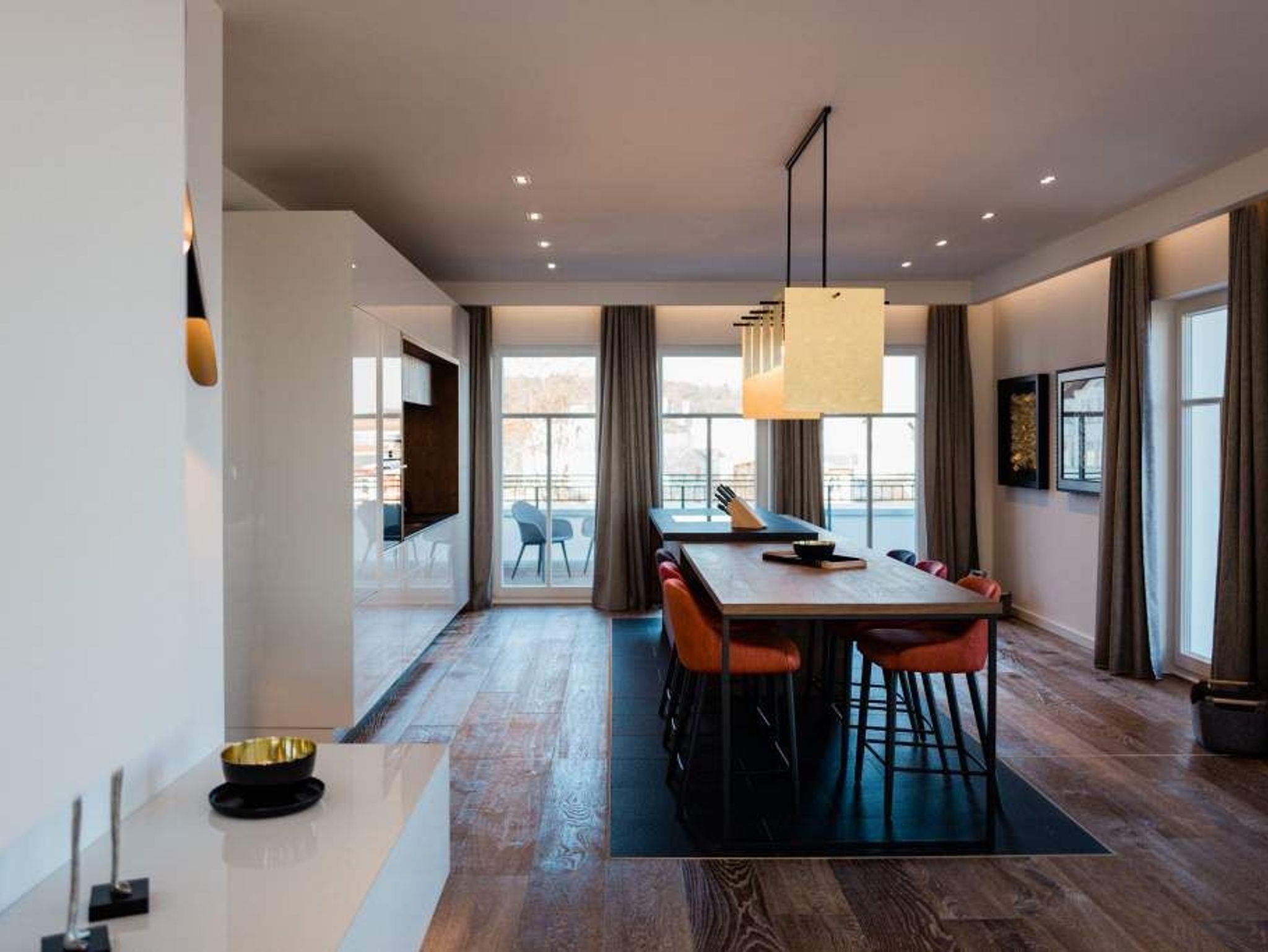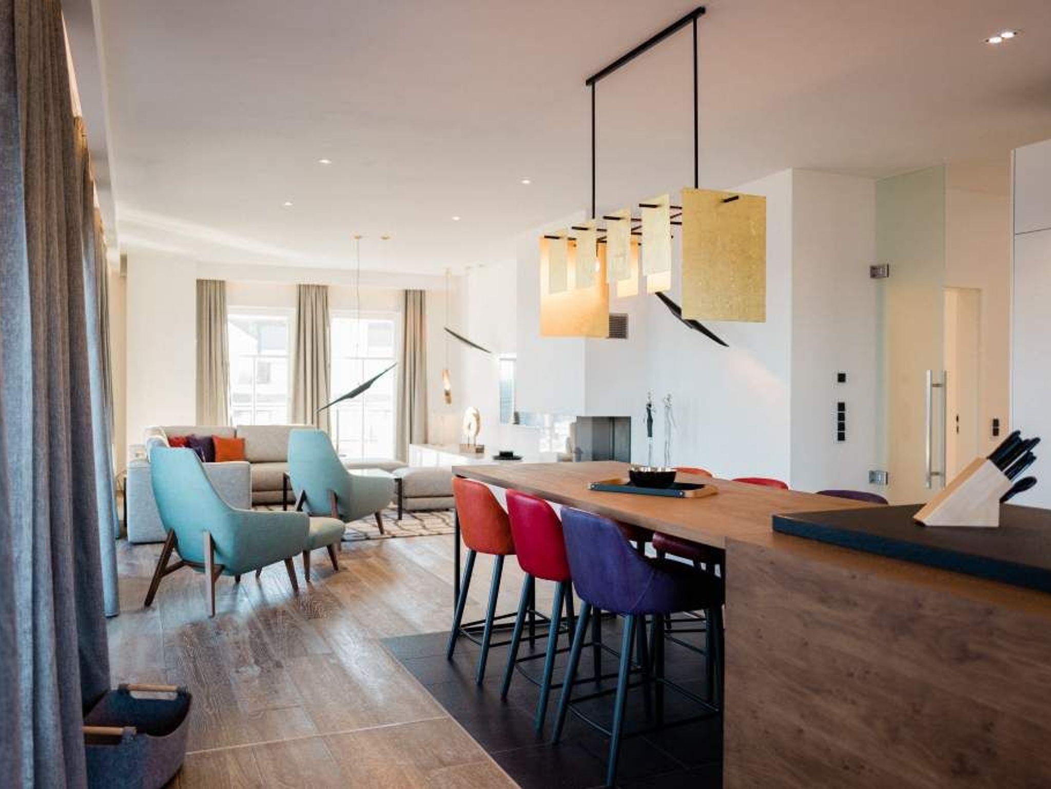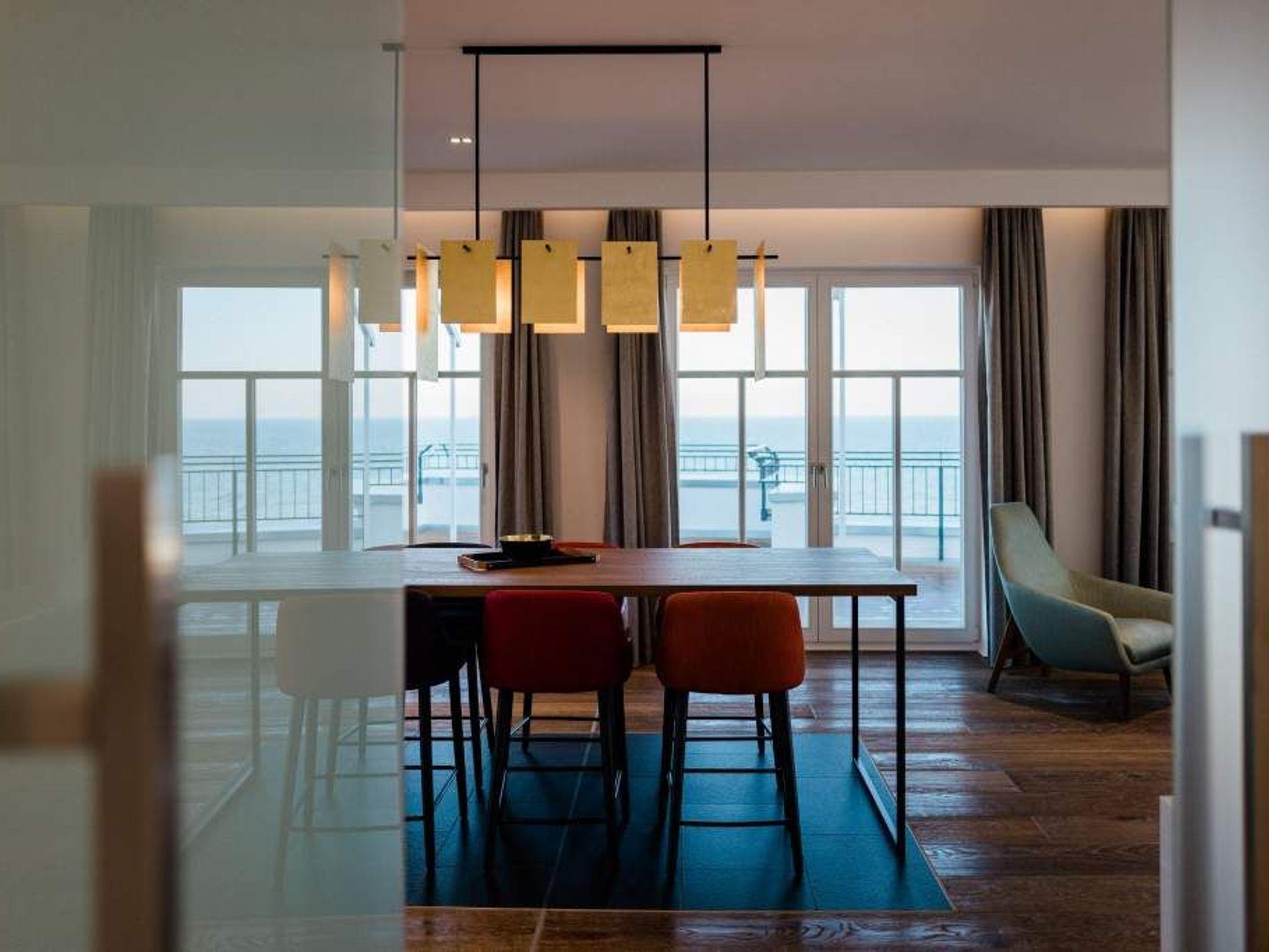 Drei Schlafzimmer, ein riesiger Wohnbereich und eine Terrasse, die den Blick grenzenlos über das Ostseeblau schweifen lässt näher dran am Paradies geht nicht als hier im Penthouse Waterfront in der 4. Etage. Auf den 170 Quadratmetern wird der Ostsee-Besuch für bis zu acht Personen (6 Erwachsene [&] 2 Kleinkinder im Kinderreisebett) zu einer luxuriösen Entspannungsauszeit. Großzügigkeit, designte Eleganz und moderner Wohn-Komfort zeichnen dieses Appartement der Sonderklasse aus. Hier ist alles ein wenig weitläufiger, größer, schöner als an anderen Orten. Der Blick von der 171 Quadratmeter großen Dachterrasse über die Ostsee ist gigantisch. Fühlen Sie sich wie eine Möwe, die aus luftiger Höhe auf das Glitzern des Morgenmeeres hinunter schaut. Fühlen Sie Freiheit. Und atmen Sie tief durch. Romantischer kann man einen Morgen nicht beginnen, als mit einem Kaffee in der Hand dem Sonnenaufgang zuzuschauen. Glutrot taucht die Sonne im Sommer aus der Ostsee auf und wirft dabei tausende Diamanten auf die Wellen. Exklusives Wohndesign erwartet Sie im Wohn-Esszimmer sowie in allen anderen Räumen. Bis ins Detail hinein ist das Raumkonzept stimmig und harmonisch. Edles Parkett, natürliche Materialien, hochwertige Möbel dieses Penthouse ist etwas für diejenigen, die sich einmal wieder etwas richtig Gutes gönnen wollen. Entspannen auf der riesigen Sofalandschaft oder in einem der urig bequemen Nordic Design-Sessel vor dem gläsernen Gas-Kamin, der auf Knopfdruck eine kuschelig warme Atmosphäre zaubern kann, oder vor dem großen Flat-TV: Was will man mehr! Die Bose-Anlage hat eine Bluetooth-Funktion. Das WLAN ist im Beachhouse kostenfrei. Ein wunderschöner, großer Essplatz mit einem Holztisch lädt zum ausgiebigen Schlemmen ein. Die zum Wohnzimmer hin offene Küche ist eine stylische Wohlfühlzone für alle, die gerne kochen. Hochwertige Markengeräte, edles Geschirr alles ist vom Feinsten und hilft dabei, das Zubereiten sämtlicher Speisen zu erleichtern. Und immer im Blick: Die Ostsee. Durch die bodentiefen Fenster, ist sie fast aus jeder Winkel des Appartements heraus zu sehen. Jedes der drei Schlafzimmer hat sein eigenes Bad mit Regendusche, Waschtisch und WC. Und dabei ist jedes Schlafzimmer anders gestaltet. Eine moderne Wandgestaltung[nbsp][nbsp]macht das Wohnen luxuriös. In den Boxspringdoppelbetten (1,80 m 2,00 m) wird die Nacht zum Vergnügen. Von jedem Schlafzimmer aus haben Sie einen Zugang zur Sonnenterrasse. Gleich nach dem Aufwachen die frische Ostseeluft zu genießen, das ist wahrer Luxus. Alle drei Räume sind zudem mit jeweils einem Flat-TV und einem geräumigen Schrank ausgestattet. In der Finnischen Sauna lässt es sich herrlich entspannen. In einem kleinen Hauswirtschaftsraum können Sie im Wasch-Trockner Ihre Wäsche waschen. Entspannung pur heißt für uns auch, dass bei Ihrer Anreise die Betten bezogen sind und ausreichend Handtücher für Sie bereitliegen. Das Penthouse verfügt über zwei Stellplätze, Nr. 28 in der Tiefgarage.
