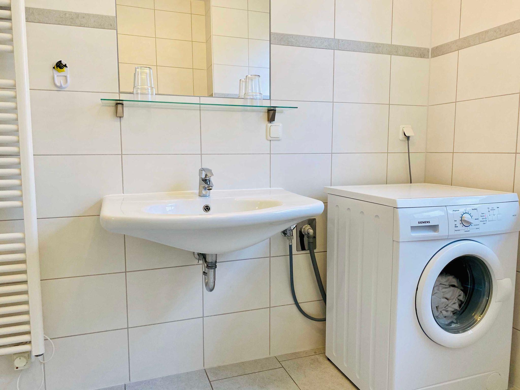 Zur Wohnung gehören zwei große Schlafzimmer mit Doppelbetten. Es gibt 2 Badezimmer mit Dusche oder Badewanne und einer Waschmaschine.