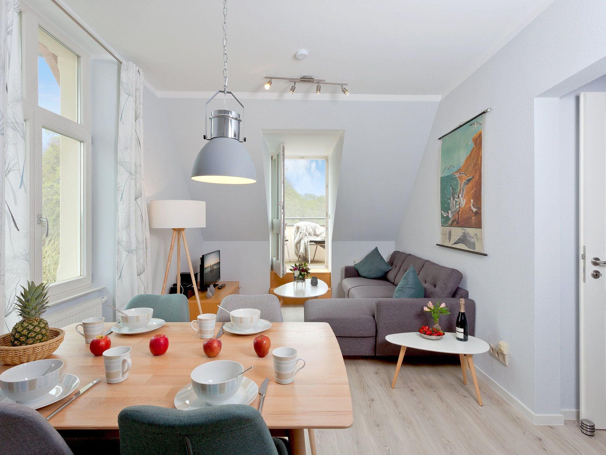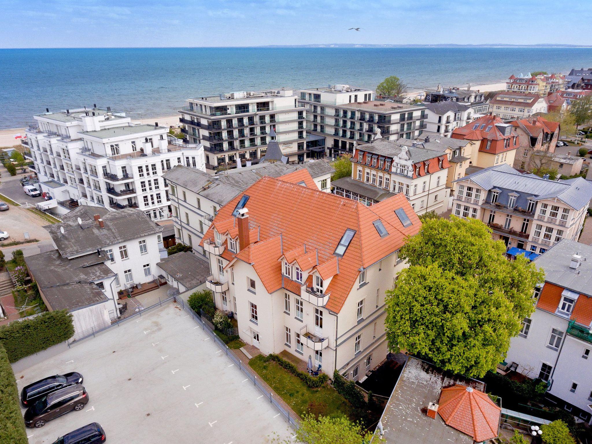 Kostenfreier WLAN-Zugang, ein Fahrradabstellraum sowie ein Stellplatz direkt hinter dem Haus runden die Annehmlichkeiten dieses Appartements ab. Waschmaschine und Trockner können gern gegen Gebühr genutzt werden. Helle Wände, ein heller warmer Fußboden in Holzoptik wird sich mit Naturholzmöbeln paart sich mit nordischem Design. Das Appartement liegt sehr ruhig auf der Rückseite der Villa. Vom Balkon aus hat man einen verlockenden Blick in den Buchenpark und zugleich kann man die Ostsee zwischen den Häusern erblicken.