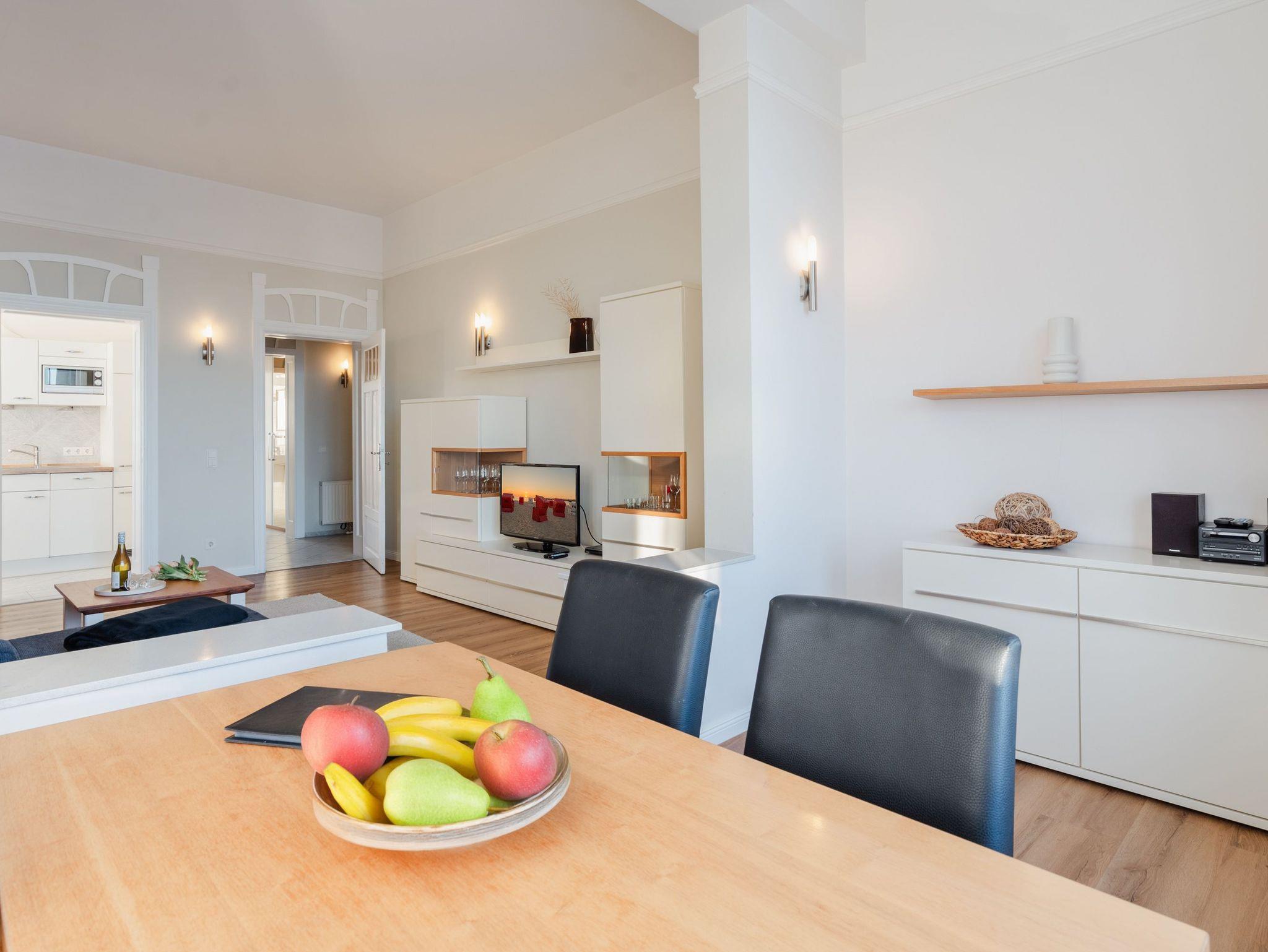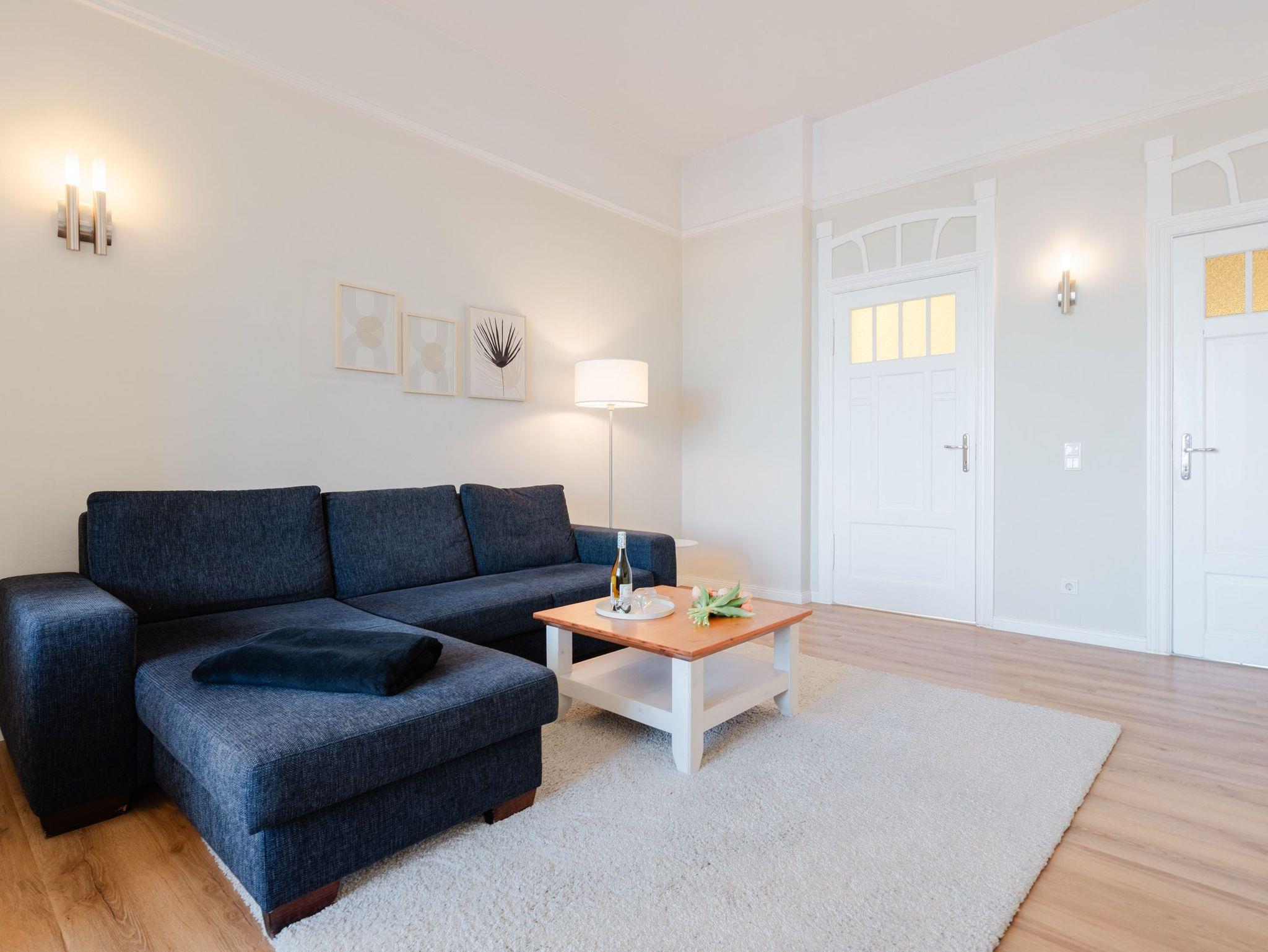 Traumhafter Meerblick, erste Reihe, 4-Sterne-Komfort-Wohnungen. Gibt es nicht? Doch! In der Villa Dora, eine stilvolle Villa der Kaiserzeit. Hier wird Ihr Urlaub zu einem besonderen Erlebnis, denn die Ostsee ist quasi vor der Tür. Komfortabel und ansprechend gestaltete Domizile, vom 1-Raum-Appartement mit verglaster Veranda bis hin zum Dachstudio mit 100 qm, bieten Ihnen zu zweit oder in Familie erholsame Urlaubstage. Für jedes Appartement in der Villa Dora steht ein Stellplatz zur Verfügung. Sie haben die Möglichkeit Ihre Fahrräder in einem separaten Raum unterzustellen. Eine Waschmaschine und ein Trockner im Haus sind gegen eine Gebühr nutzbar. Das WLAN-Netz steht kostenfrei zur Verfügung.