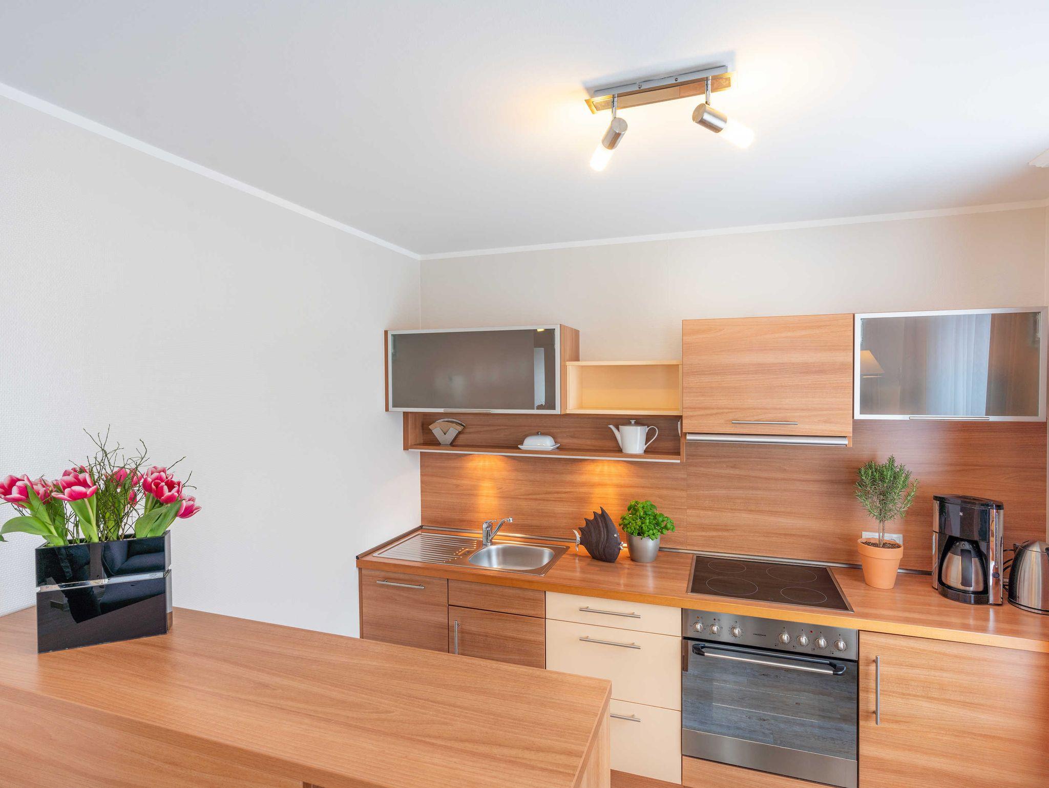 Im Haus befinden sich 2- und 3- Zimmer Appartement von 40 - 85 qm. Einige der Wohnungen besitzen einen Kamin bzw. eigene Sauna. Im Haus gibt es eine behindertengerechte 3- Zimmerwohnung mit 75qm und zwei Bädern. Die Wohnungen sind mit großen Einbauküchen ausgestattet. Jede Wohnung hat eine große Terrasse bzw. einen Balkon. Ein KfZ-Stellplatz kann vor Ort angemietet werden bzw. steht im öffentlichem Bereich zur Verfügung.
