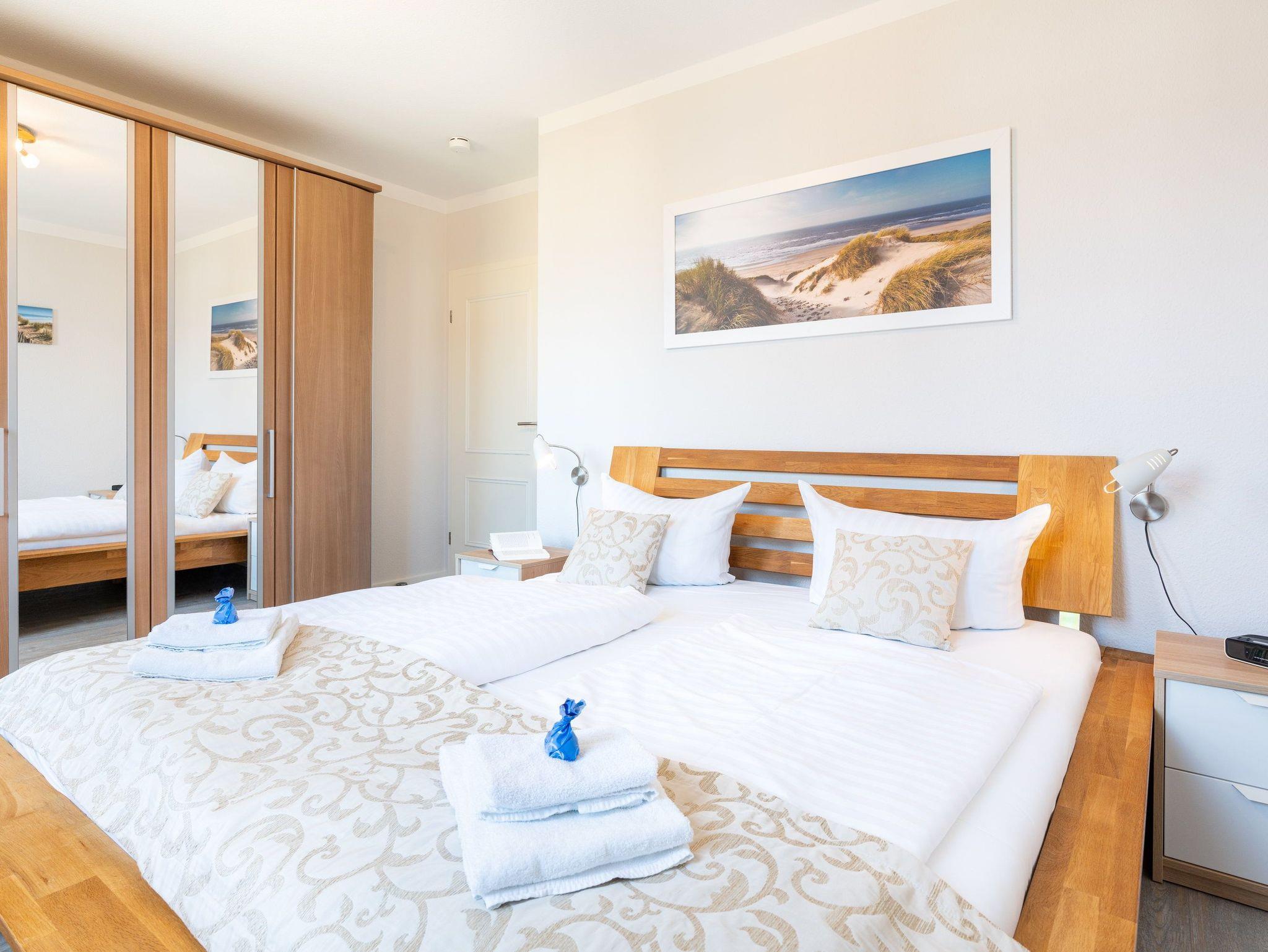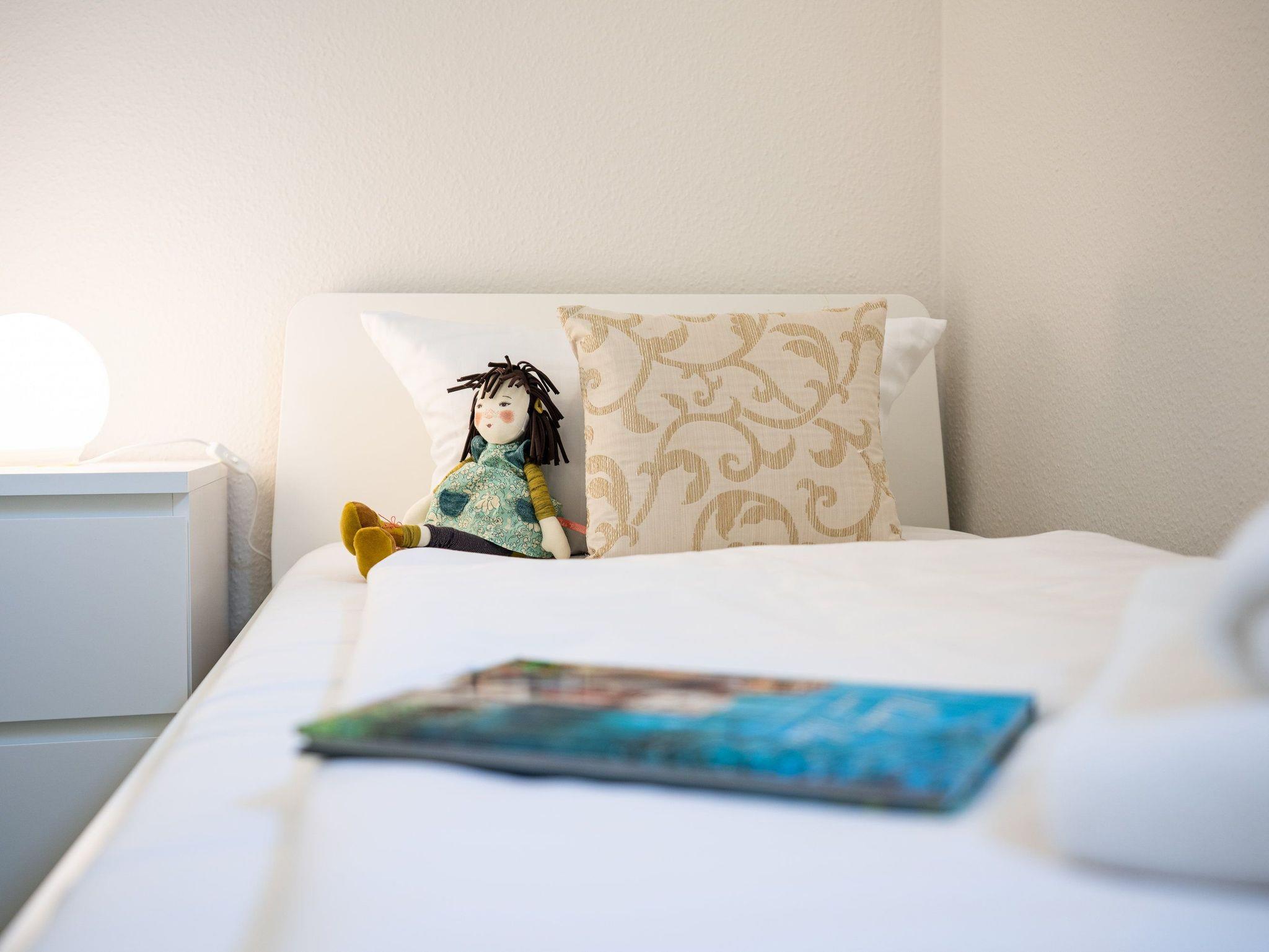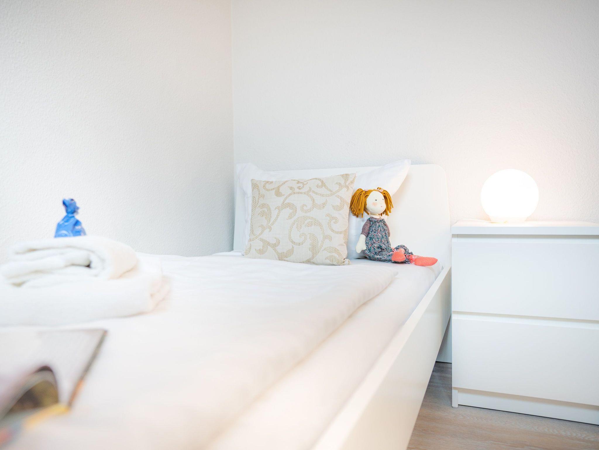 Auf dem angrenzenden Balkon Richtung Südwest können Sie die Seele so richtig baumeln und den Urlaubstag ausklingen lassen. Im ersten Schlafzimmer lädt ein bequemes Doppelbett (170 x 200cm / durchgehende Matratze) zur Nachtruhe ein. Auf dem Flat TV können Sie Ihre Lieblingsserien verfolgen. Das zweite Schlafzimmer ist mit zwei Einzelbetten (je 90 x 200cm) ausgestattet. Ein Babyreisebettchen und ein Hochstuhl gehören zur Ausstattung des Appartements.