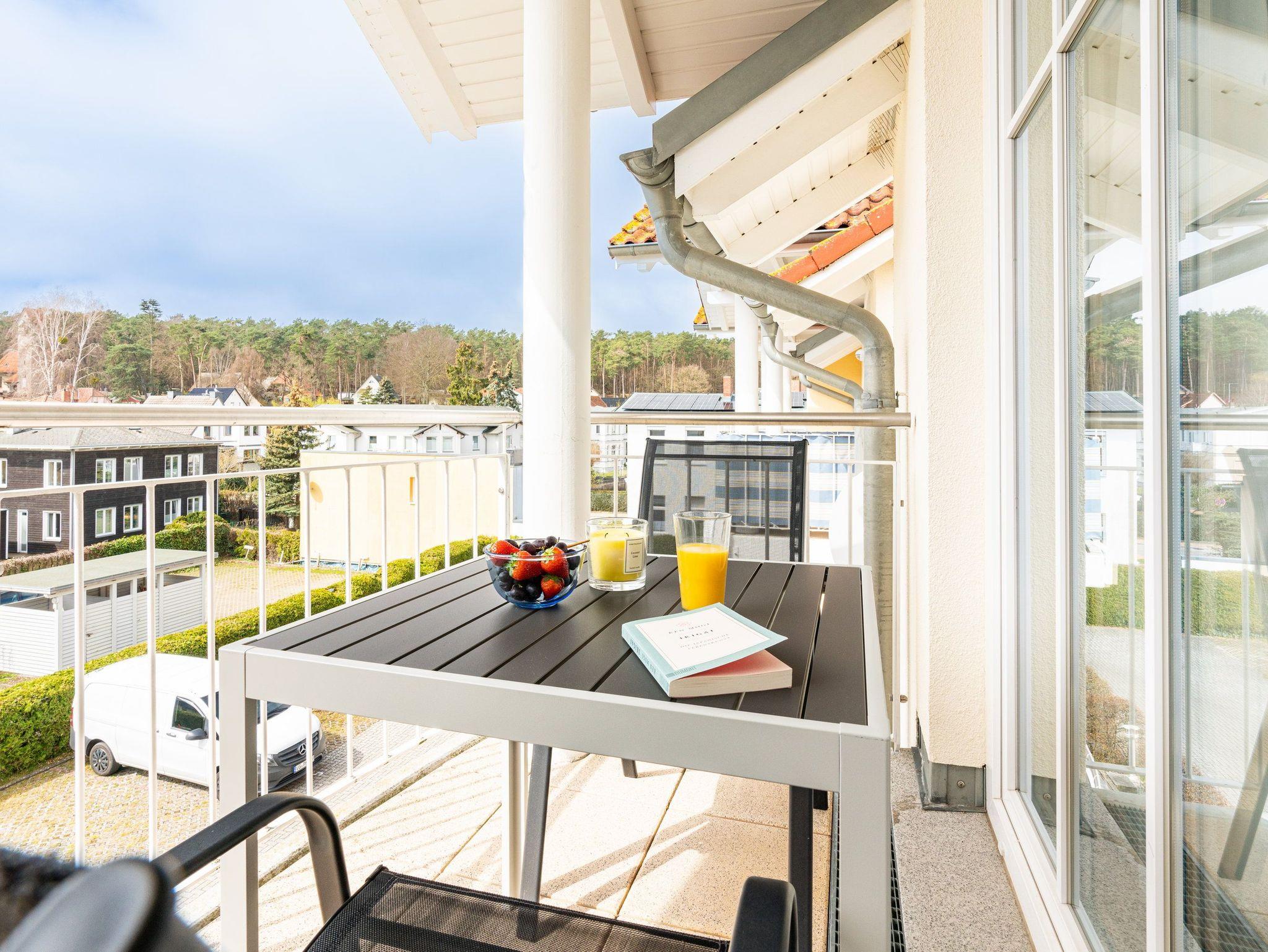 In dem 3-Raum-Appartement im Dachgeschoss können bis zu 4 Personen auf 62 Quadratmetern ihre erholsame Urlaubszeit gemeinsam verbringen. Der gemütliche Wohn-, Koch- und Essbereich ist in warmen Tönen gehalten. Die integrierte Küchenzeile bietet dank Geschirrspüler, Kühlschrank mit Gefrierfach, Backofen, Mikrowelle, Wasserkocher, Toaster, Kaffeemaschine und vielen Extras jeglichen Kochkomfort. Ein bequemes Sofa, ein Sessel, Flat TV sowie ein Esstisch für vier Personen laden zum Entspannen und geselligem Beisammensein ein.