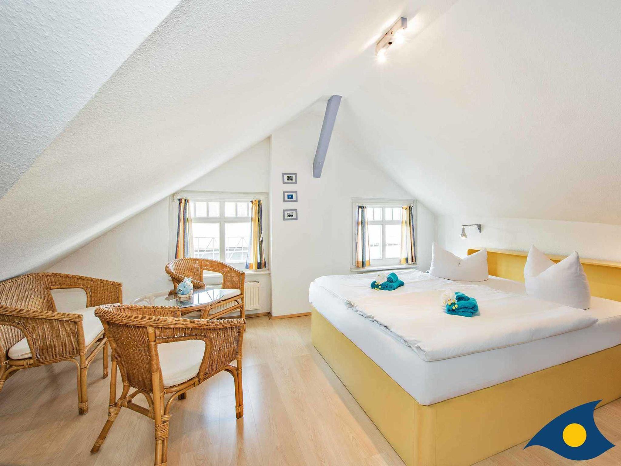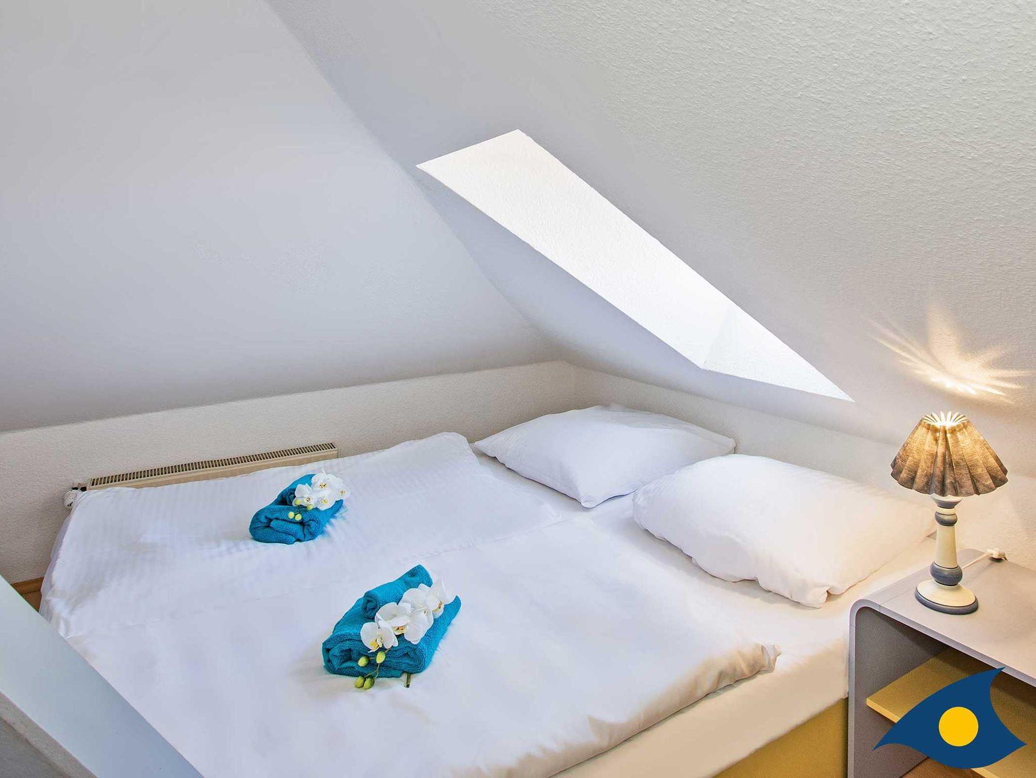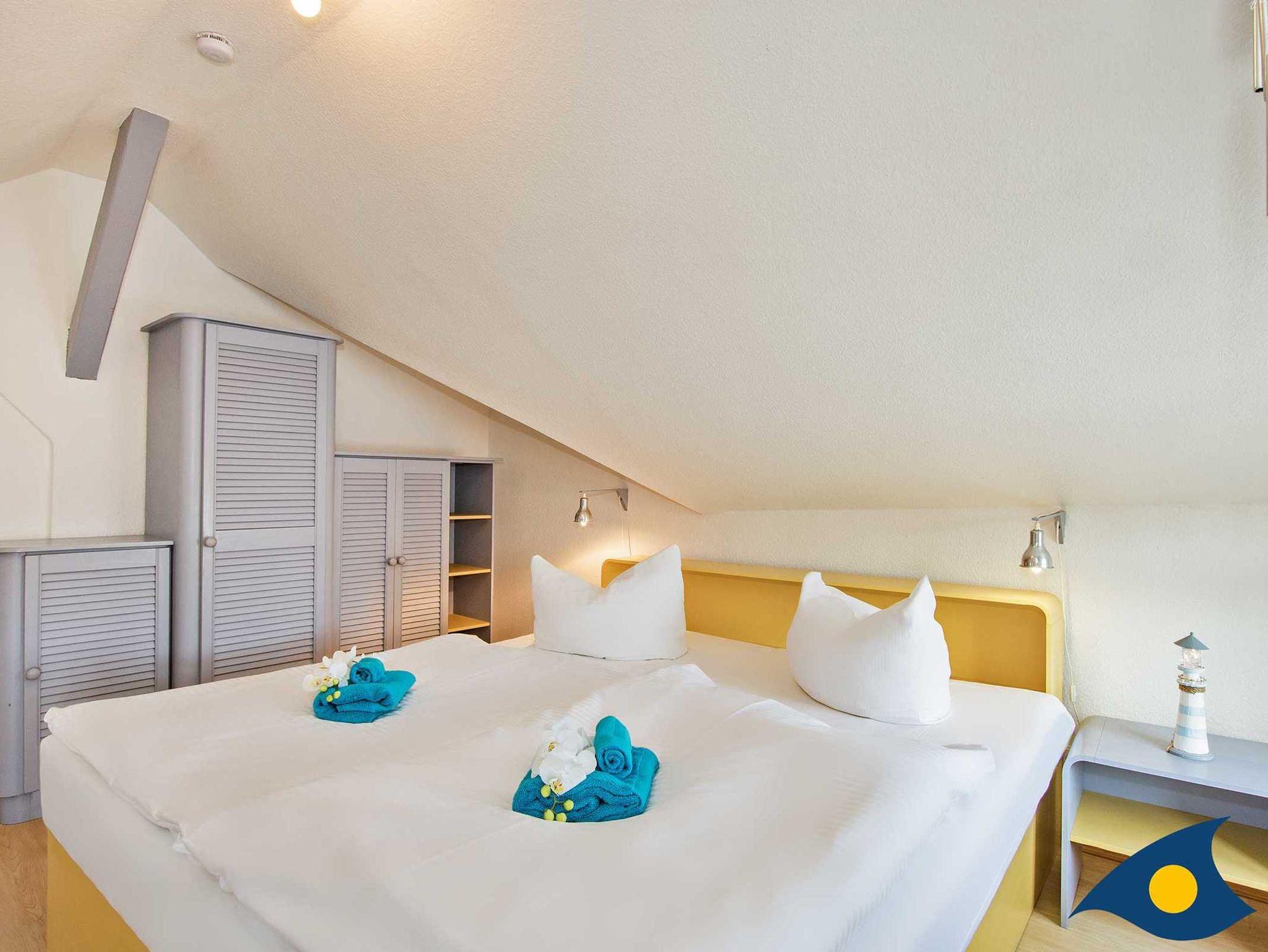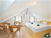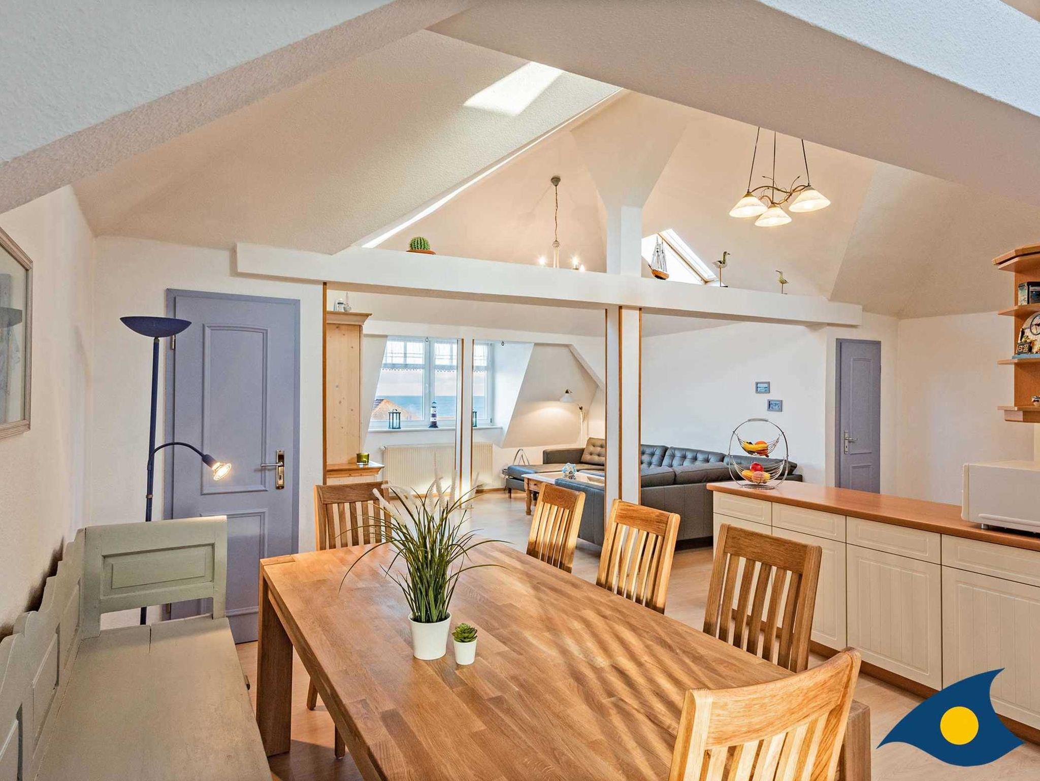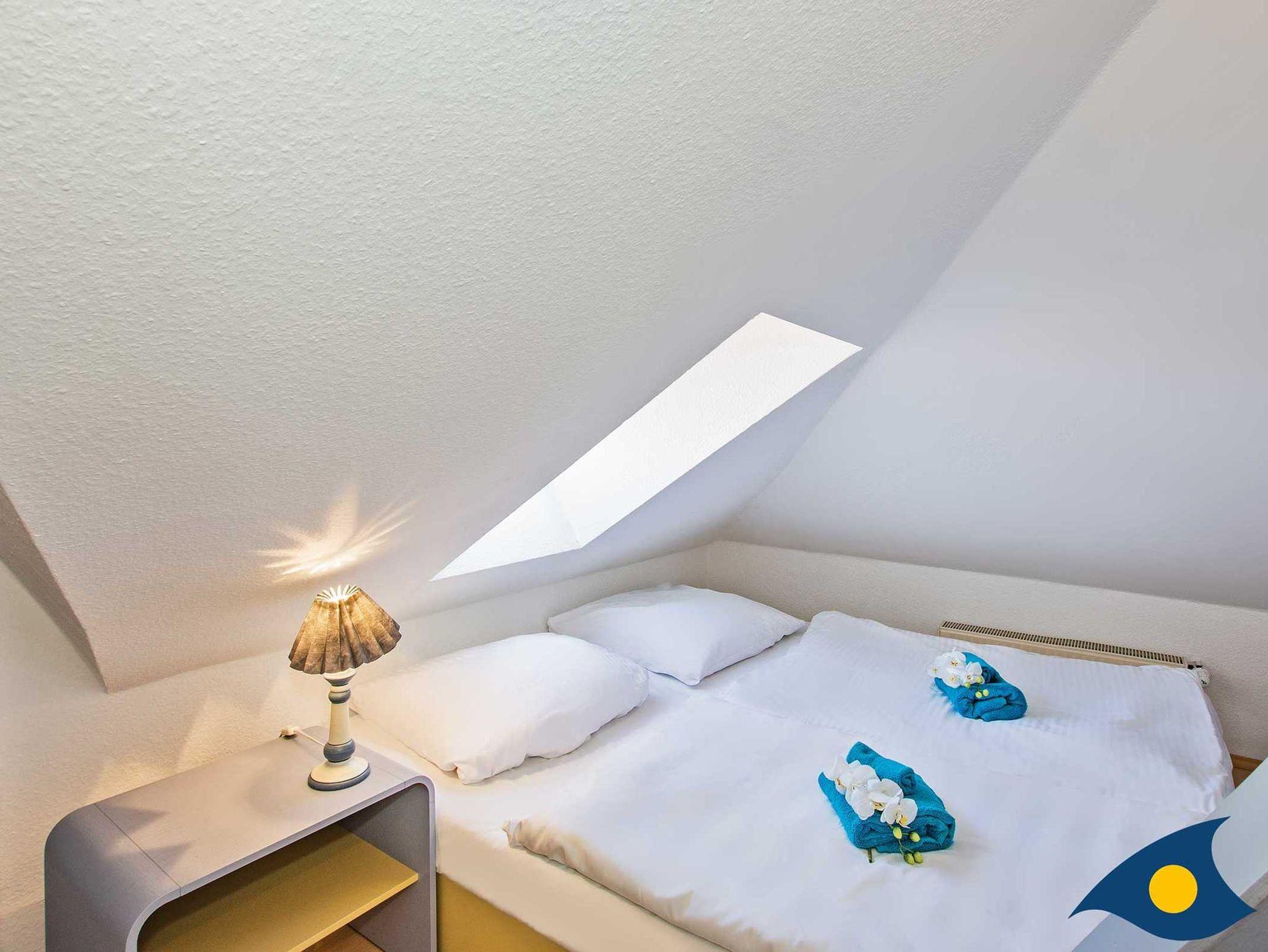 Dieses geräumige, modern und liebevoll eingerichtete Appartement im Dachgeschoss verfügt über 4 Schlafzimmer mit Doppelbetten (teilweise mit Dachschrägen) und 2 Bäder. Aus dem Wohnzimmerfenster können Sie einen herrlichen Blick auf die Ostsee genießen. Über die Treppe erreichen Sie die kleine Gallerie unterhalb der Wohnung mit Blick zum Wald. Zum Appartement gehören zwei kostenfreie PKW-Stellplätze auf dem Grundstück.