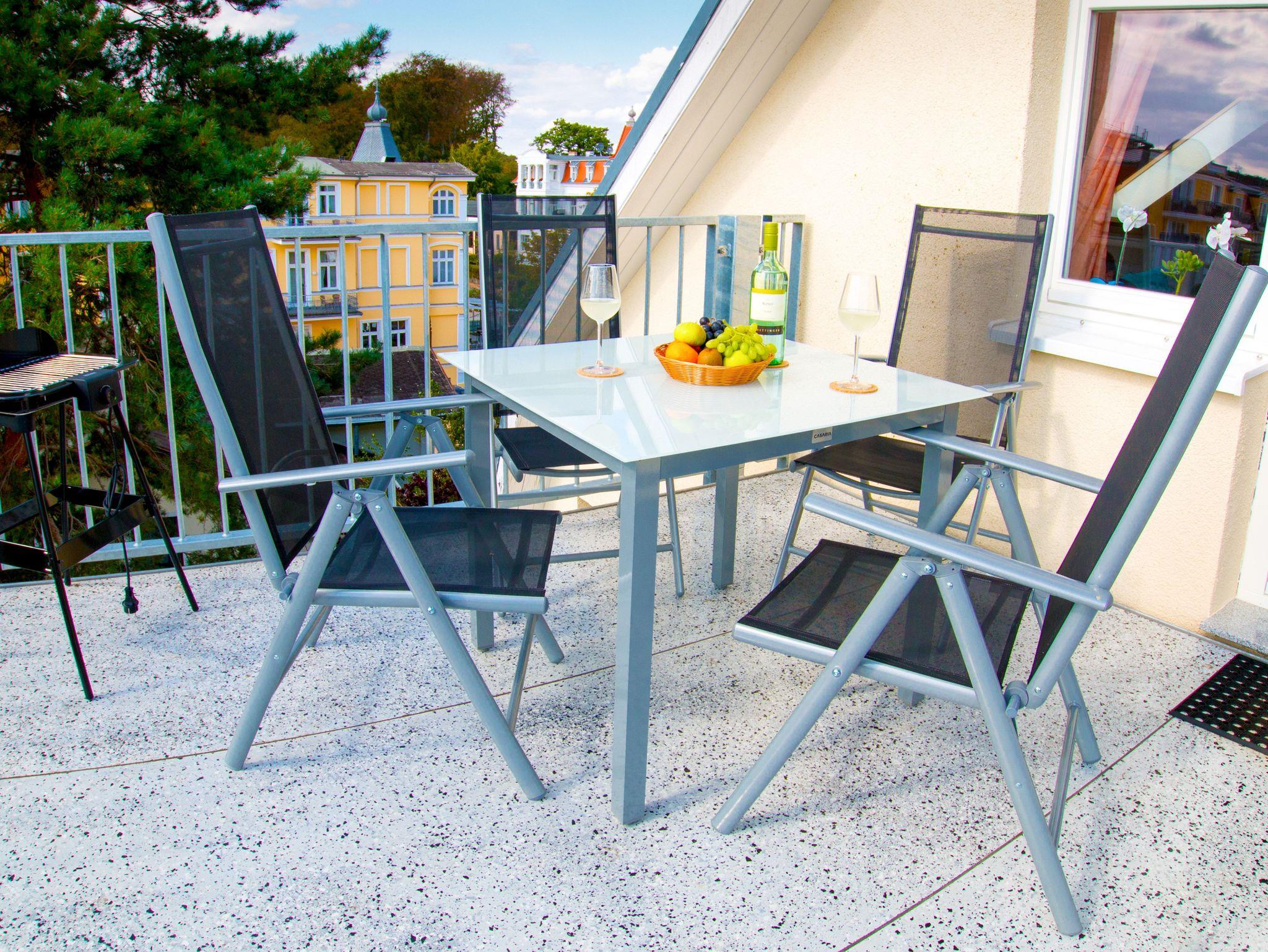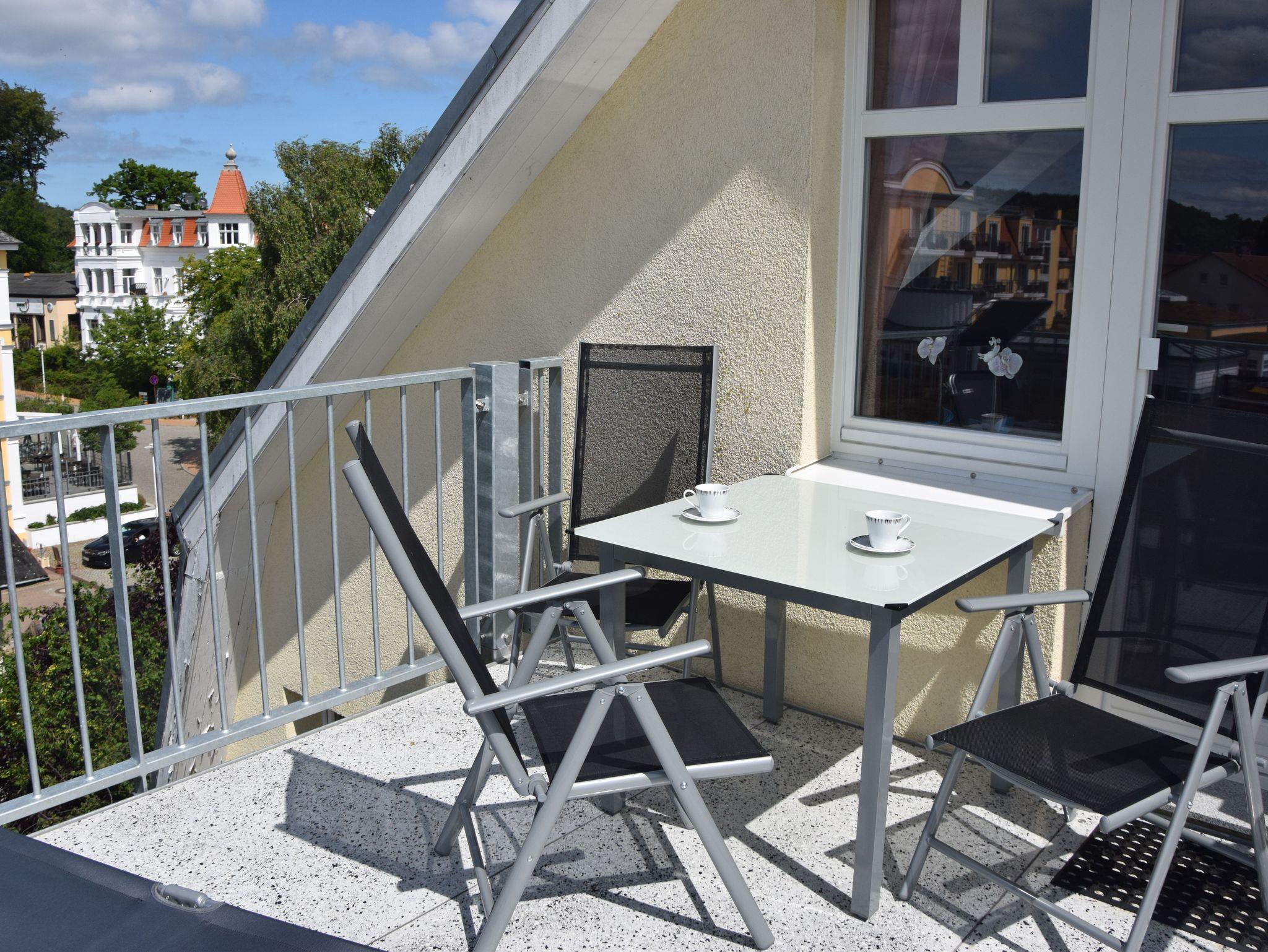 Die Ferienwohnung 10 befindet sich im Dachgeschoss der Villa Malve und bietet einen wunderschönen Blick auf die Strandpromenade und über die Dächer von Bansin.