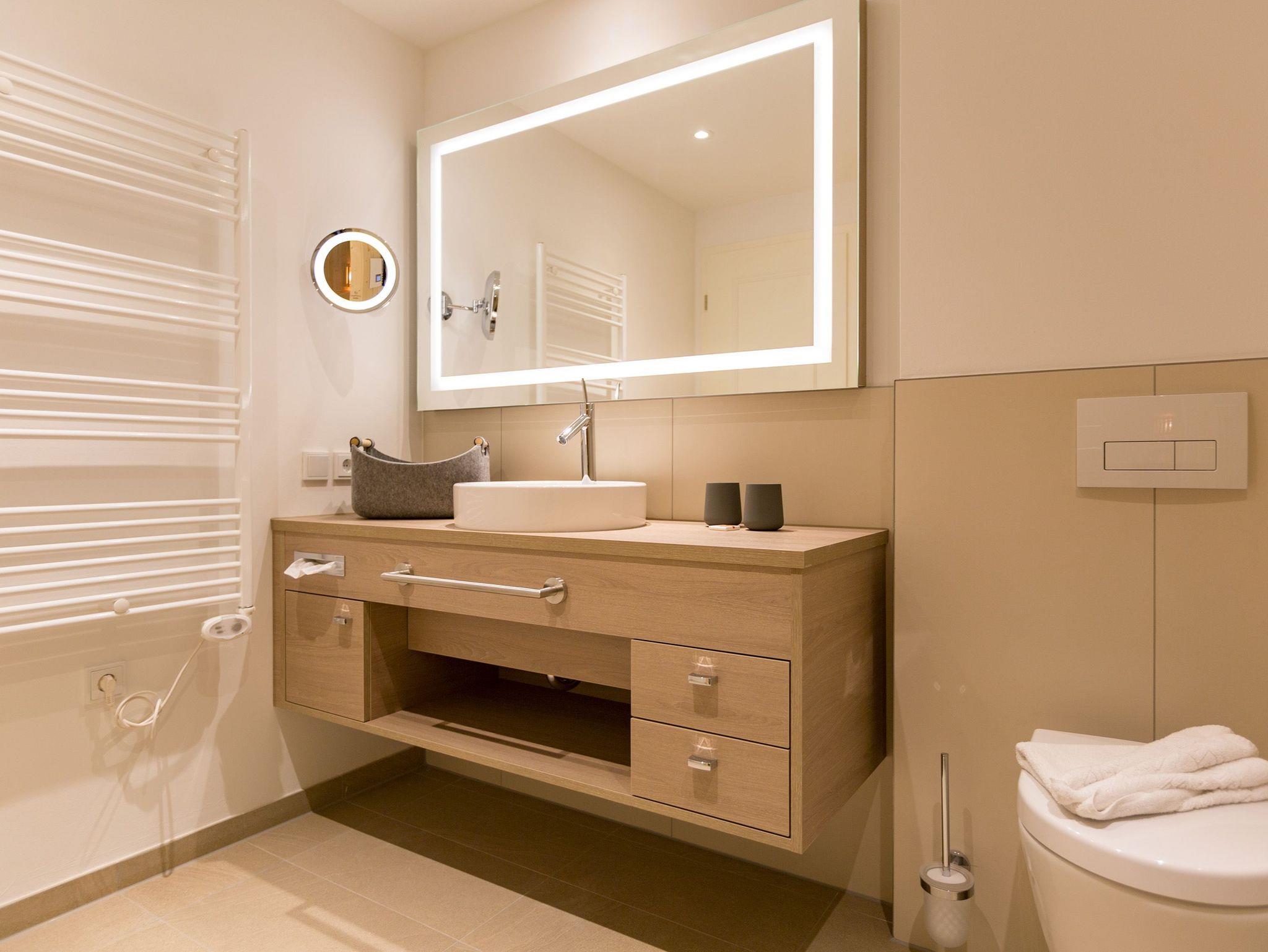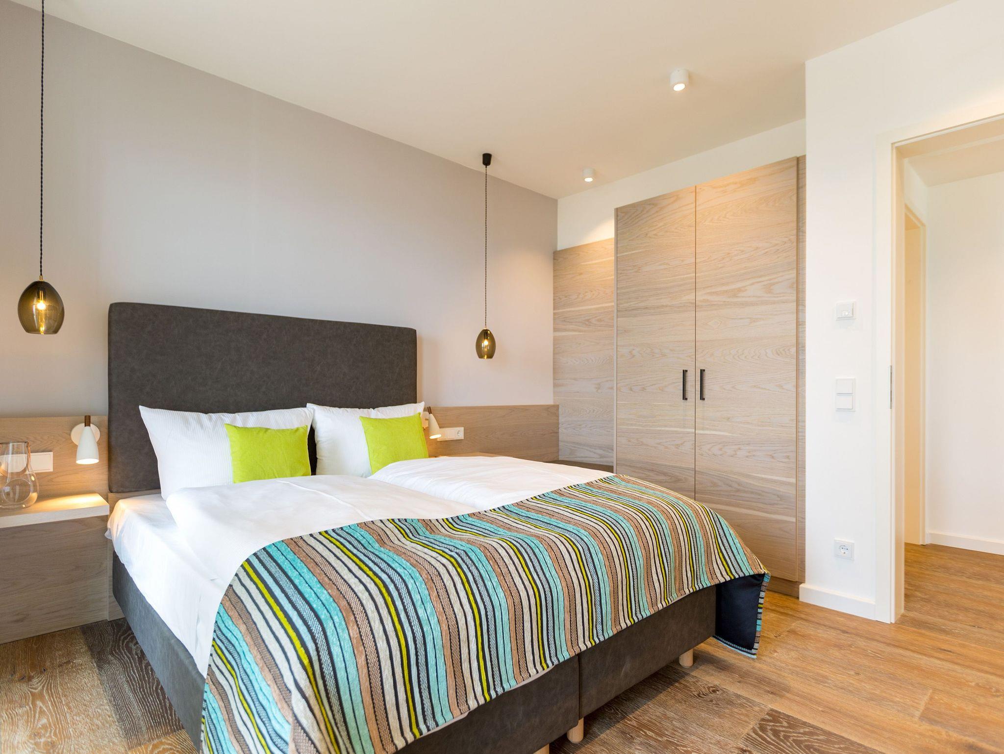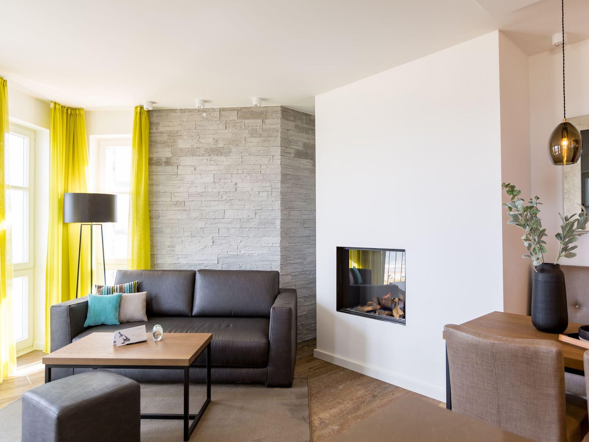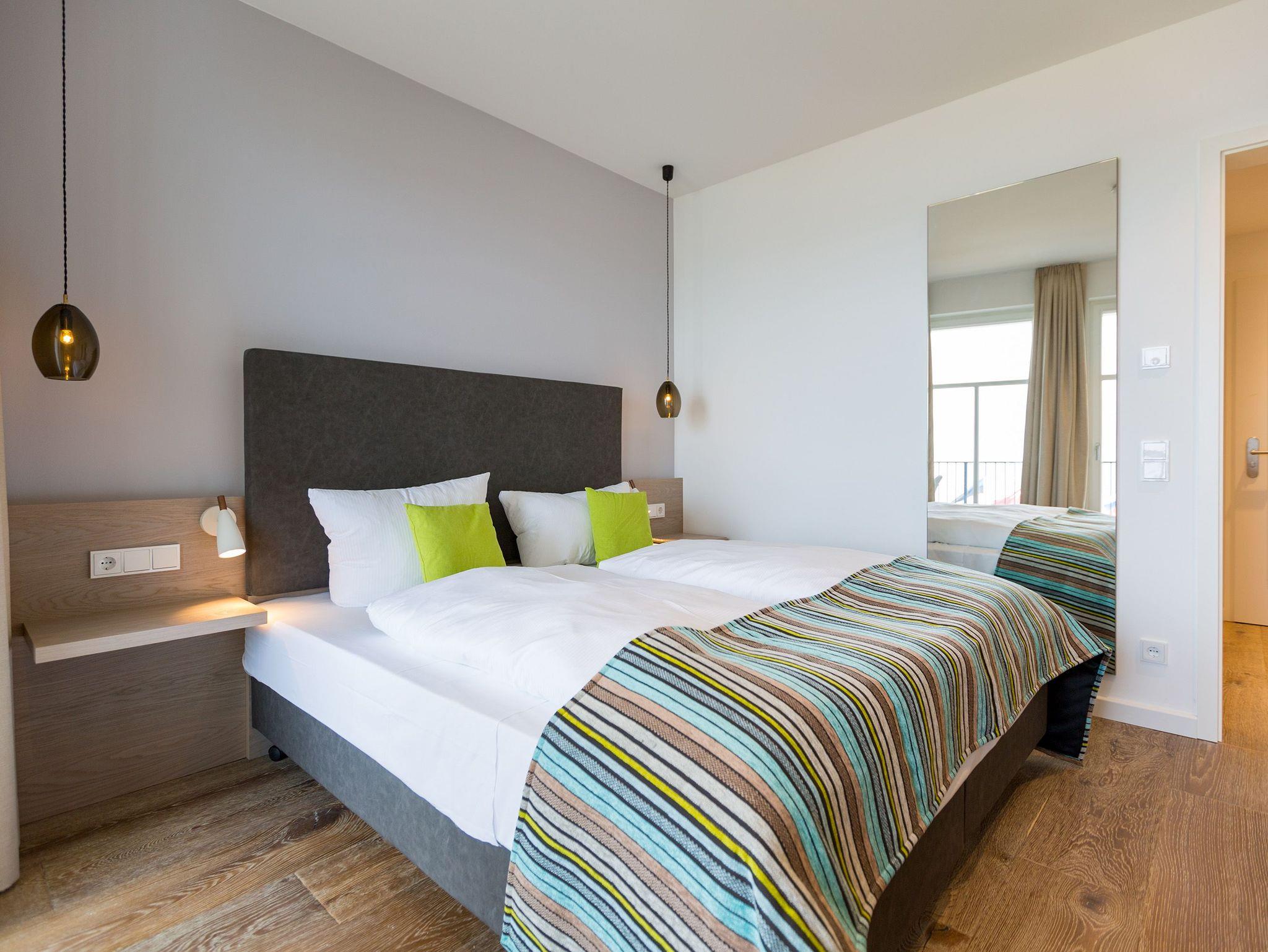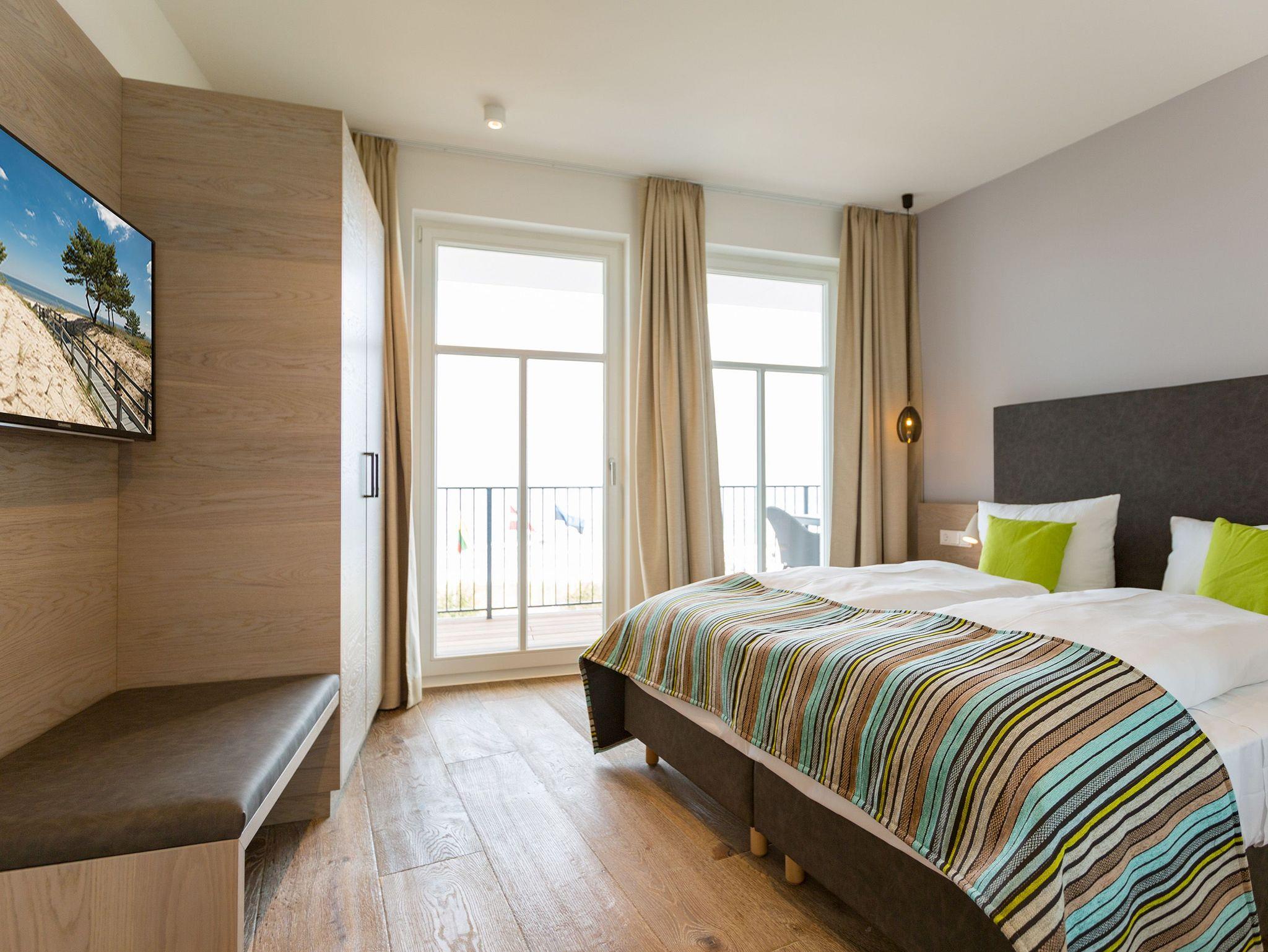 Leiden Sie auch an Meersehnsucht? In diesem Urlaubsparadies im 2. Stock des Beachhouses können Sie auf 74 Quadratmetern mit bis zu vier Personen und einem Kleinkind (bis drei Jahre im Kinderreisebett) Ihre Liebe zur Ostsee mit direktem Blick auf das endlose Blau genießen. Näher dran ist nur noch am Strand. Ob im wunderschön eingerichteten Wohnzimmer oder einem der beiden Schlafzimmer das Meer legt sich Ihnen in allen drei Zimmern zu Füßen. Von den beiden Balkonen (8 und 6 Quadratmeter) können Sie es schon morgens zum Frühstück genießen. Dann glitzert die Sonne auf den Wellen als lägen tausend Diamanten auf dem Wasser. In der offenen Wohnküche finden Sie alles, was Sie zum Zubereiten eines ausgiebigen Frühstückes, aber auch zum Kochen, Braten oder Backen brauchen. Hochwertige Markengeräte wie Geschirrspüler, Backofen, eine Kochinsel, Kühlschrank oder Mikrowelle erleichtern Ihnen das Zubereiten ungemein. Edles Geschirr sorgt für einen noblen Rahmen. Ist das Wetter einmal nicht zum Draußenessen geeignet, lädt der schöne Esstisch zum Einnehmen der Mahlzeiten ein. Das Wohn-Esszimmer strahlt durch seine großen Fenster, die viel Licht einlassen, die angenehmen und wohl temperierten Farbakzente und die exklusiven Design-Möbel eine harmonisierende und entspannende Atmosphäre aus. Auf dem bequemen Sofa lässt es sich wunderbar Relaxen. Für viel Gemütlichkeit sorgt ein Gas-Kamin. Zur Unterhaltung steht Ihnen ein großer Flat-TV sowie eine Hi-Fi-Anlage mit Bluetooth-Funktion zur Verfügung. Das WLAN ist in der Wohnung kostenfrei. Komfortable Boxspringdoppelbetten (1,80 m x 2,00 m und 1,60 m x 2,00 m) werden Ihren Träumen Flügel verleihen und die Urlaubsnächte zu einem echten Vergnügen machen. Ein jedes der beiden Schlafzimmer hat einen eigenen Balkon, einen Flat-TV und einen geräumigen Schrank. Das Appartement verfügt über zwei Bäder, in denen Sie jeweils eine schöne und ebenerdige Regendusche, einen Waschtisch mit großem Spiegel und ein WC vorfinden. Zu einer kleinen Wellness-Auszeit wird Ihr Ostseeurlaub außerdem. Denn im Masterbad erwartet Sie zudem eine Finnische Sauna. Da werden sogar die Schlechtwettertage an der Ostsee zu wunderbar entspannenden Kuscheltagen. Zum Waschen Ihrer Urlaubsgarderobe gibt es in einem separaten Hauswirtschaftsraum einen Wasch-Trockner. Kommen Sie also einfach an und genießen Sie Ihre Auszeit am Meer. Den Rest machen wir. Die Betten sind bei Ihrer Anreise bereits bezogen und Handtücher liegen bereit. In der modernen Tiefgarage ist für Sie der Stellplatz Nr. 11 im Doppelparker unten (max. Höhe 1,85 m, max. Länge 5,10 m, max. Breite 2,50 m, max. Last 2.600 kg) reserviert.