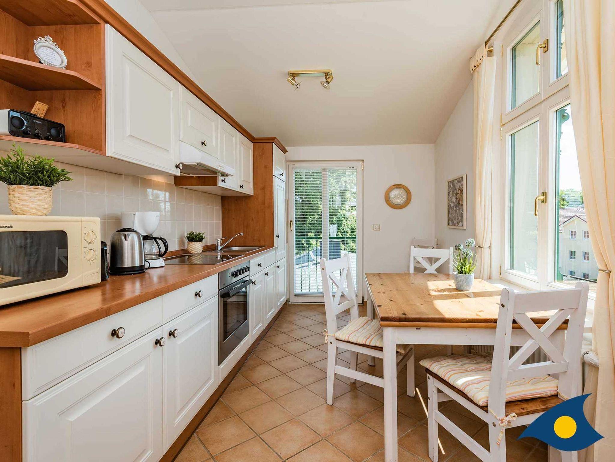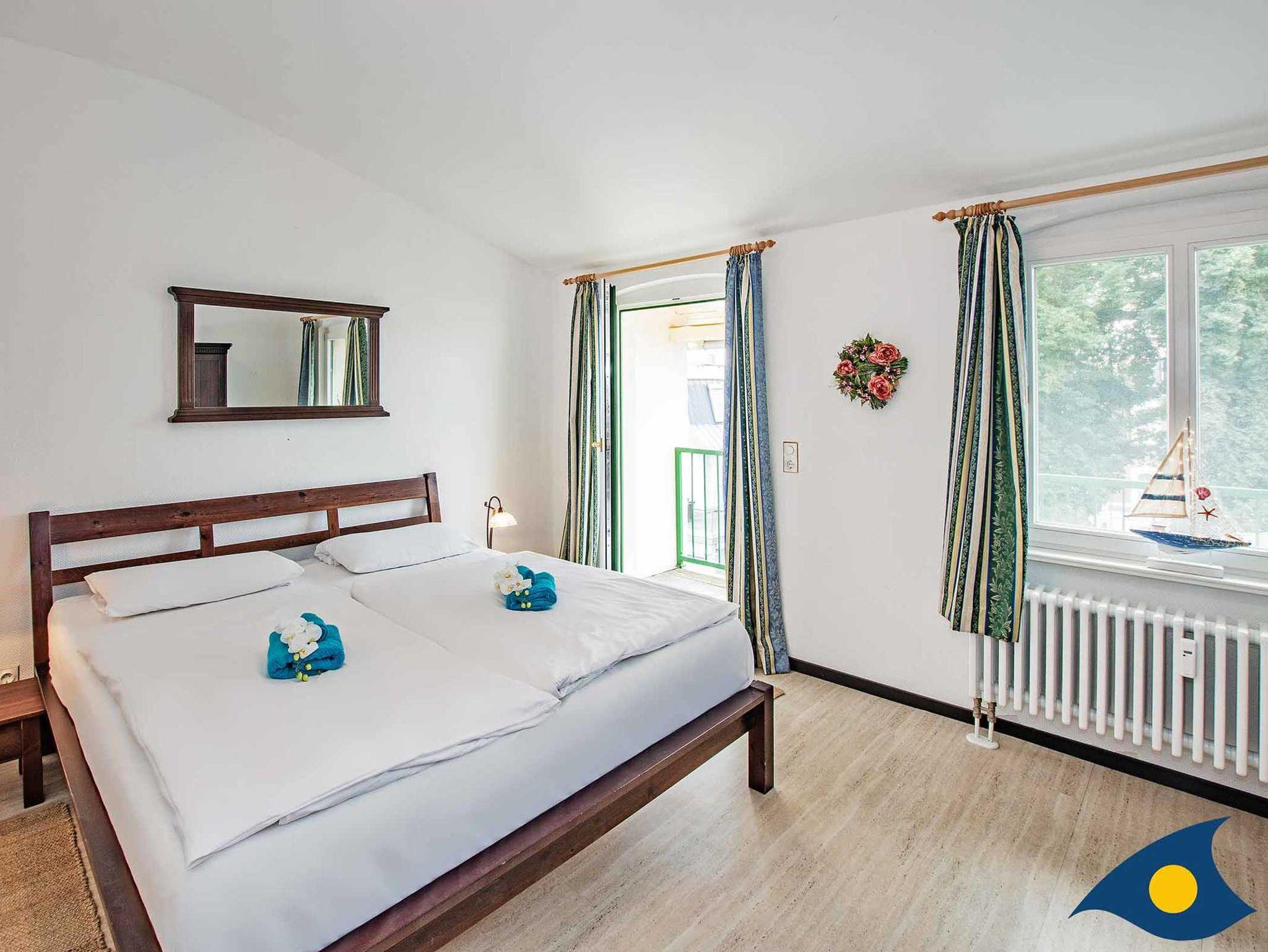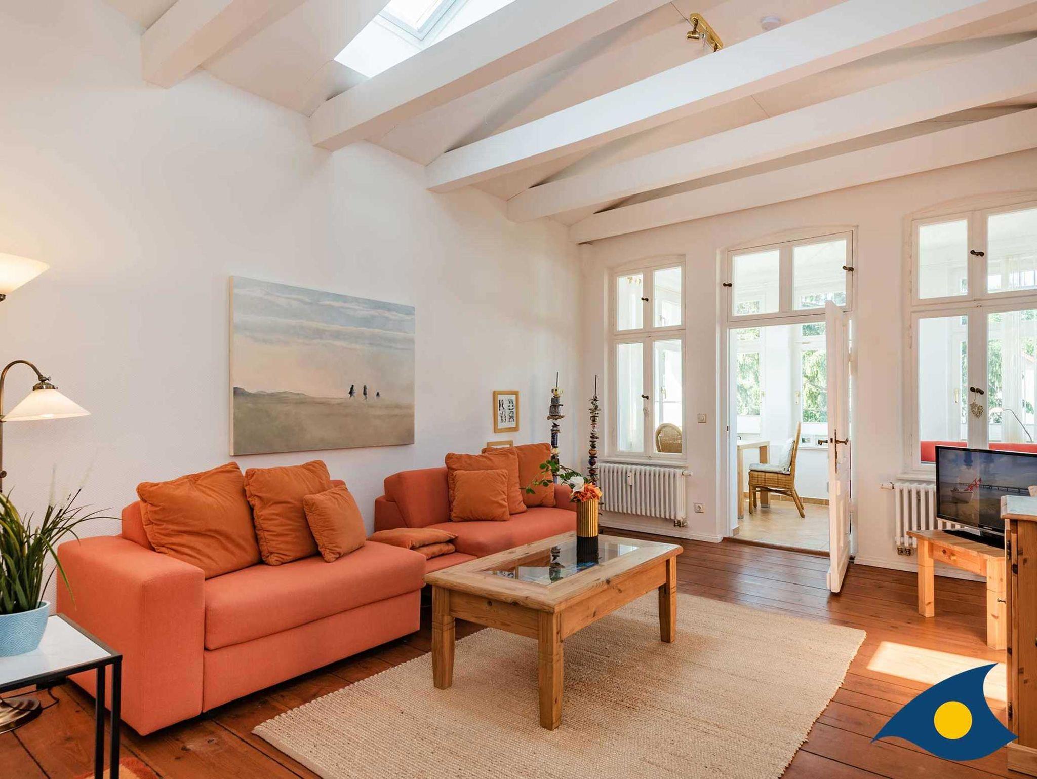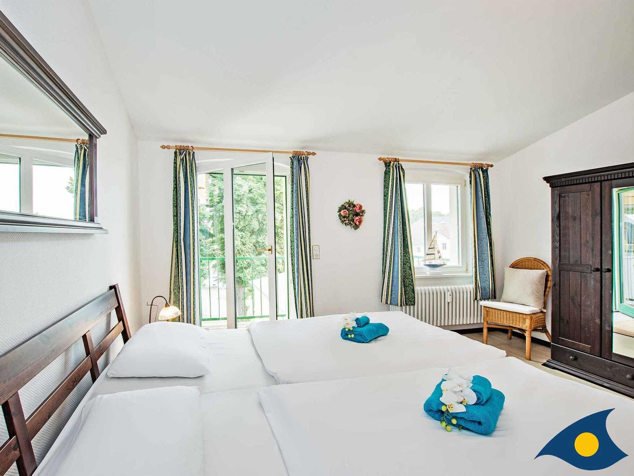 Die großzügige Dreiraumwohnung im obersten Stock der Villa Waldblick ist 76 qm groß und überrascht mit einem schönen Waldblick über die Bansiner Kirche hin zum Tropenhaus. Zu der Wohnung gehört eine separate Küche, eine idyllische Loggia und ein sonniger Balkon. Eine hochwertige Schlafcouch mit zwei separaten Betten (200x90 cm) für weitere zwei Personen befindet sich im Wohnzimmer. Alle Räume sind modern und komfortabel eingerichtet. Ein zweiter TV befindet sich im Schlafzimmer.