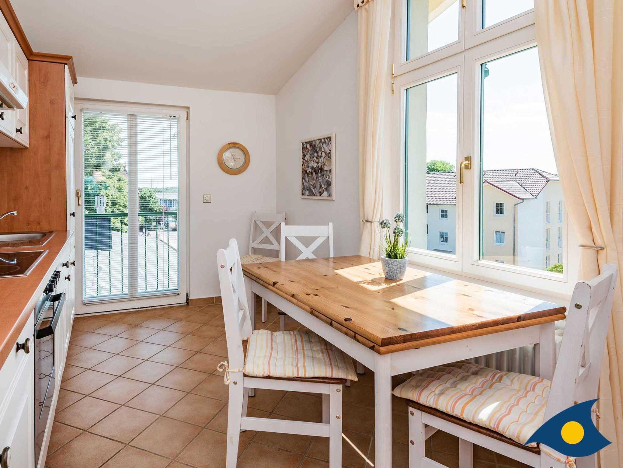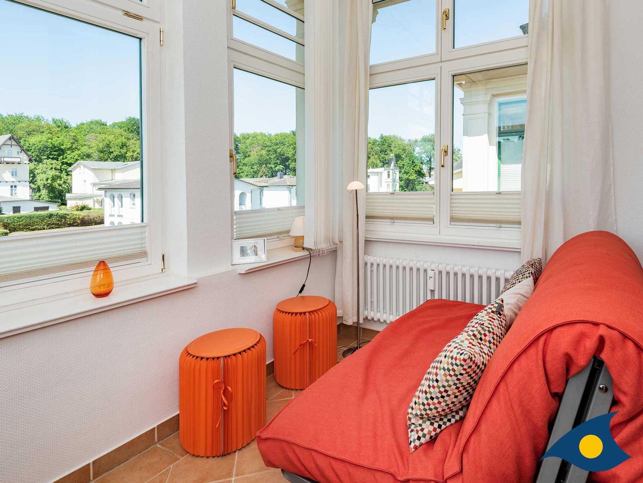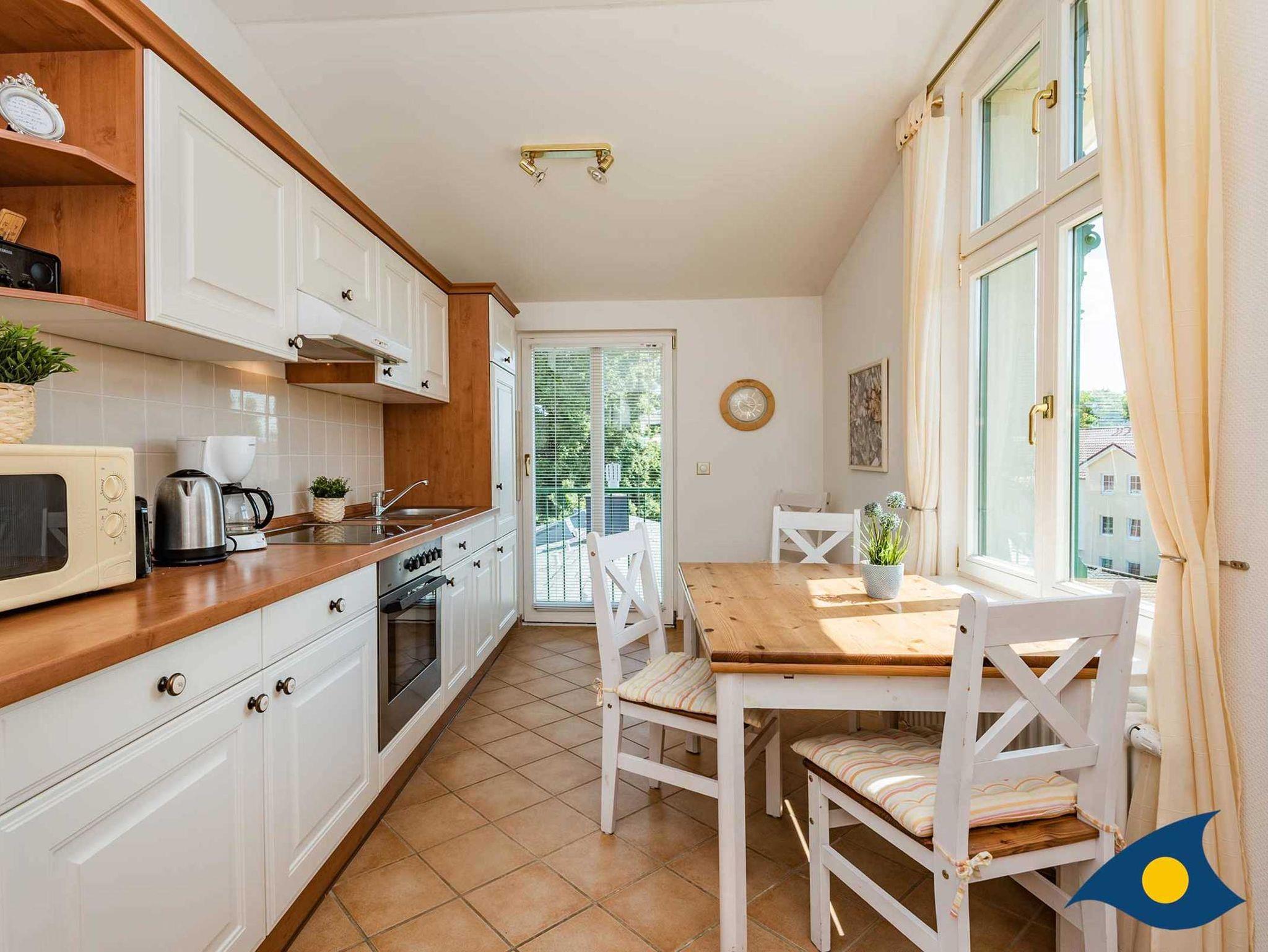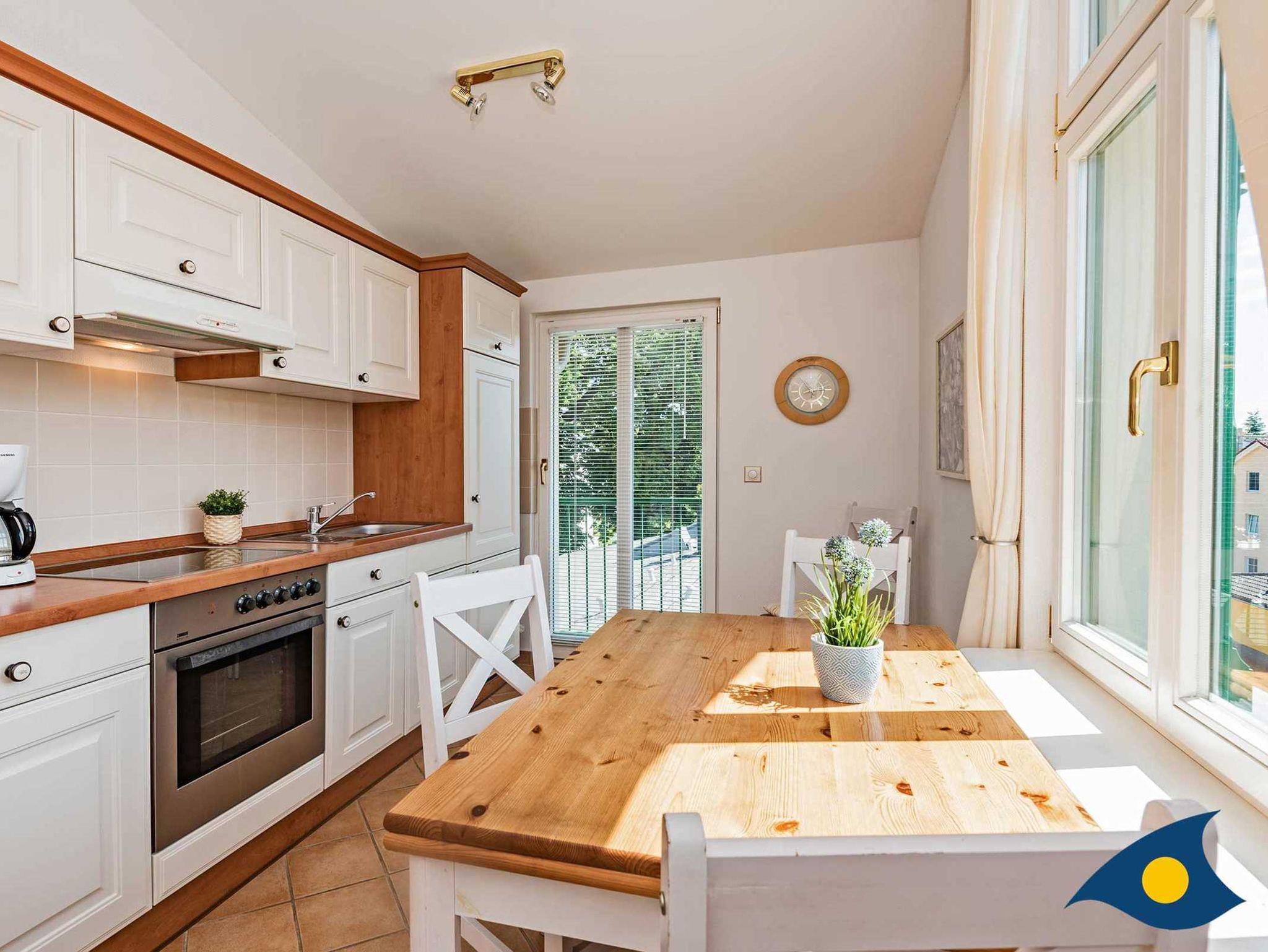 Die großzügige Dreiraumwohnung im obersten Stock der Villa Waldblick ist 76 qm groß und überrascht mit einem schönen Waldblick über die Bansiner Kirche hin zum Tropenhaus. Zu der Wohnung gehört eine separate Küche, eine idyllische Loggia und ein sonniger Balkon. Eine hochwertige Schlafcouch mit zwei separaten Betten (200x90 cm) für weitere zwei Personen befindet sich im Wohnzimmer. Alle Räume sind modern und komfortabel eingerichtet. Ein zweiter TV befindet sich im Schlafzimmer.
