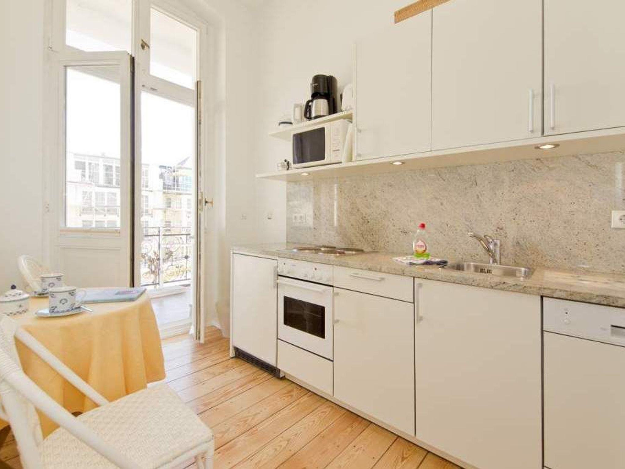 Logieren Sie in den großzügigen Balkonsuiten der Villa Astrid. Aus allen Räumlichkeiten und vom Balkon genießen Sie den schönen Blick auf die Ostsee. Der Wohnbereich mit Esstisch und Schlafcouch (für die dritte Person), das Schlafzimmer mit Doppelbett und die separate Küche bieten Platz für 2 Personen und 1 Kind bis 15 Jahre. Ein DVD-Player kann Ihnen auf Anfrage zur Verfügung gestellt werden.