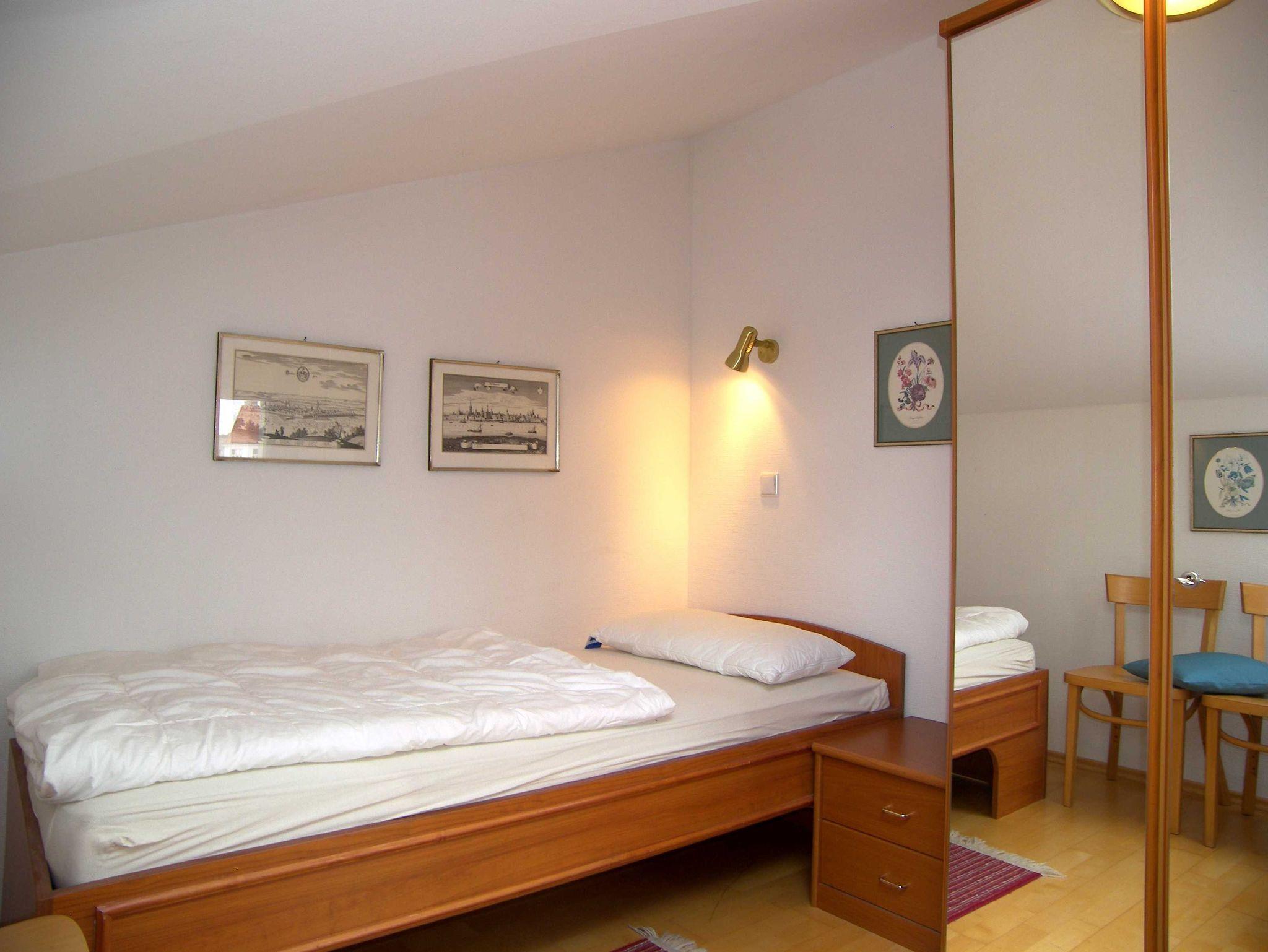 Die Wohnung ist exklusiv mit Stilmöbeln in Kirschbaum und Mahagoni, hochwertigem Bucheparkett, Stuckdecken und Kassettentüren eingerichtet. Der stillvolle Wohn- Essbereich ist mit einer Couch, Flachbild-TV und DVD-Player sowie einer Stereo-Anlage und Esstisch eingericht. Die offene Einbauküche ist mit Backofen, Spülmaschine, Kühlschrank mit Gefrierfach, Kaffeemaschine, Wasserkocher und Toaster ausgestattet. Das erste der beiden Schlafzimmer ist mit einem Doppelbett ausgestattet, das zweite mit zwei Einzelbetten. Im hochwertigen Bad mit Glasdusche müssen sie außerdem auf Haartrockner und Schminkspiegel nicht verzichten. Die Wohnung besitzt einen sonnigen Balkon mit entsprechenden Möbeln. W-LAN steht Ihnen kostenfrei zur Verfügung.